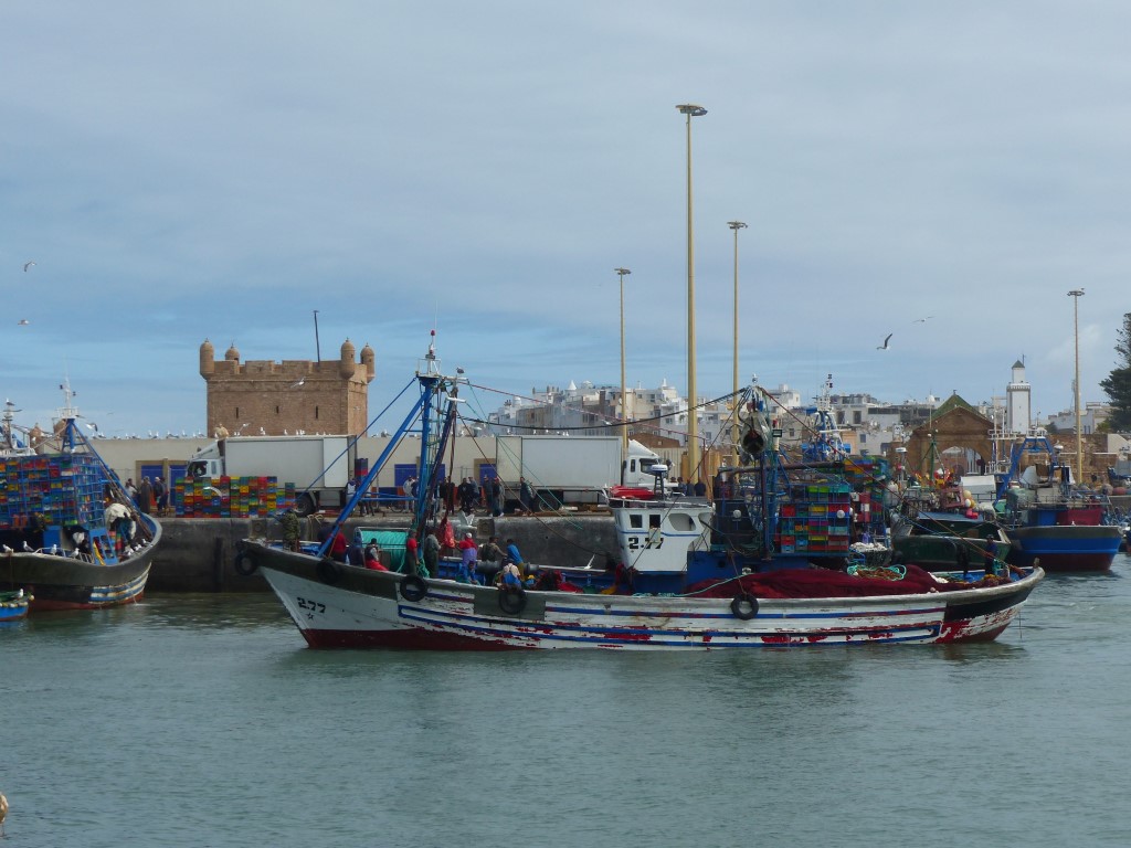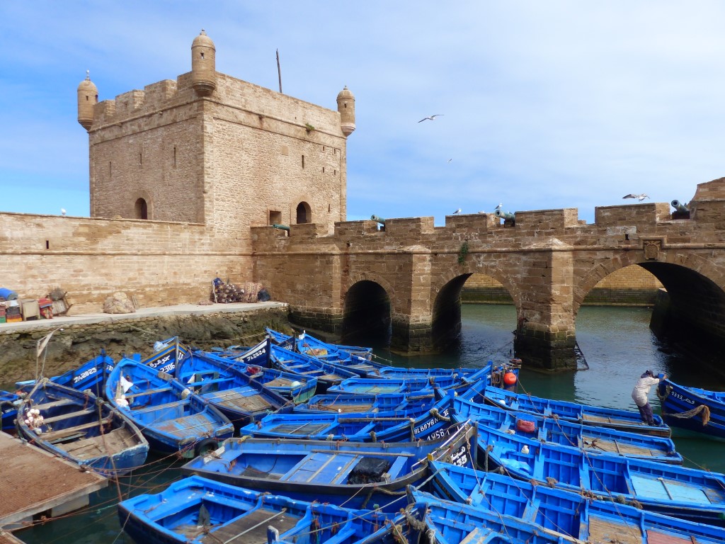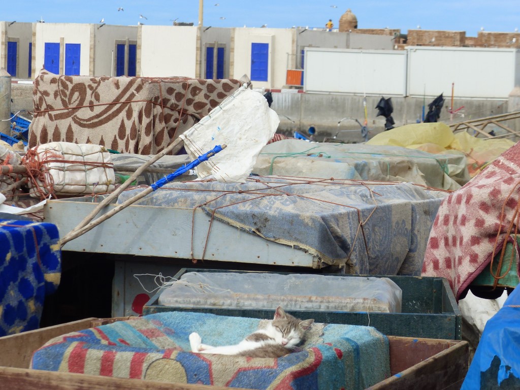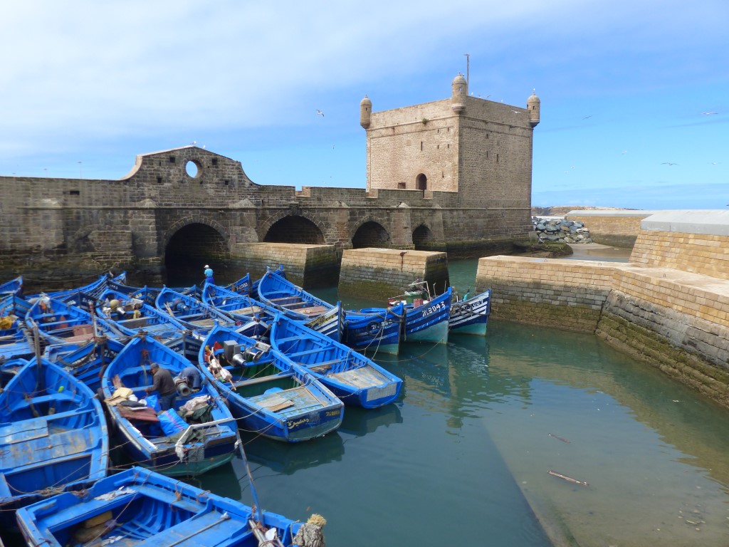Nous nous rendons sur Essaouira et allons nous perdre dans la ville intra muros, labyrinthe comparé à celui de Saint Malo en bien plus déroutant. Dépaysement, port de pêche et bord de mer nous font du bien.