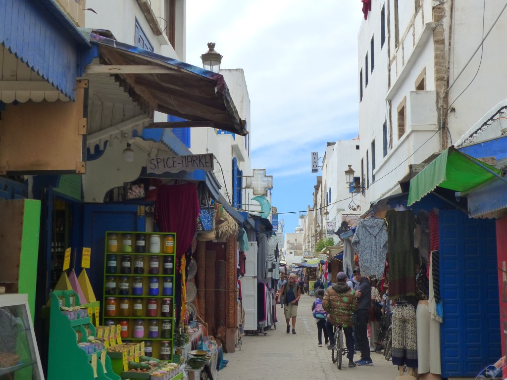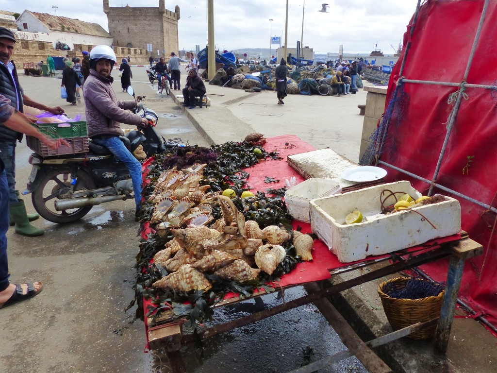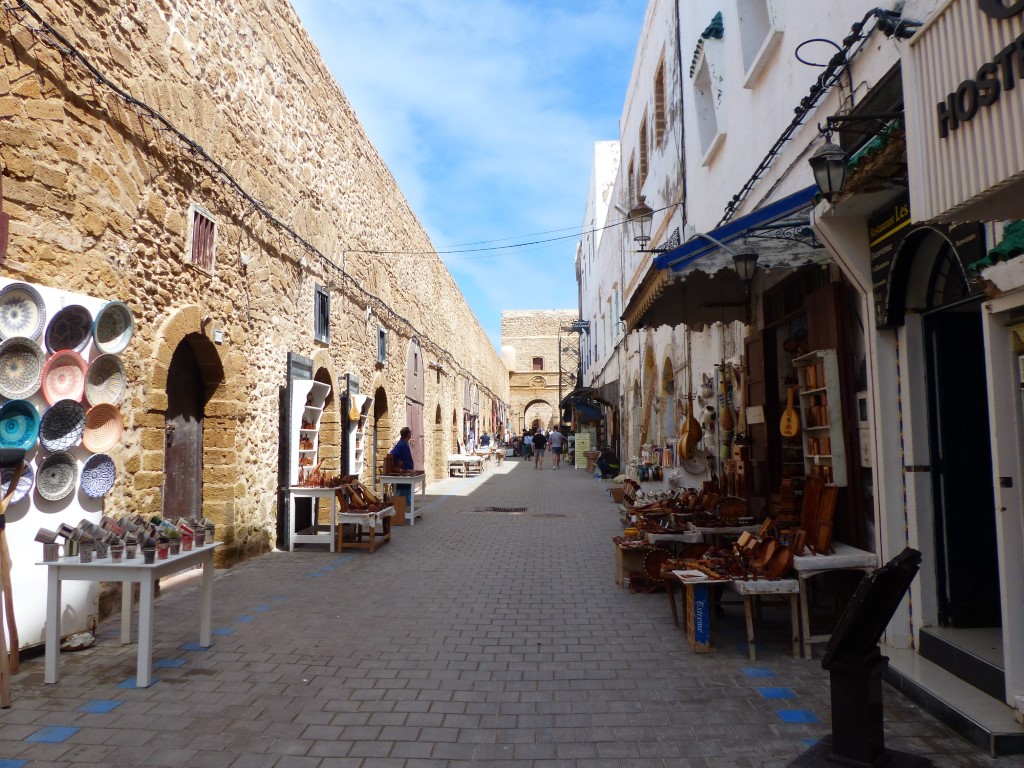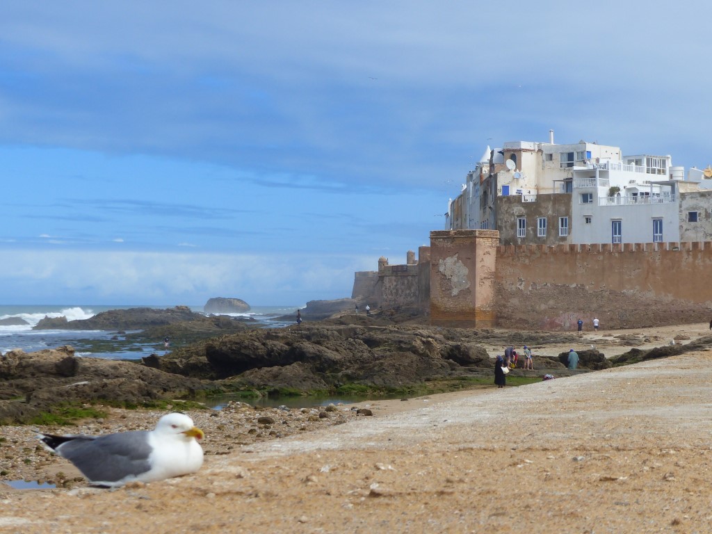 Nous nous rendons sur Essaouira et allons nous perdre dans la ville intra muros, labyrinthe comparé à celui de Saint Malo en bien plus déroutant. Dépaysement, port de pêche et bord de mer nous font du bien.
