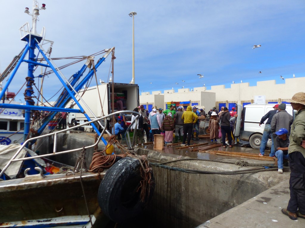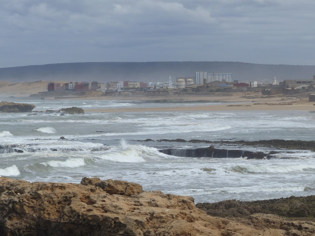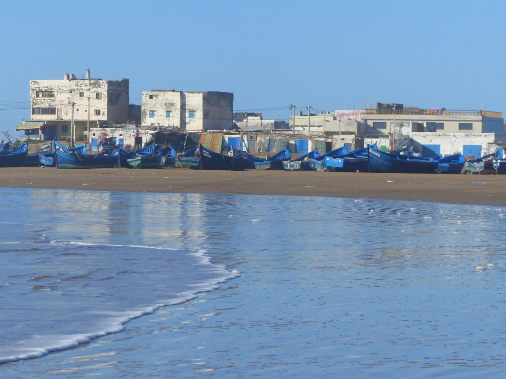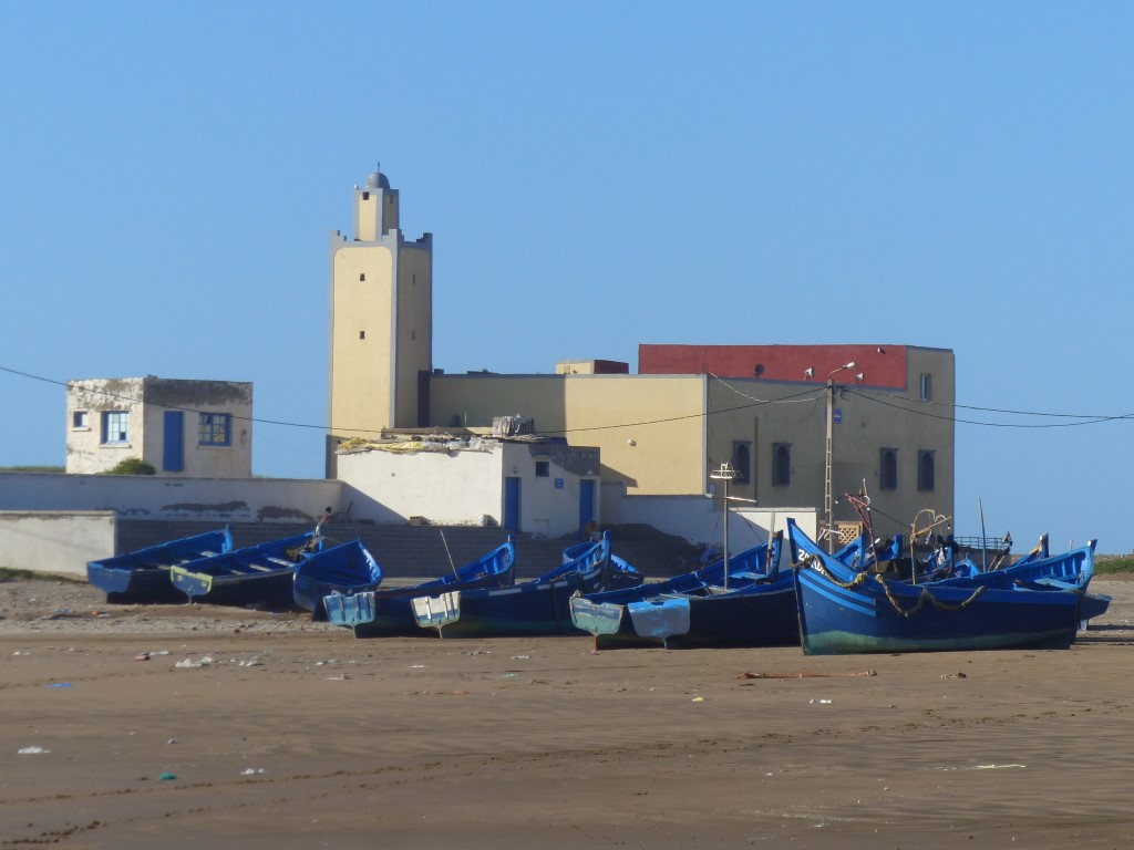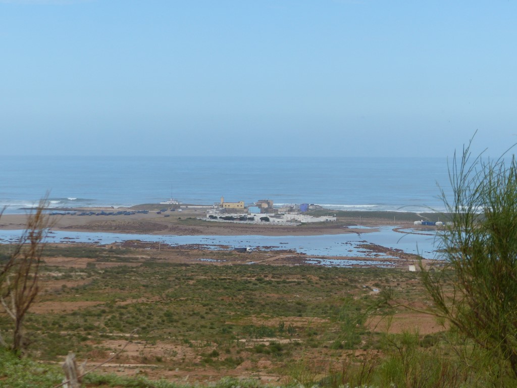 Nous quittons le bord de mer et le petit port de pêche. Ce dernier a été doté par les américains d’une criée, que les pêcheurs marocains ont transformée en habitation !
