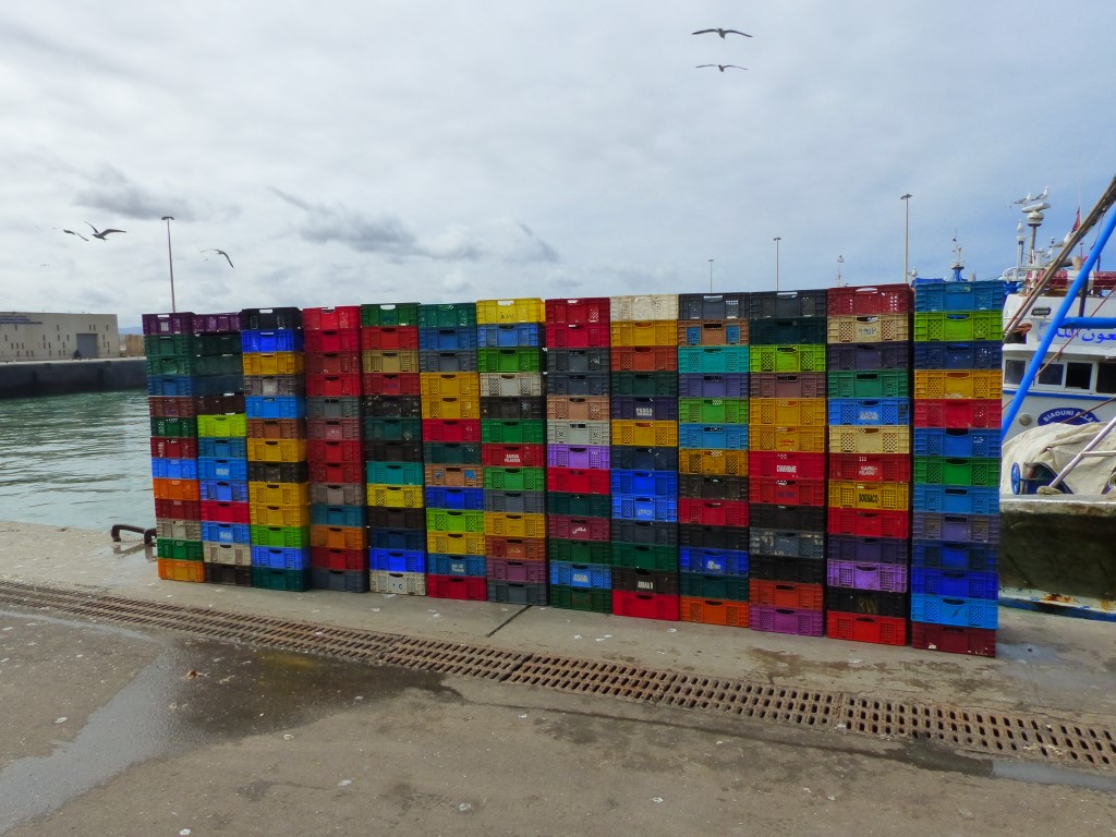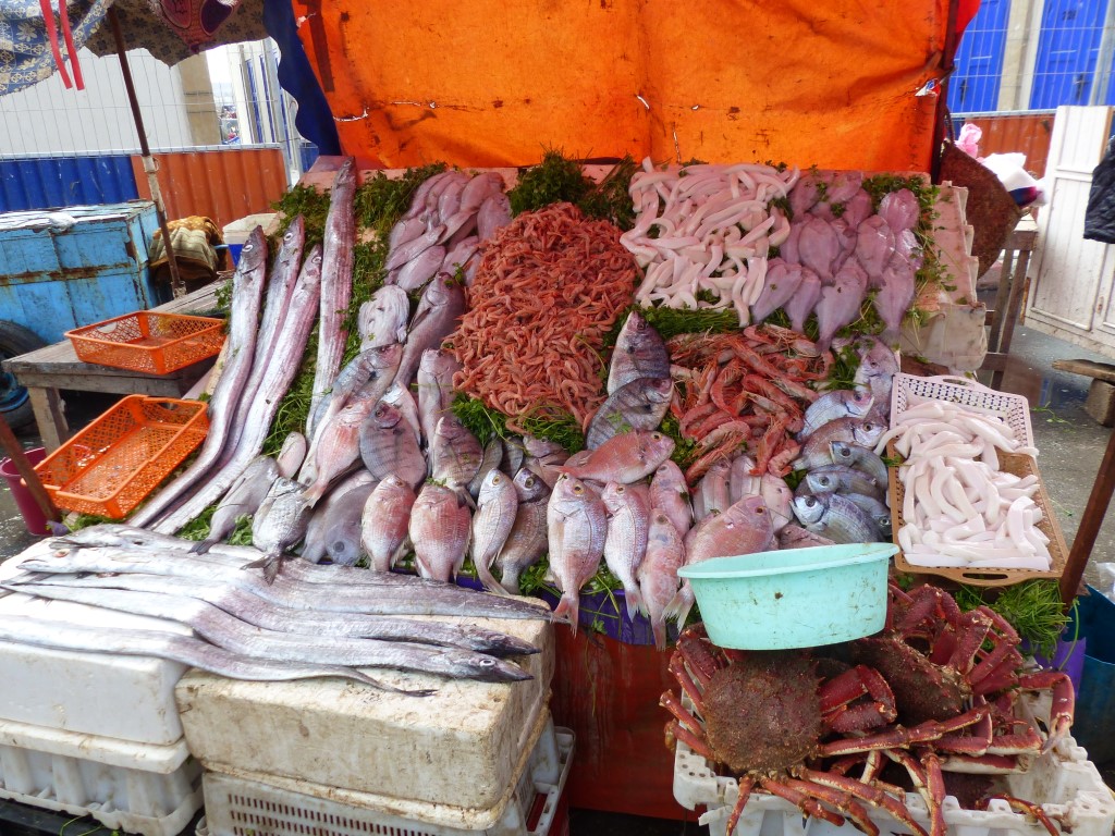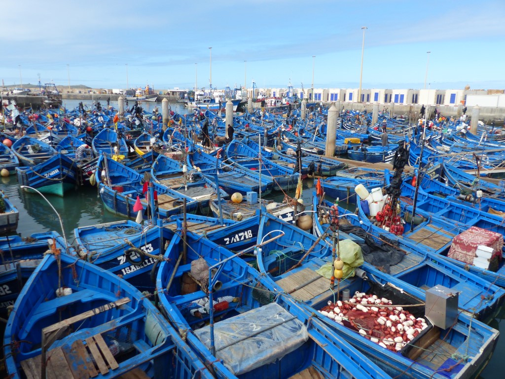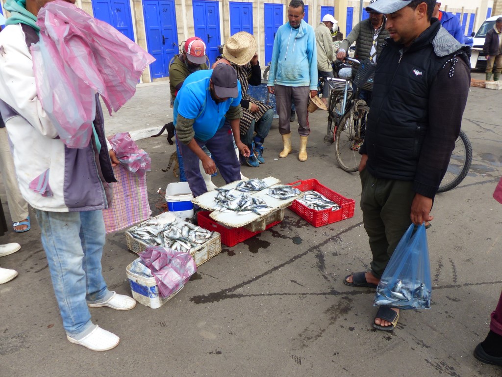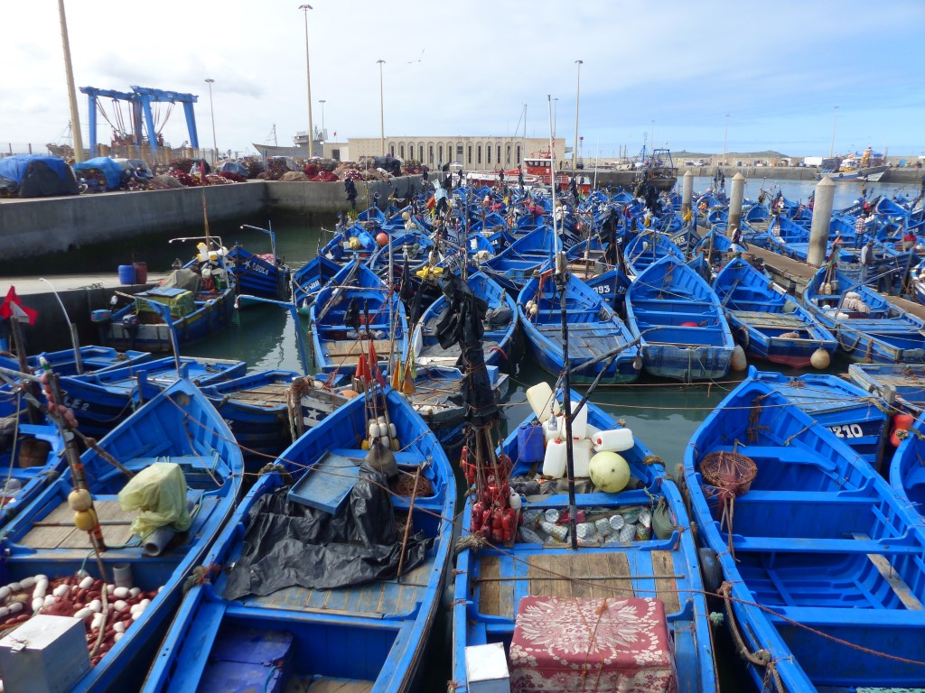 Nous quittons le bord de mer et le petit port de pêche. Ce dernier a été doté par les américains d’une criée, que les pêcheurs marocains ont transformée en habitation !
