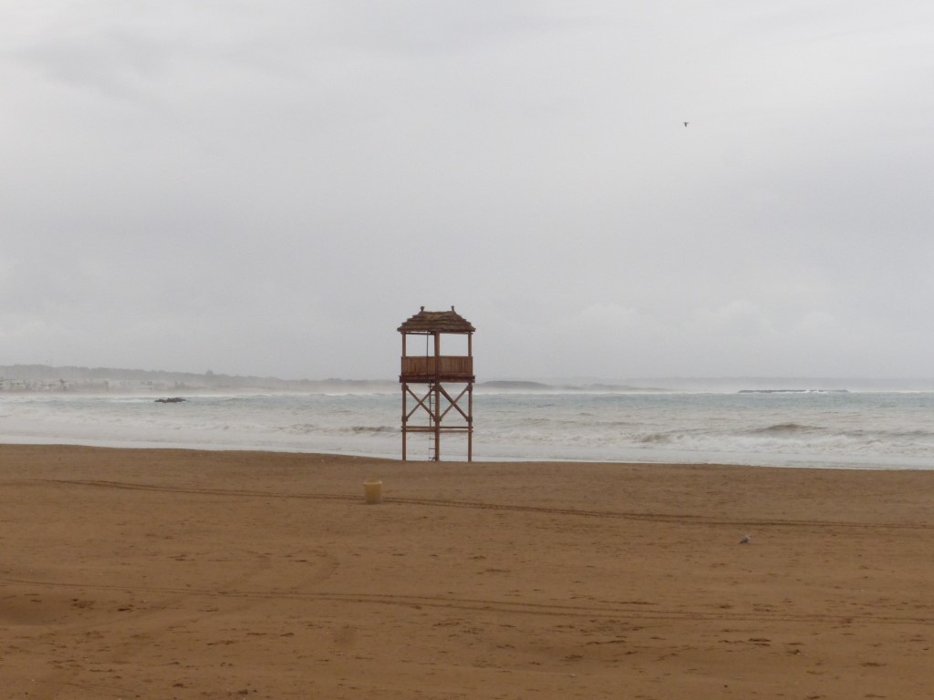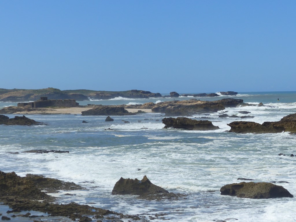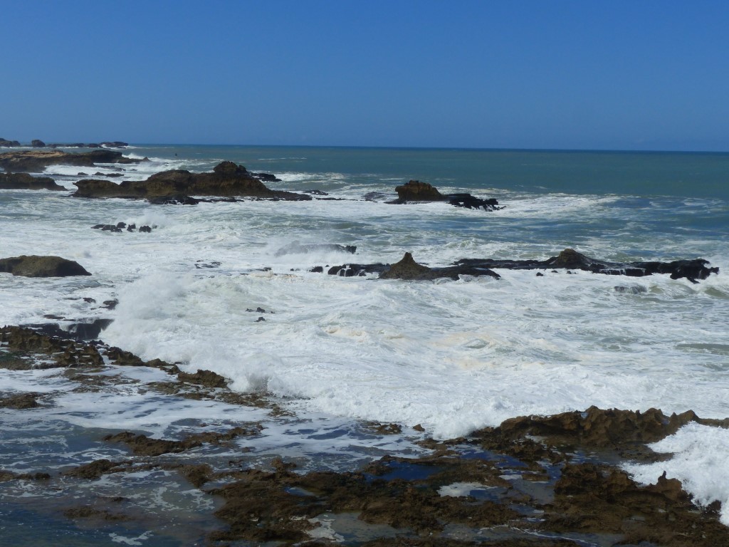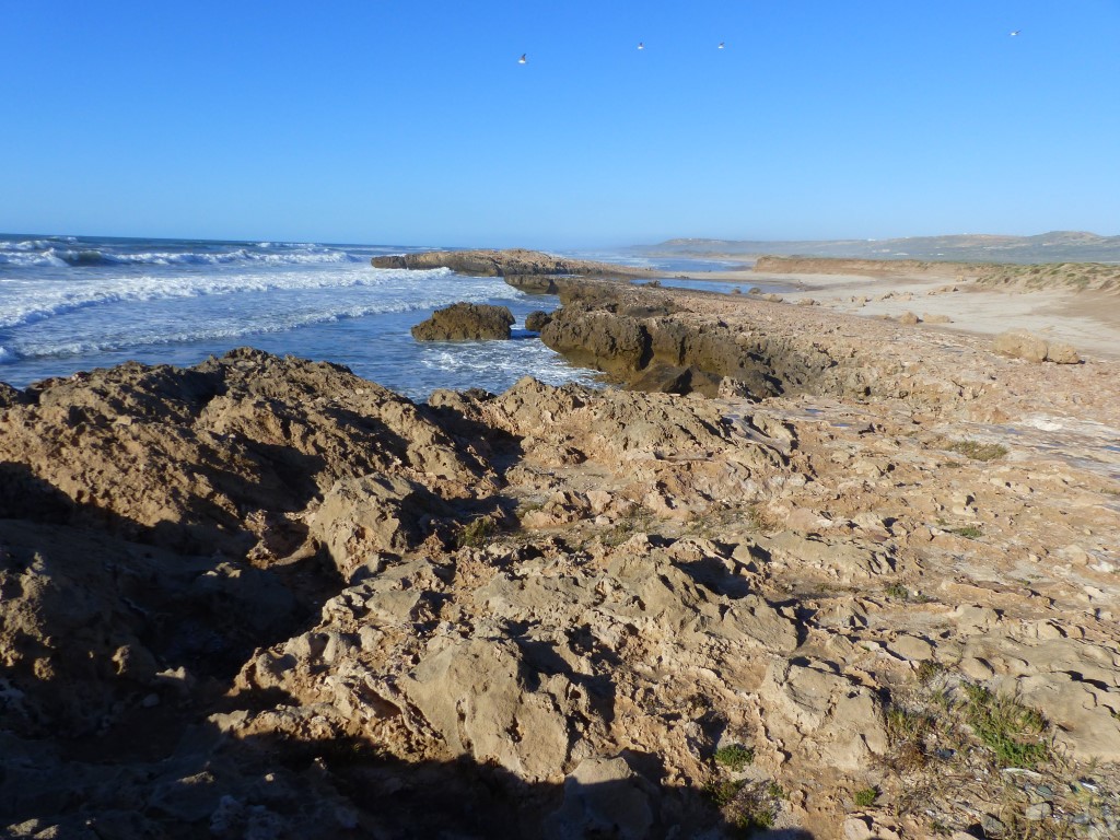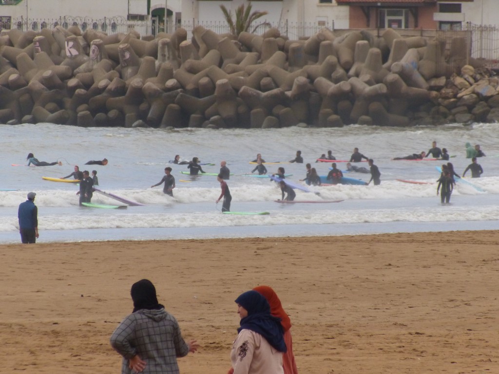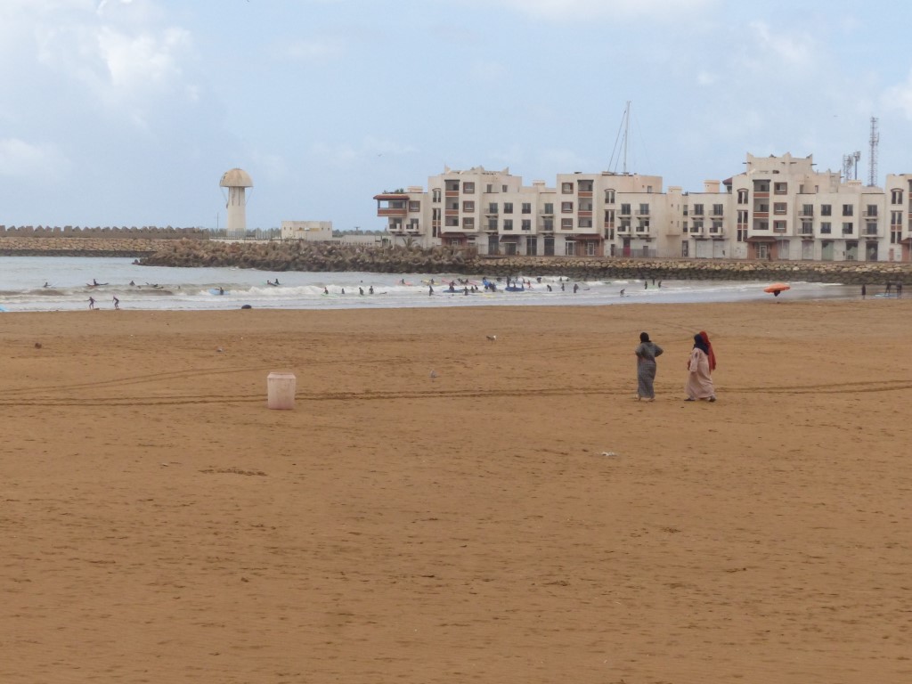 Lorsque nous atteignons Agadir, le beau temps est là. La plage est incroyablement longue et quasi vide. Je crois qu’il n’est pas conseillé de se baigner en raison des courants forts.