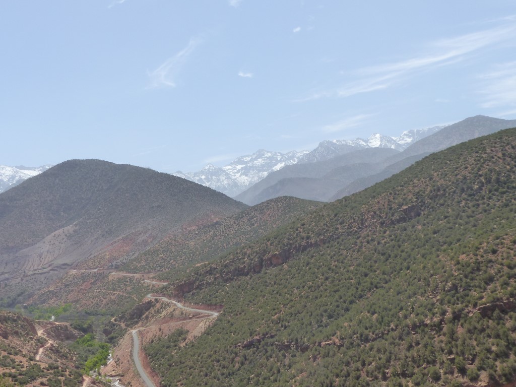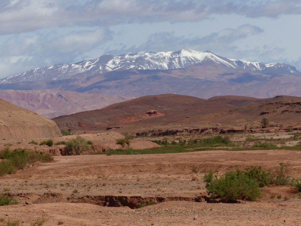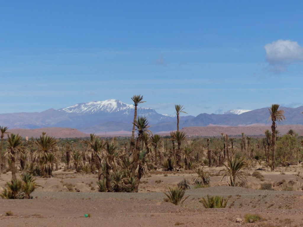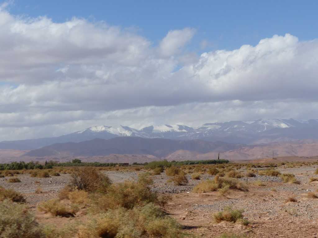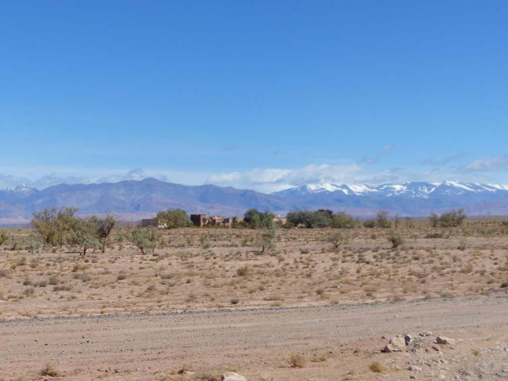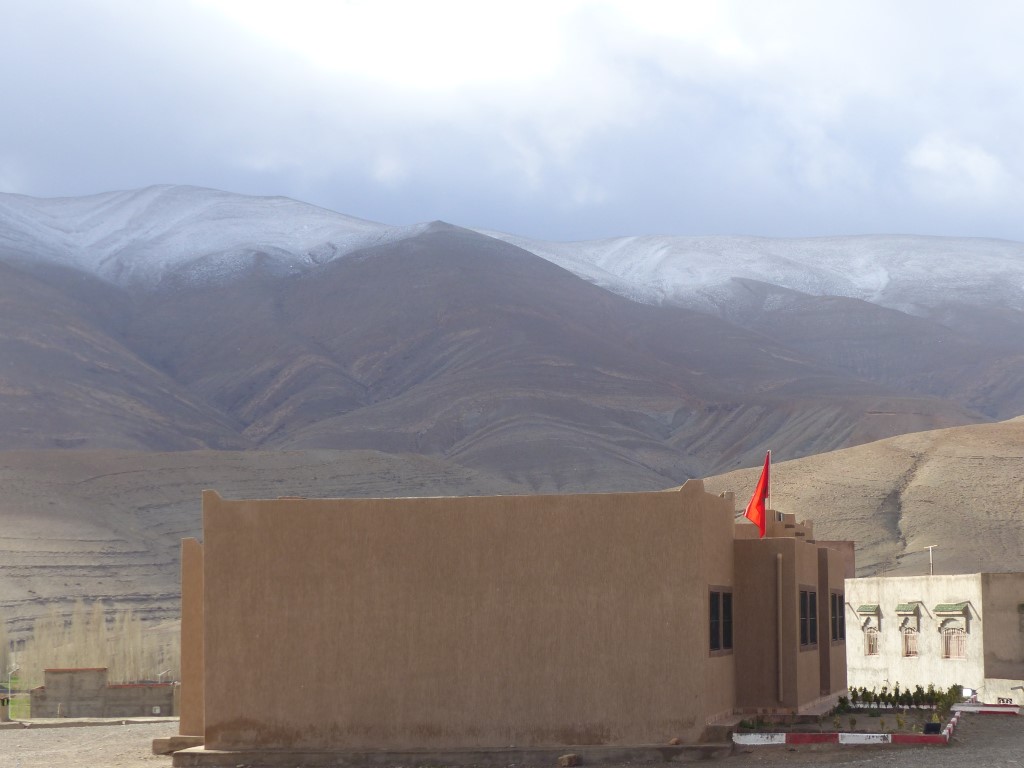 Le temps du trajet, nous profitons de la vue sur l’Atlas enneigé. Les infos nous indiquent qu’à Marrakech les habitants se réjouissent de cette neige, à la fois belle et à la fois annonciatrice d’eau.