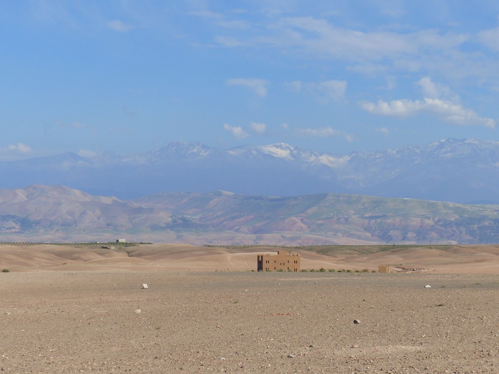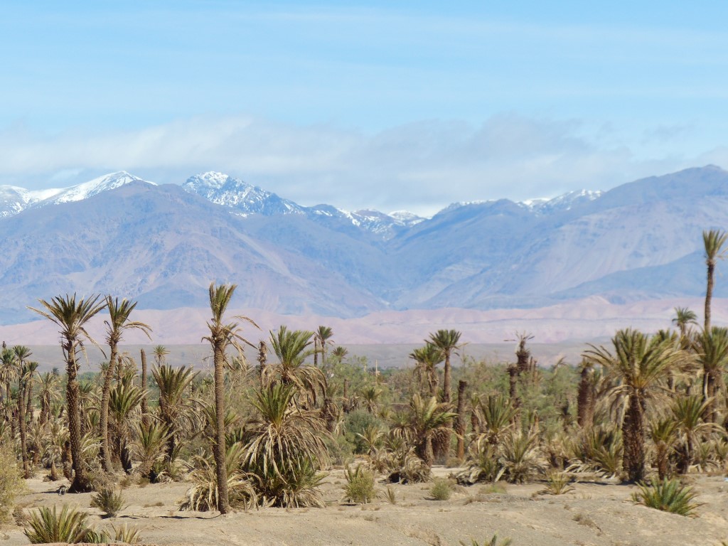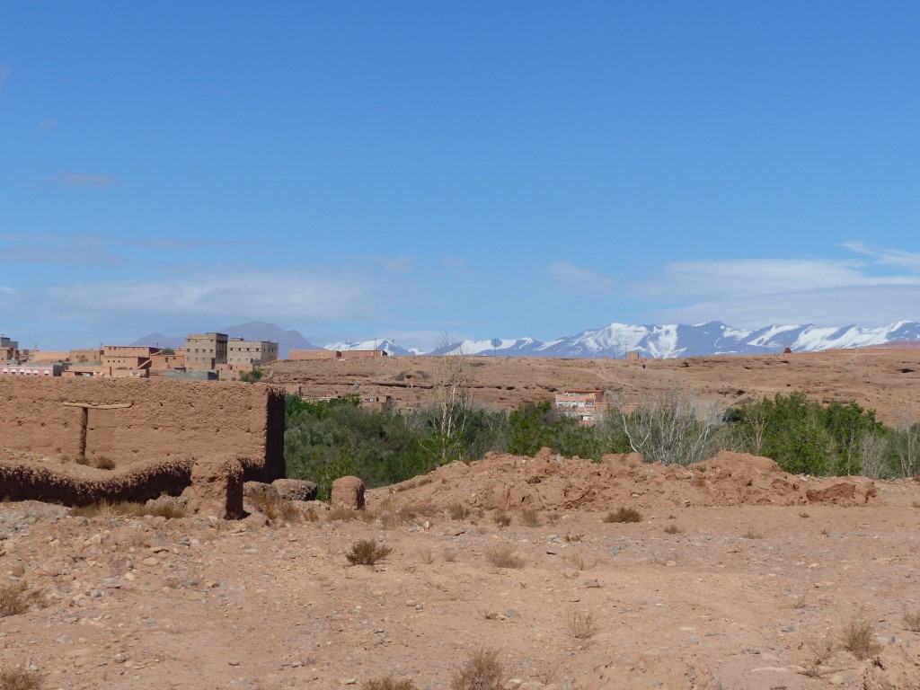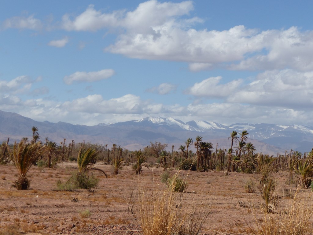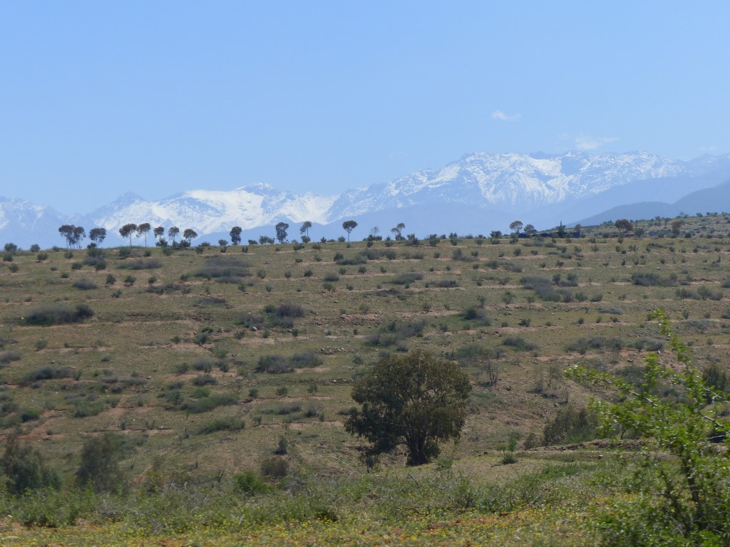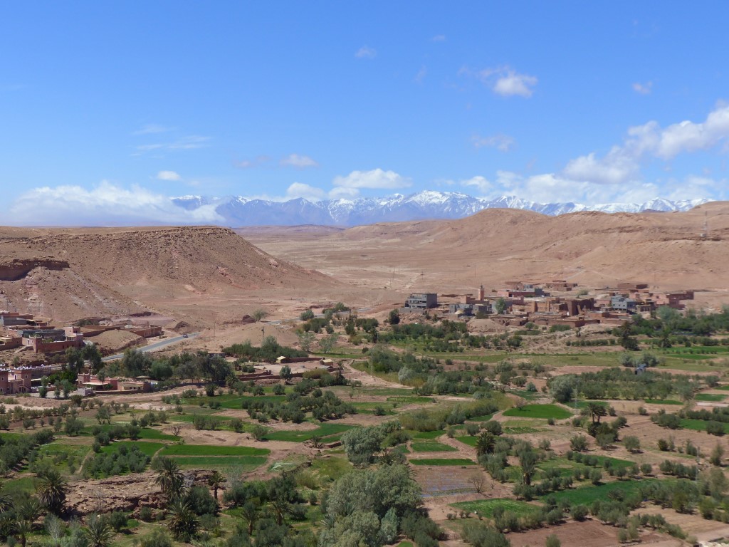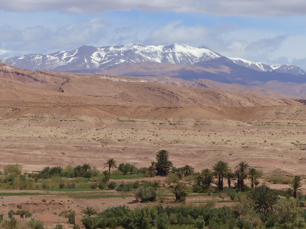 Le temps du trajet, nous profitons de la vue sur l’Atlas enneigé. Les infos nous indiquent qu’à Marrakech les habitants se réjouissent de cette neige, à la fois belle et à la fois annonciatrice d’eau.