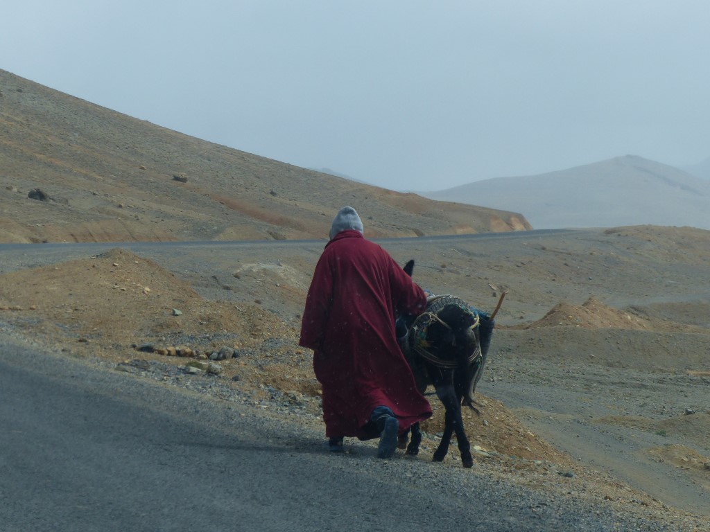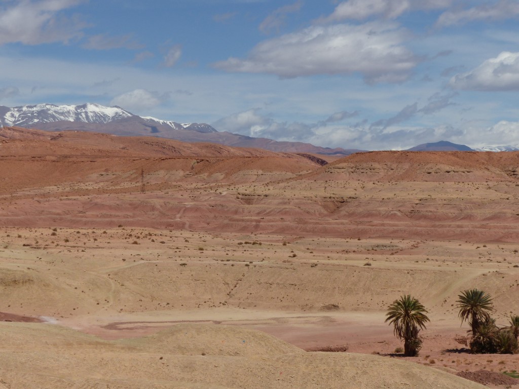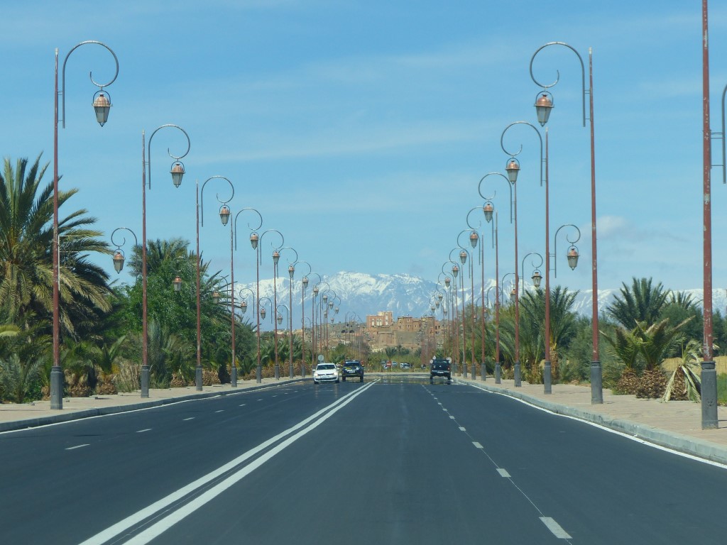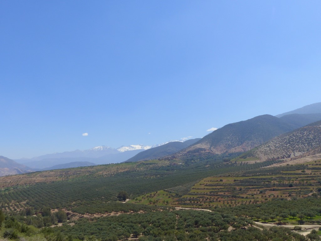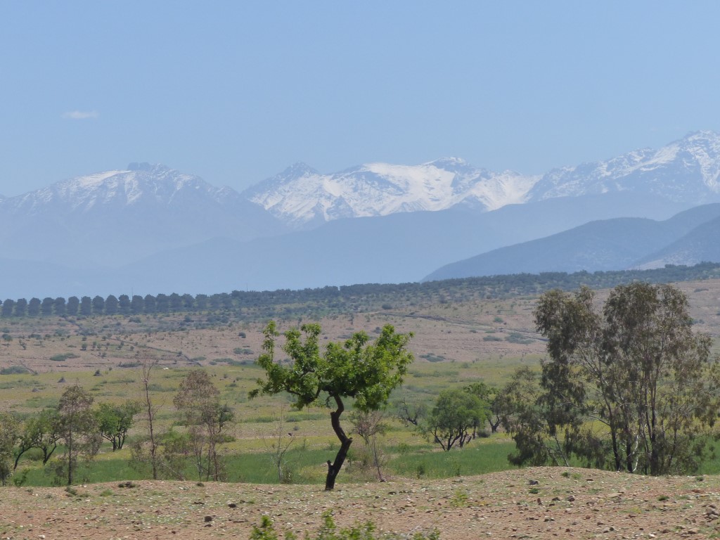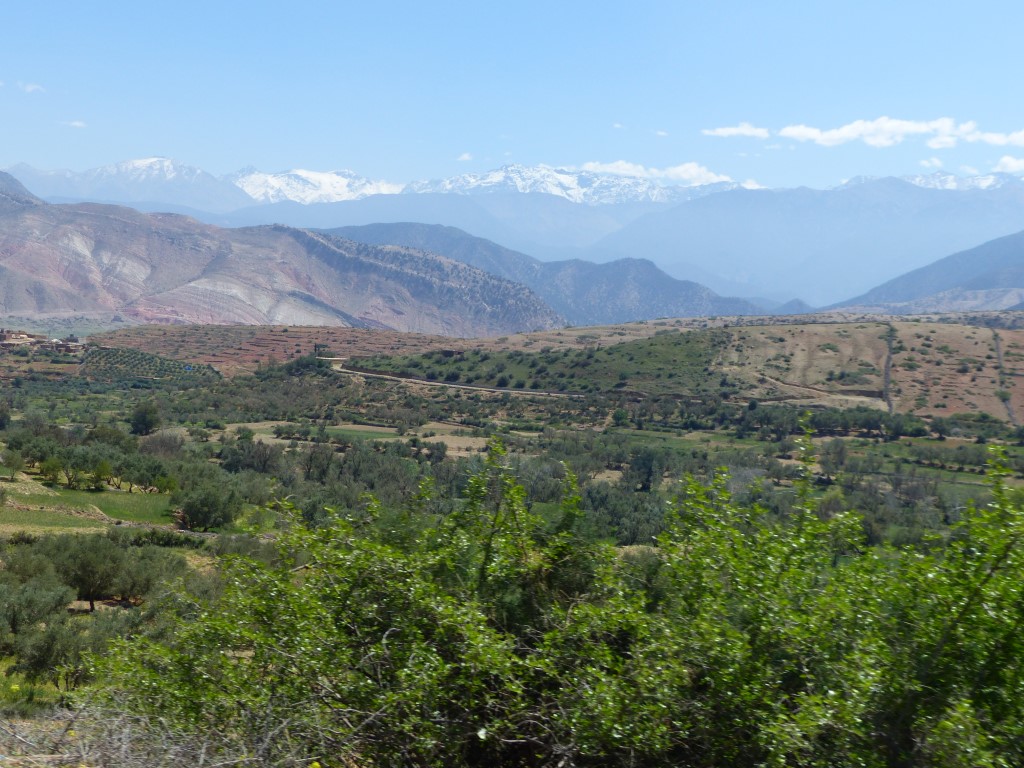 Le temps du trajet, nous profitons de la vue sur l’Atlas enneigé. Les infos nous indiquent qu’à Marrakech les habitants se réjouissent de cette neige, à la fois belle et à la fois annonciatrice d’eau.