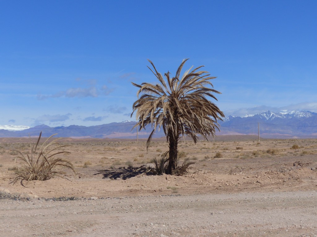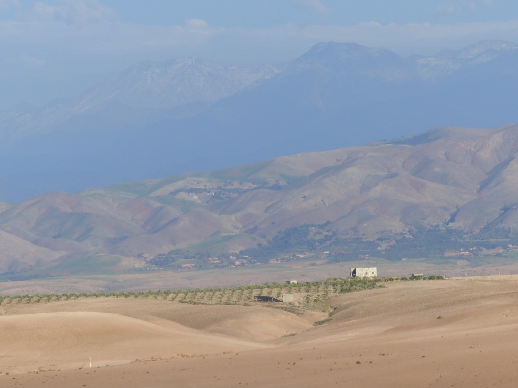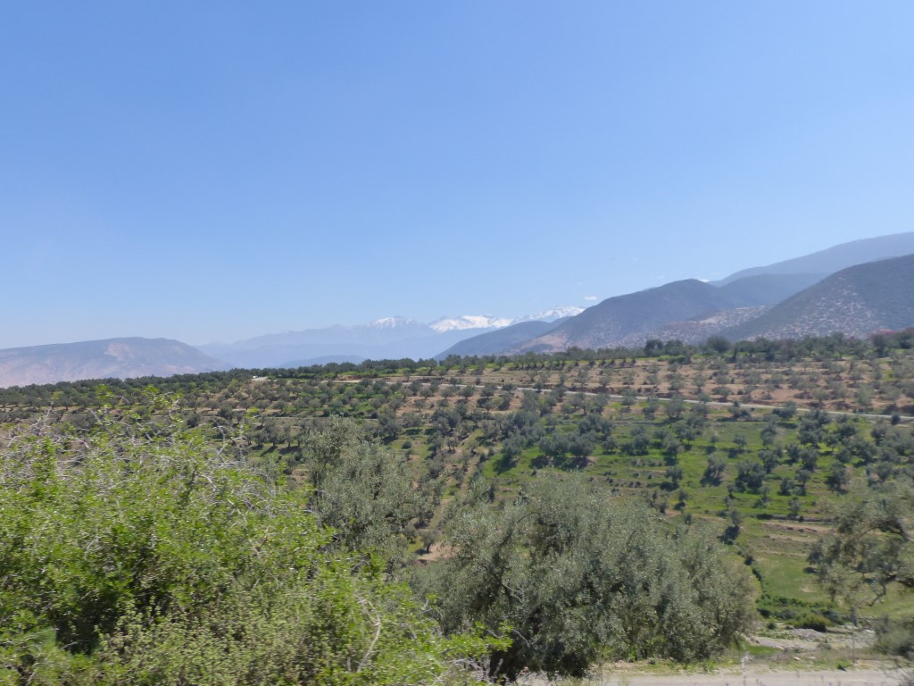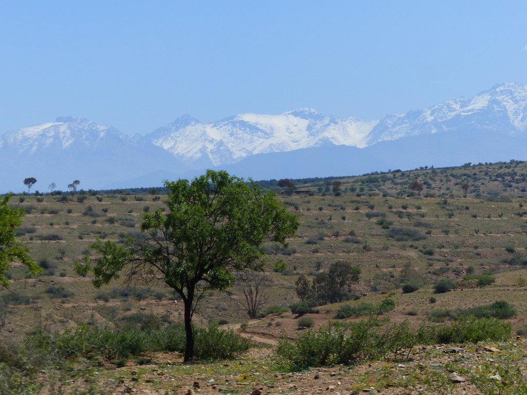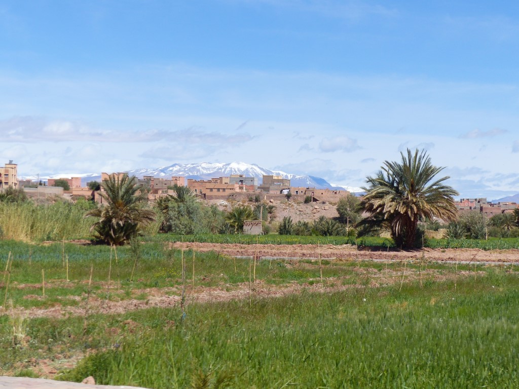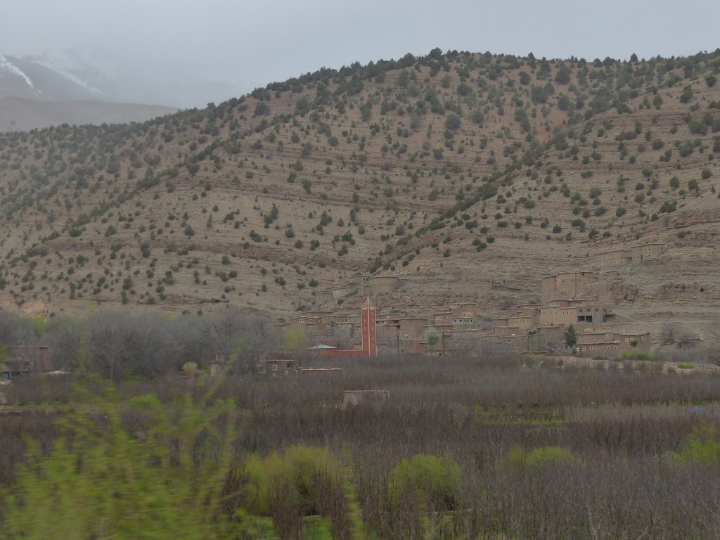 Le temps du trajet, nous profitons de la vue sur l’Atlas enneigé. Les infos nous indiquent qu’à Marrakech les habitants se réjouissent de cette neige, à la fois belle et à la fois annonciatrice d’eau.
