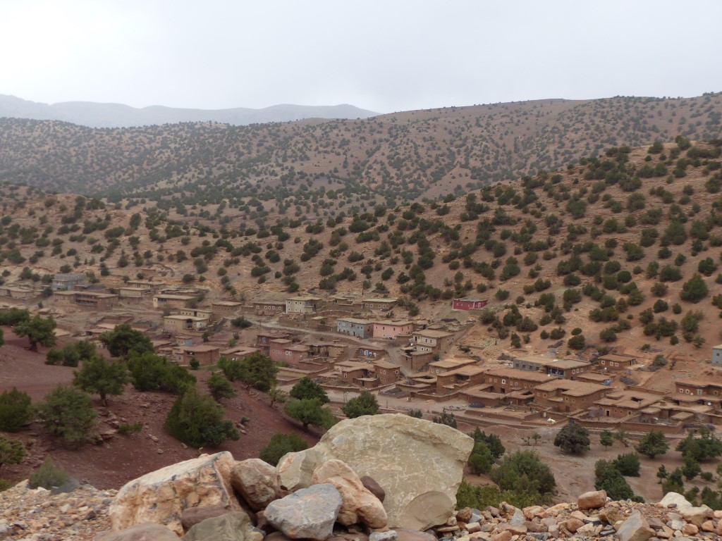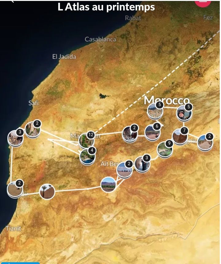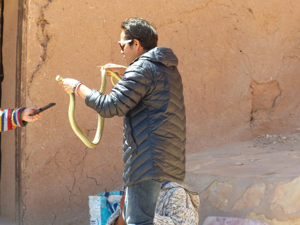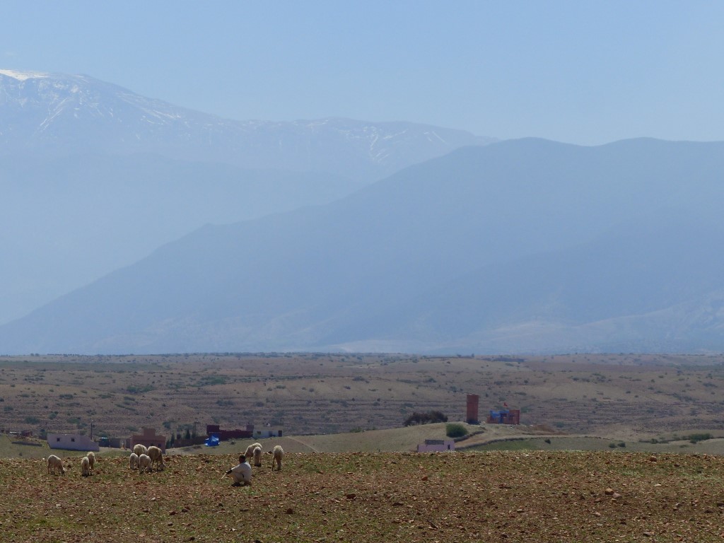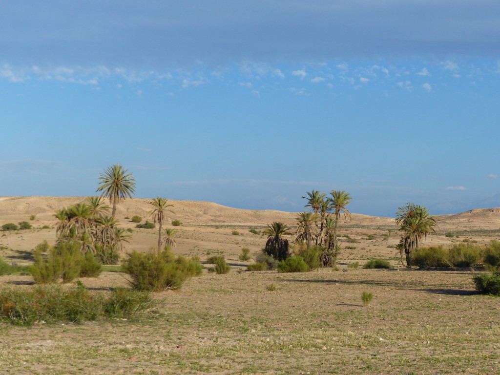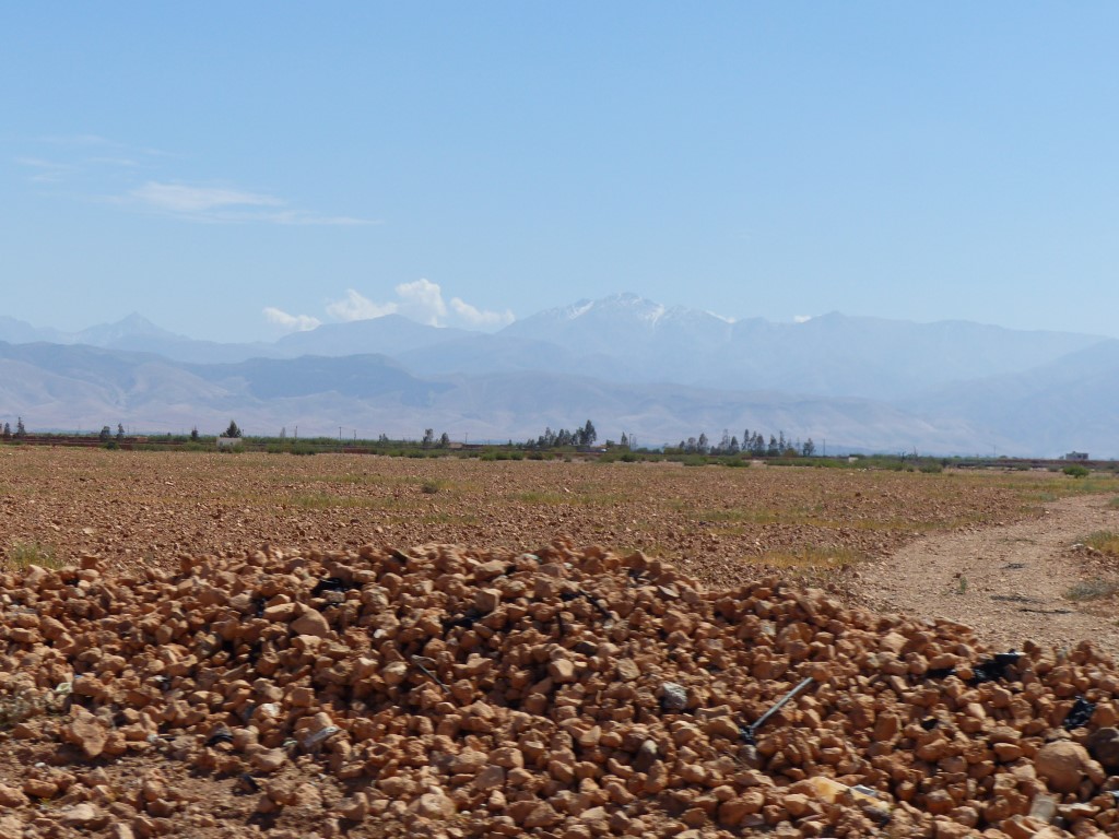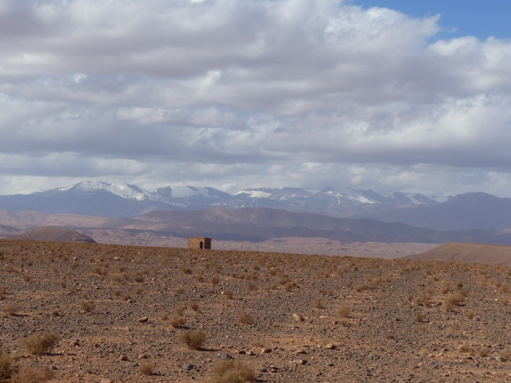 Le temps du trajet, nous profitons de la vue sur l’Atlas enneigé. Les infos nous indiquent qu’à Marrakech les habitants se réjouissent de cette neige, à la fois belle et à la fois annonciatrice d’eau.