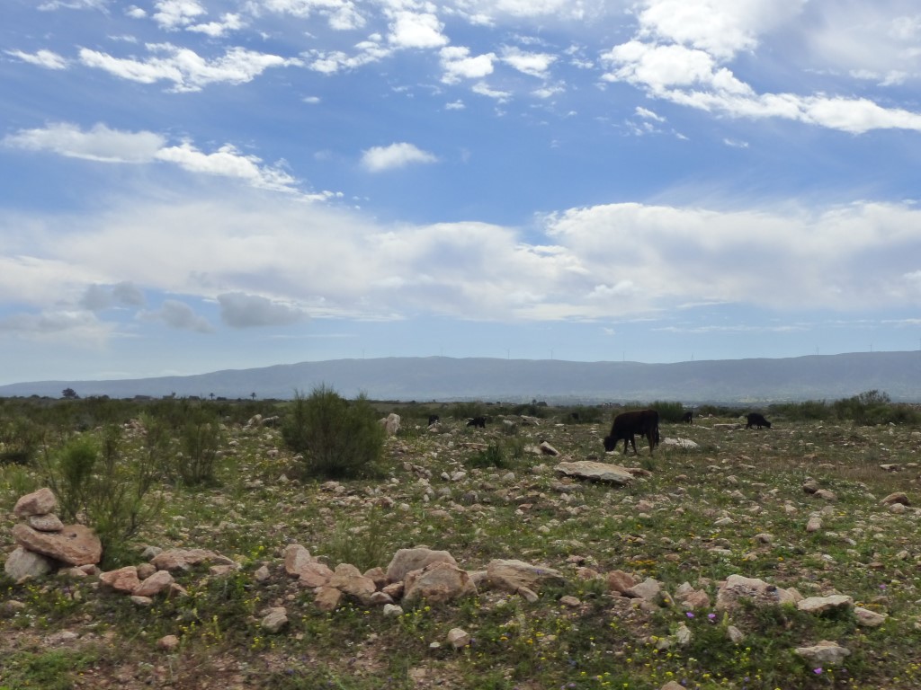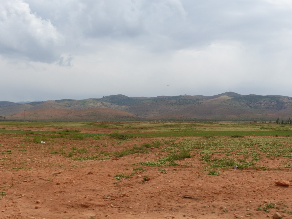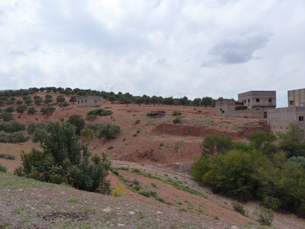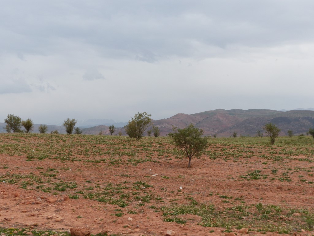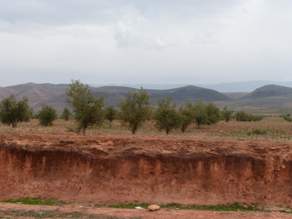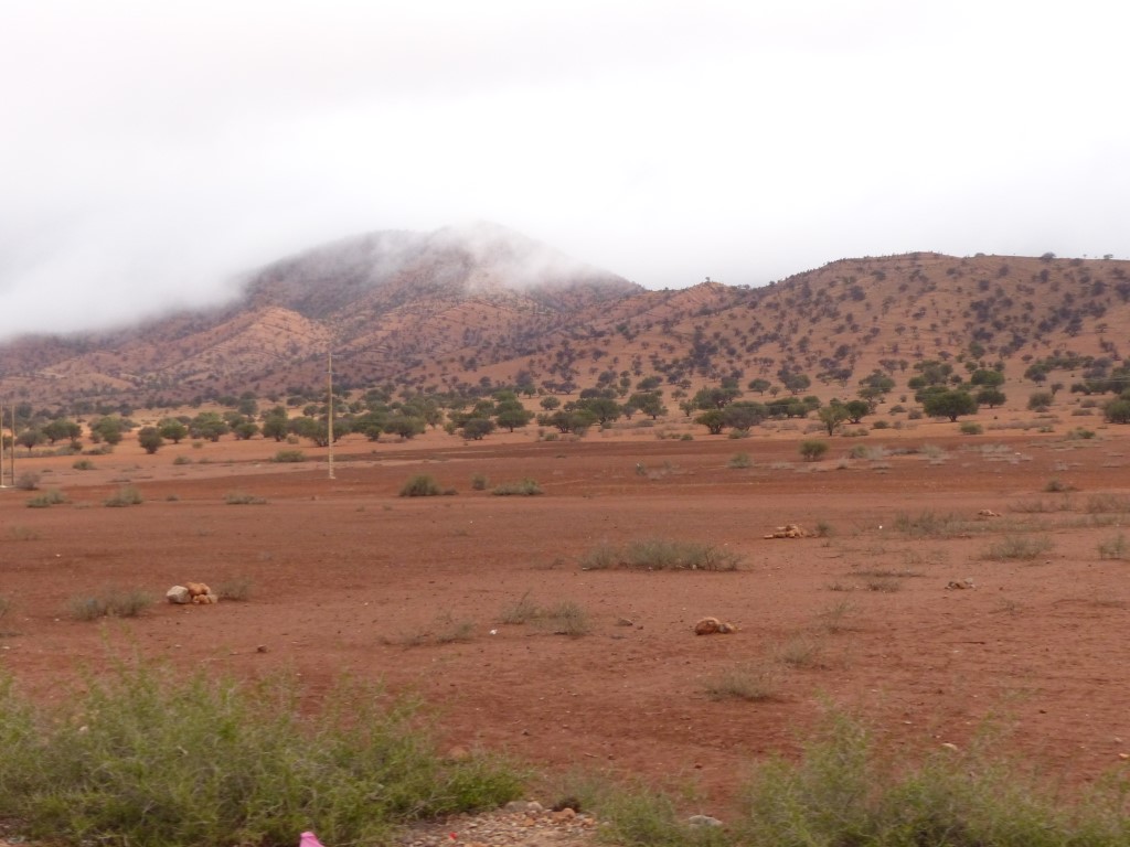 Il a plu durant la nuit et le ciel est bien bouché ce matin. C’est le temps annoncé pour la journée. Nous décidons donc d’annuler notre trajet vers Tafraoute pour rejoindre la côte à Agadir. En chemin nous observons des plantations d’arbres fruitiers. Le travail de la terre semble moins ingrat par ici.
