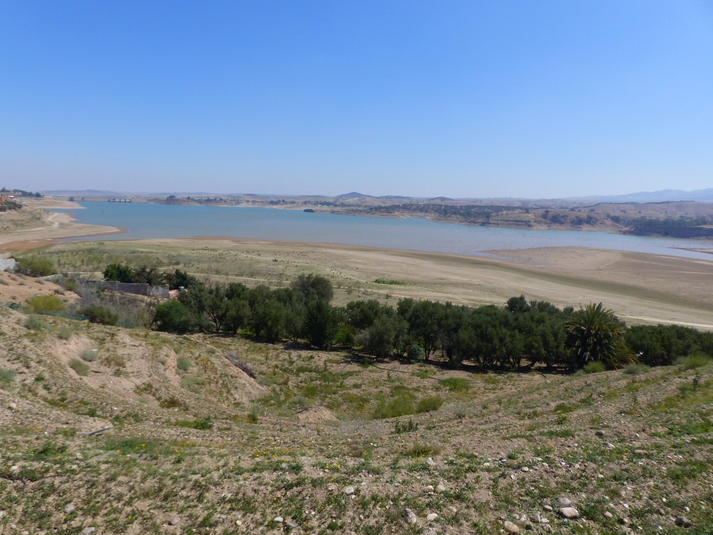 Ciel à tendance bleue mais bien voilé ce matin. On ne distingue pas l'Atlas en tout arrière plan lorsque nous prenons la route. Nous nous dirigeons vers le barrage de Ouirgane au Sud Est Marrakech. Les infos sur Google indiquent que ces derniers jours les barrages se sont remplis. Pour autant, ces réserves d'eau atteignent seulement 31% des capacités.