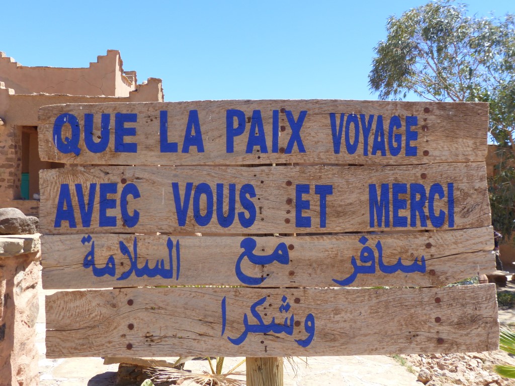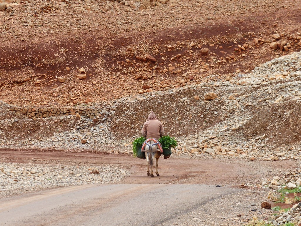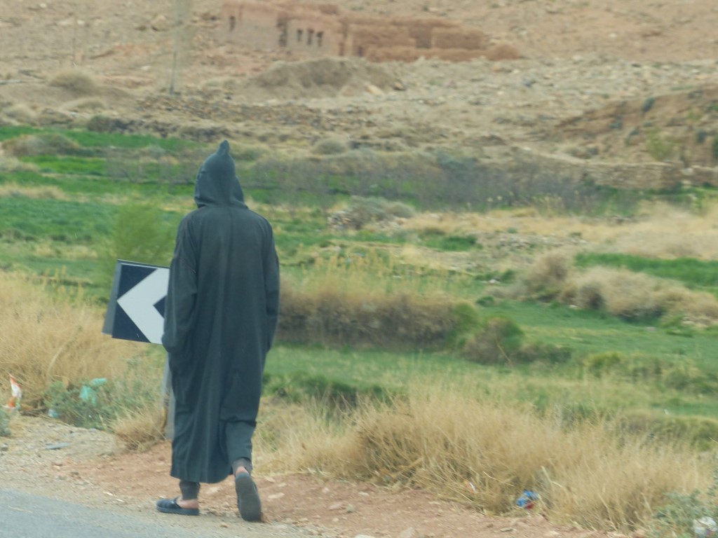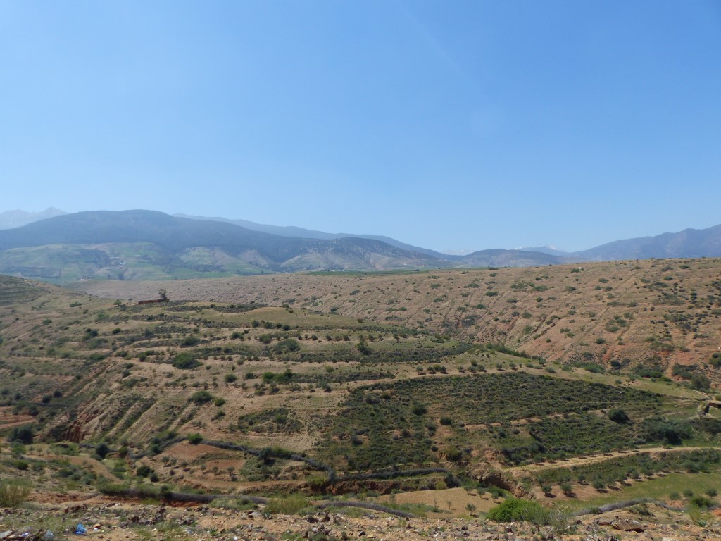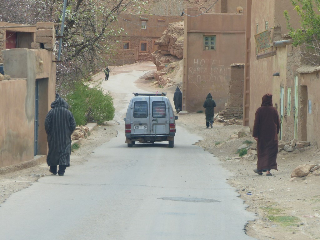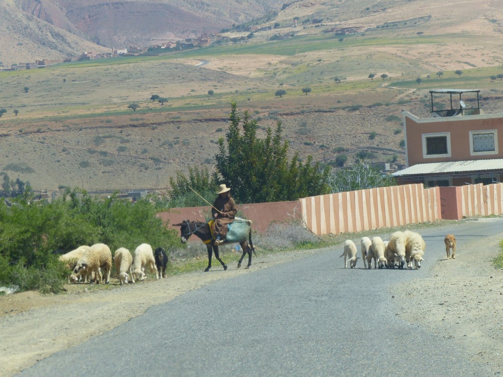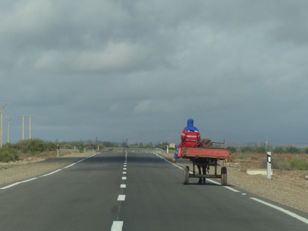 Nous parvenons à quitter la ville et fuir cette cacophonie. La voiture dispose d'un GPS mais pas de son mode d'emploi. Avec un peu de temps, nous parvenons à trouver notre route et filons en campagne. Nous nous ravitaillons sur la route en évitant un commerçant nous présentant une facture de 130 euros pour un panier de fruits et légumes que nous reconstituerons au magasin d'à côté pour 48 dirhams soit 4,80 € !