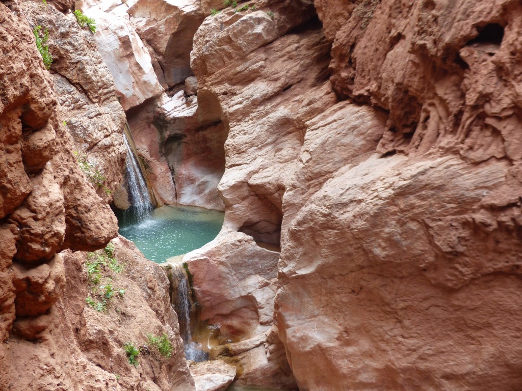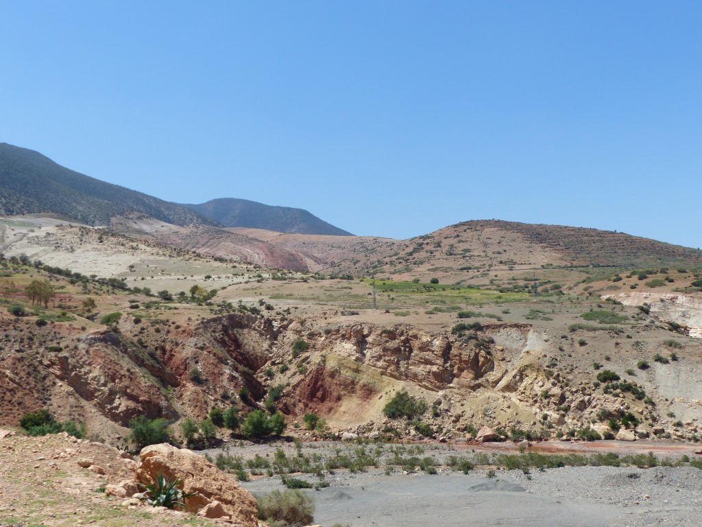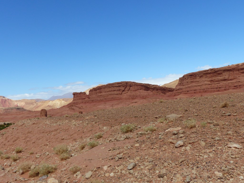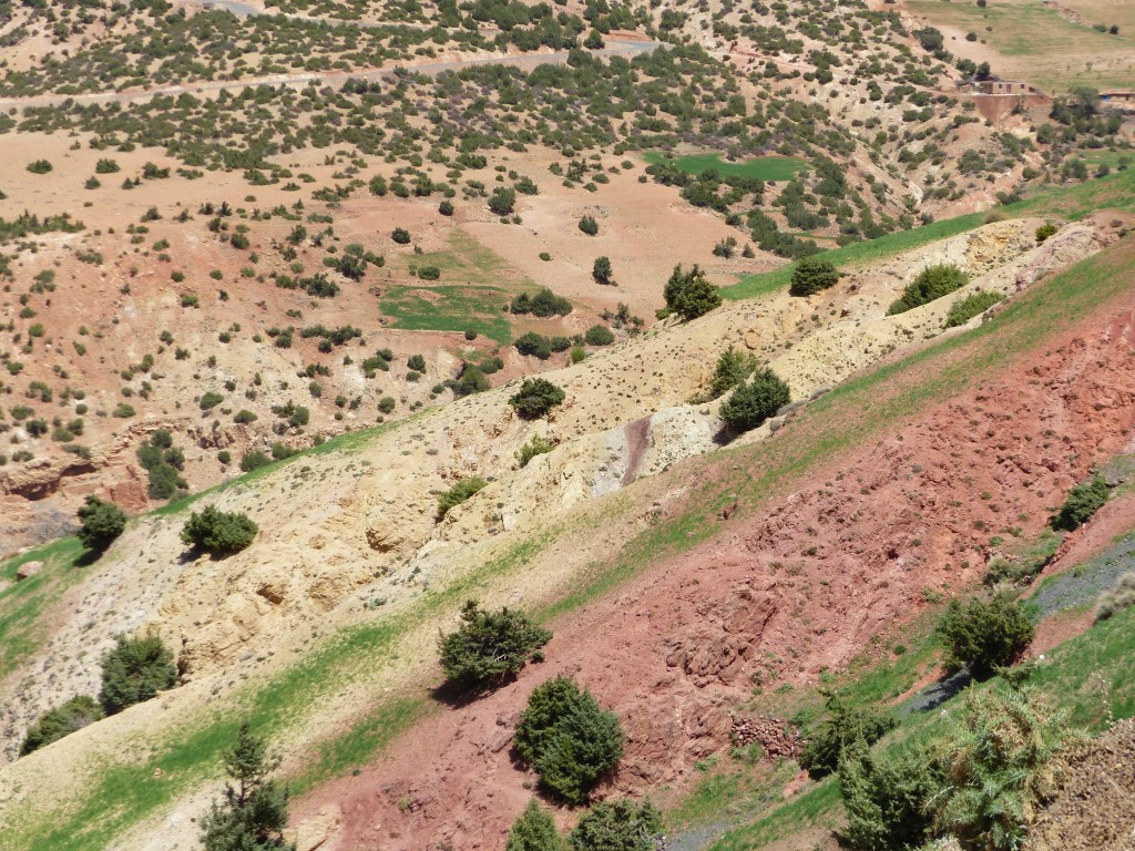 Nous prenons la voiture et revenons sur notre route de la veille : la vallée de Ait Bouelli que nous avons parcouru de nuit. Les couleurs des roches oscillent entre vert et rouge, c'est chouette!