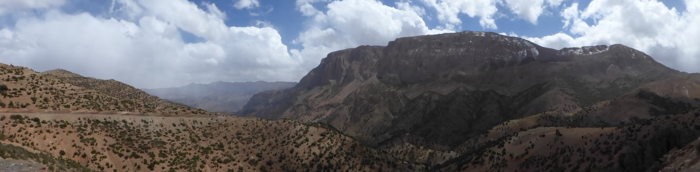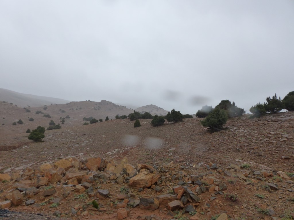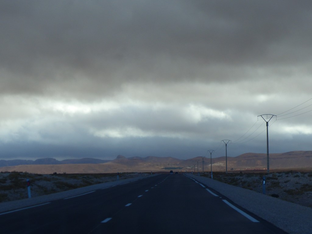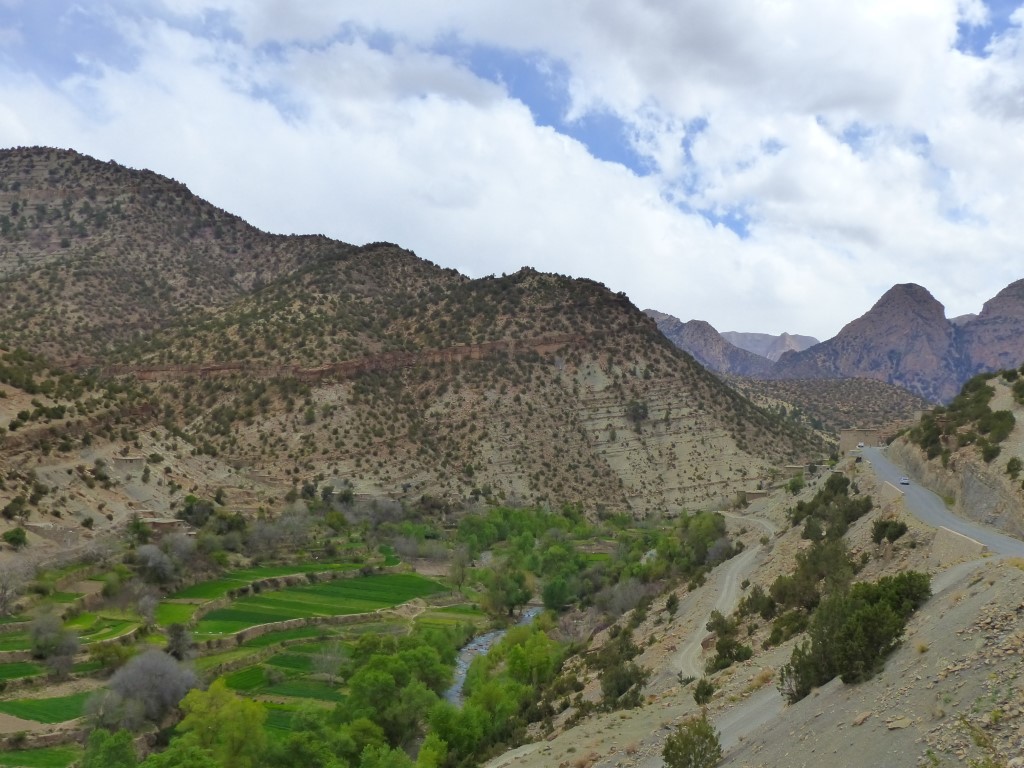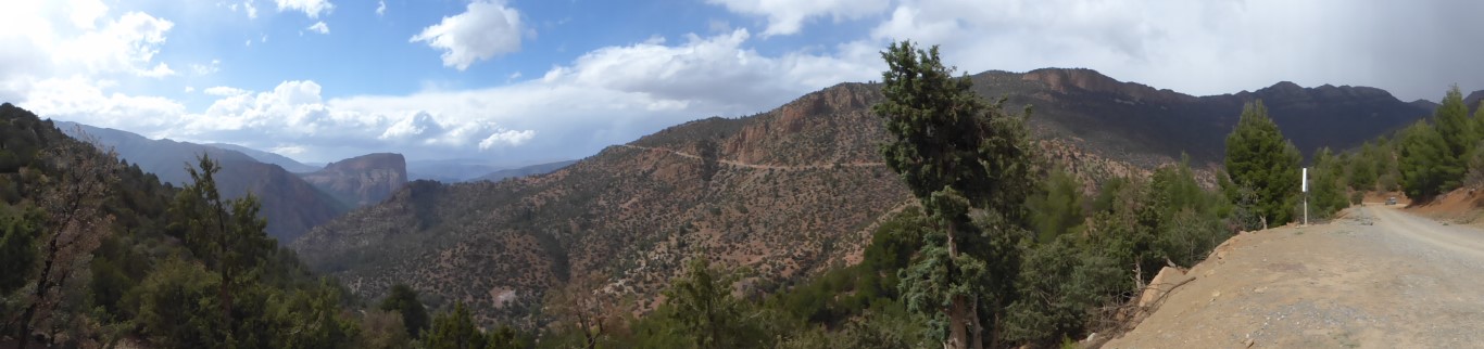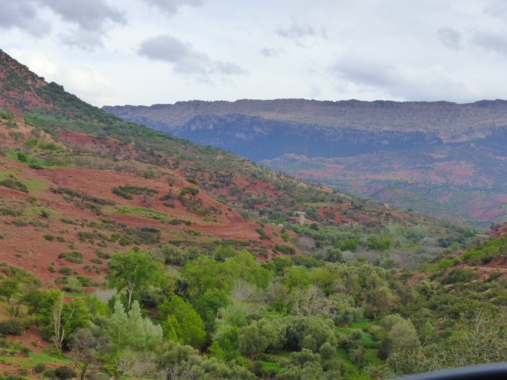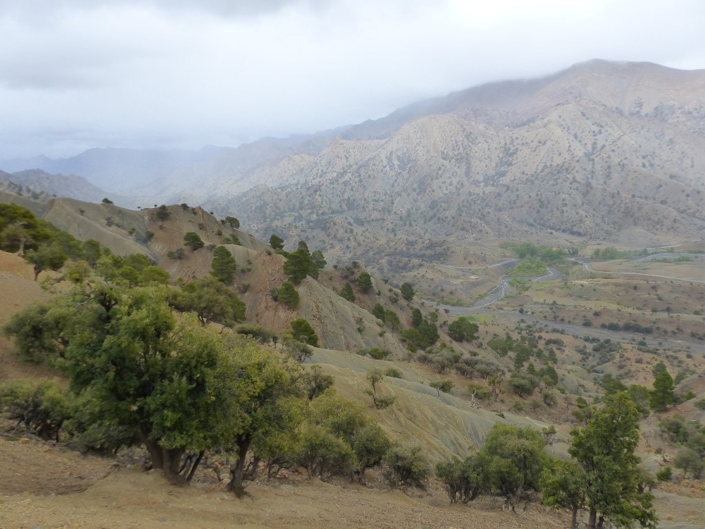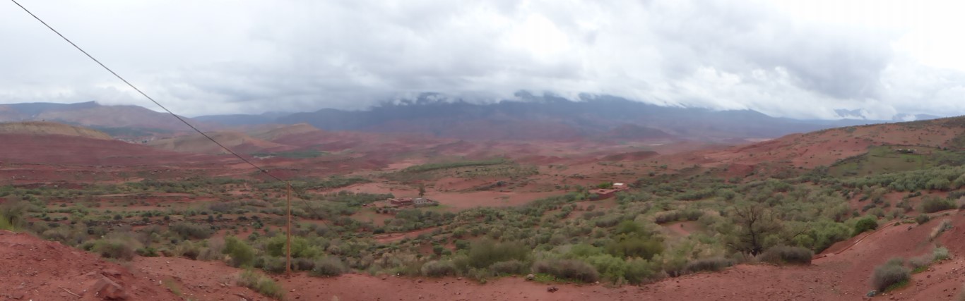 Le temps étant incertain, nous décidons de ne pas prendre une route de montagne jusqu'à 3000m pour atteindre la cascade d'Ouzoud (que nous ne verrons pas du coup). Nous prenons une autre route, plus longue et qui va s'avérée être magnifique (cf photos). Beaucoup de vent, plutôt frais, et un peu de grêle mais finalement un très joli parcours.