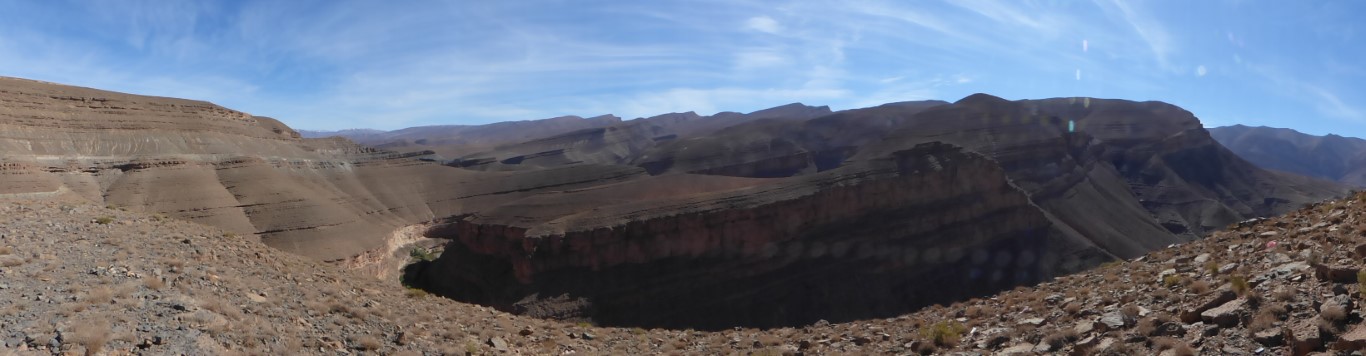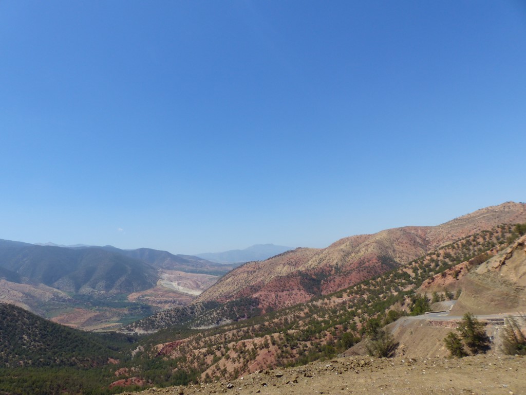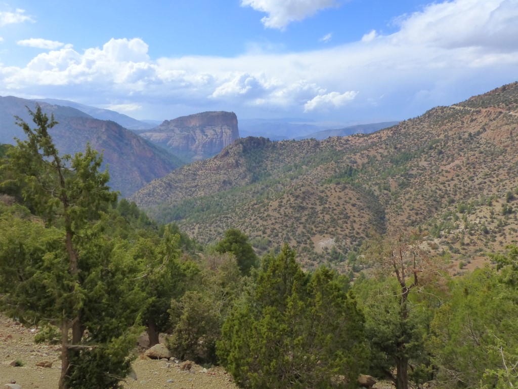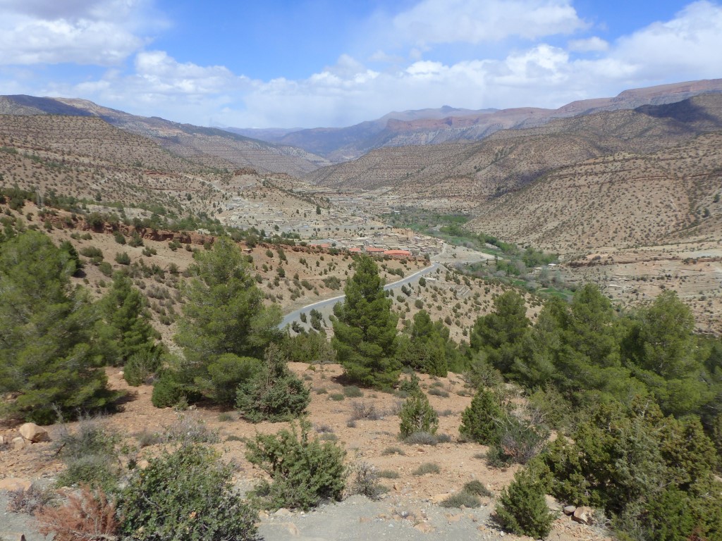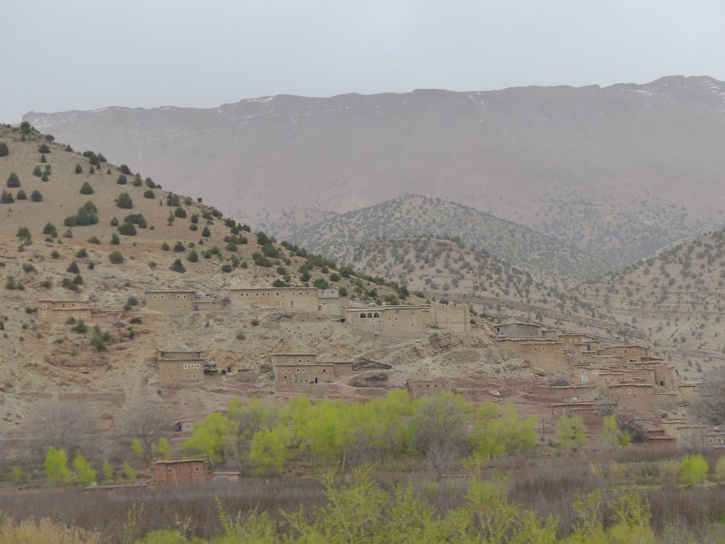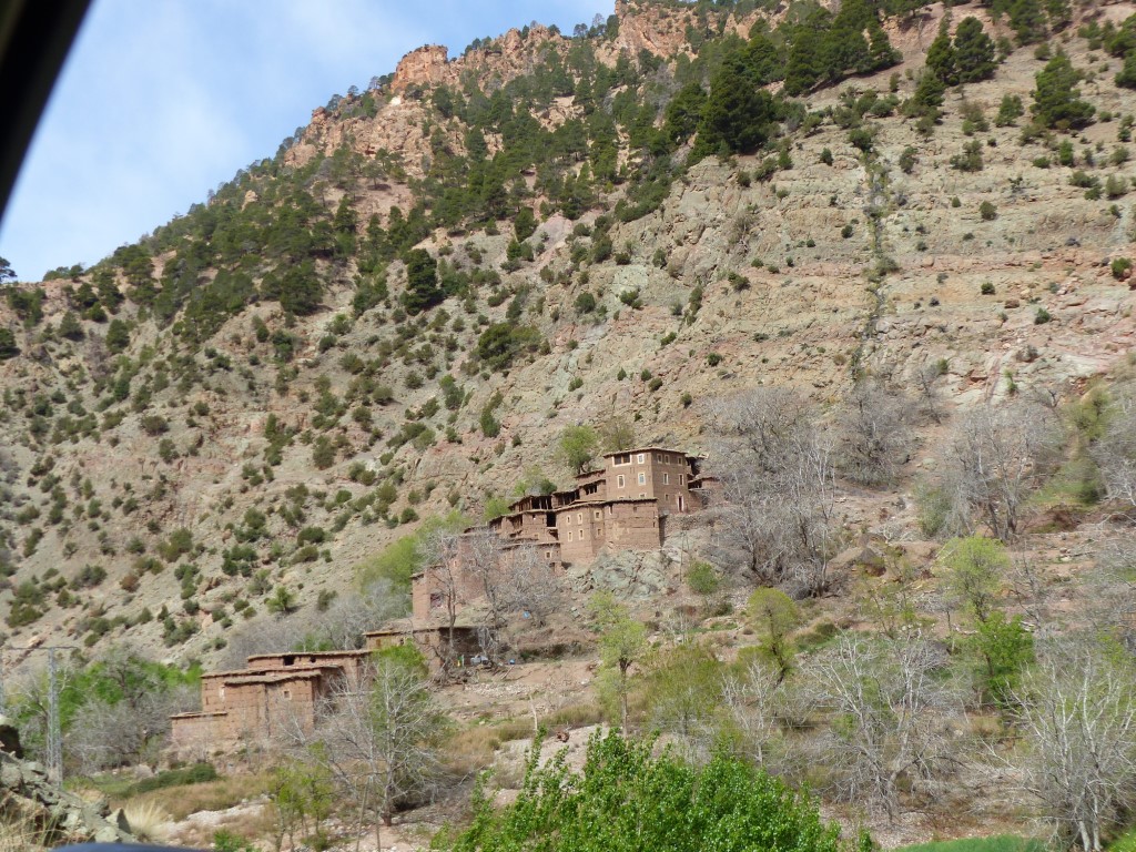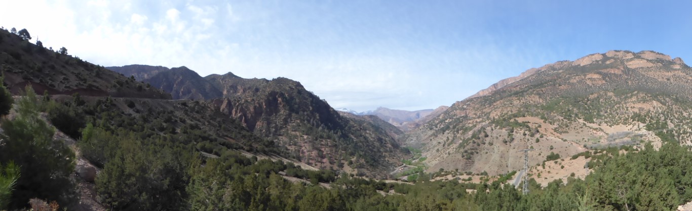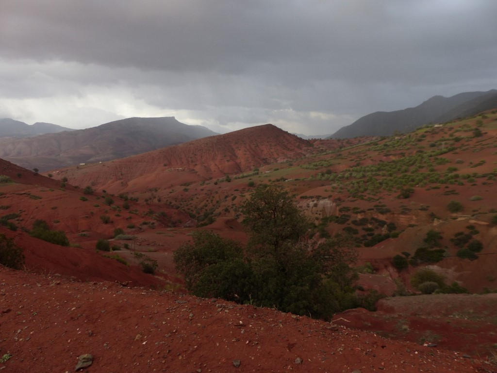 Le temps étant incertain, nous décidons de ne pas prendre une route de montagne jusqu'à 3000m pour atteindre la cascade d'Ouzoud (que nous ne verrons pas du coup). Nous prenons une autre route, plus longue et qui va s'avérée être magnifique (cf photos). Beaucoup de vent, plutôt frais, et un peu de grêle mais finalement un très joli parcours.
