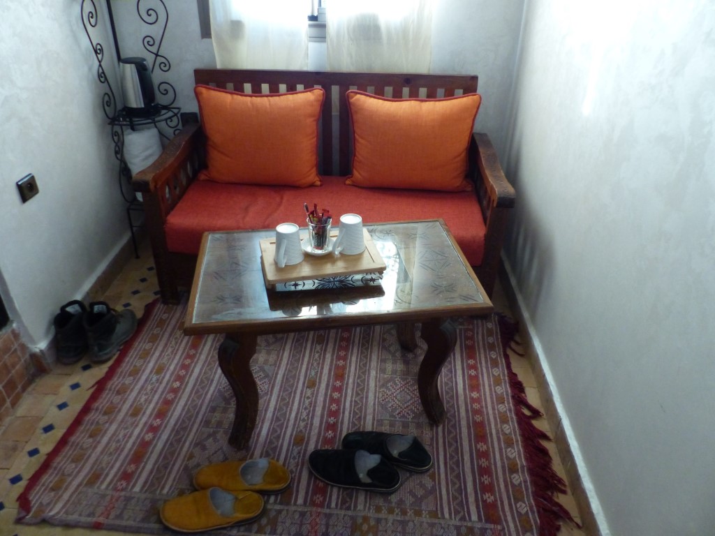 Nous prenons attache au Riad Redwan, en périphérie de Marrakech pour les deux nuits à venir. La chambre est fraîche. Elle nous permet de récupérer de la journée.