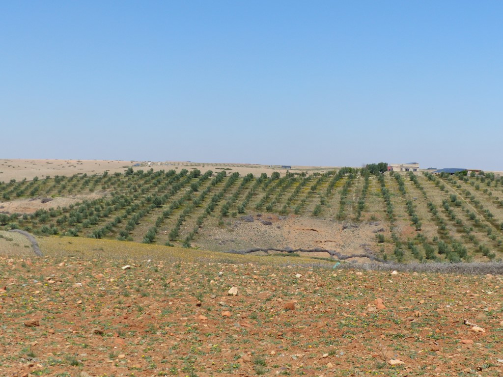 Après une bonne nuit au calme, nous prenons le petit déjeuner sur la terrasse de l'hôtel. L'espace est pour nous seul. L'hôtel est ceinturé de champs d'oliviers. C'est très calme.