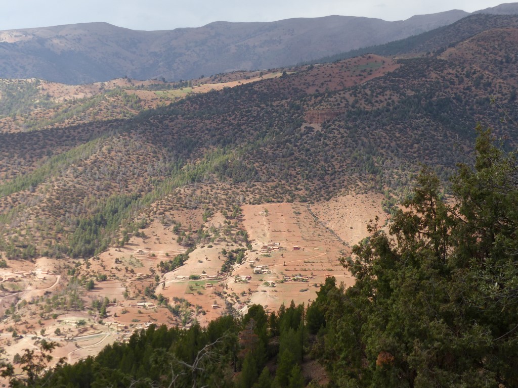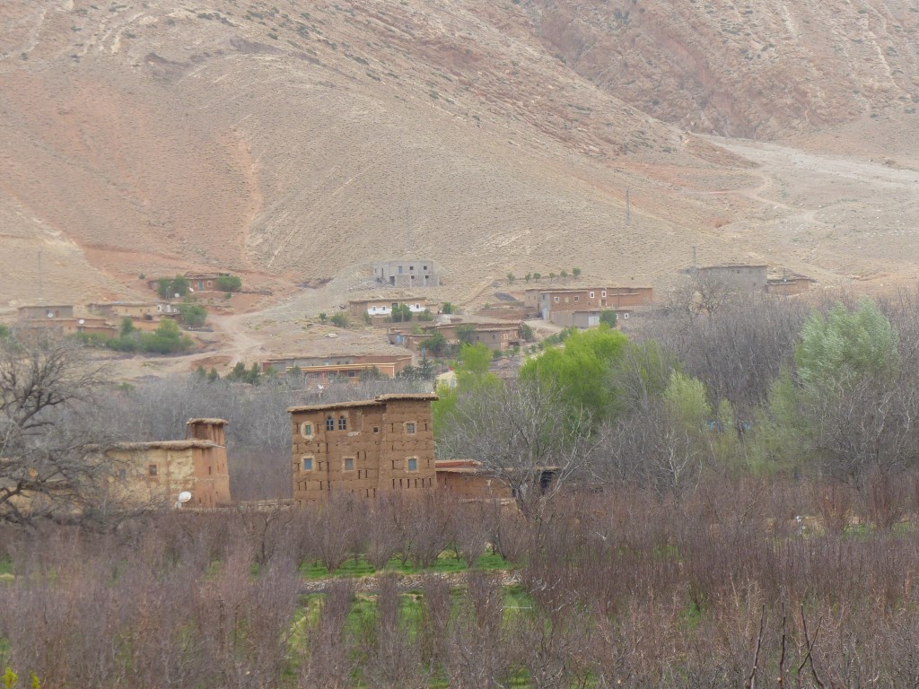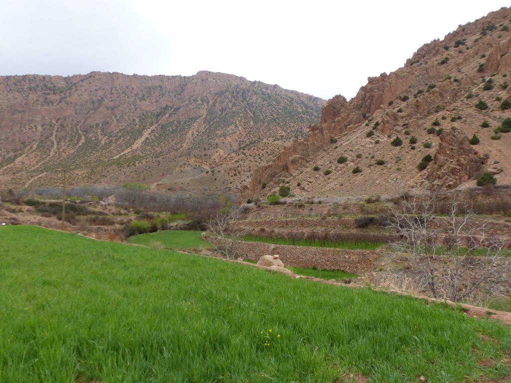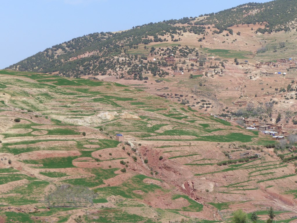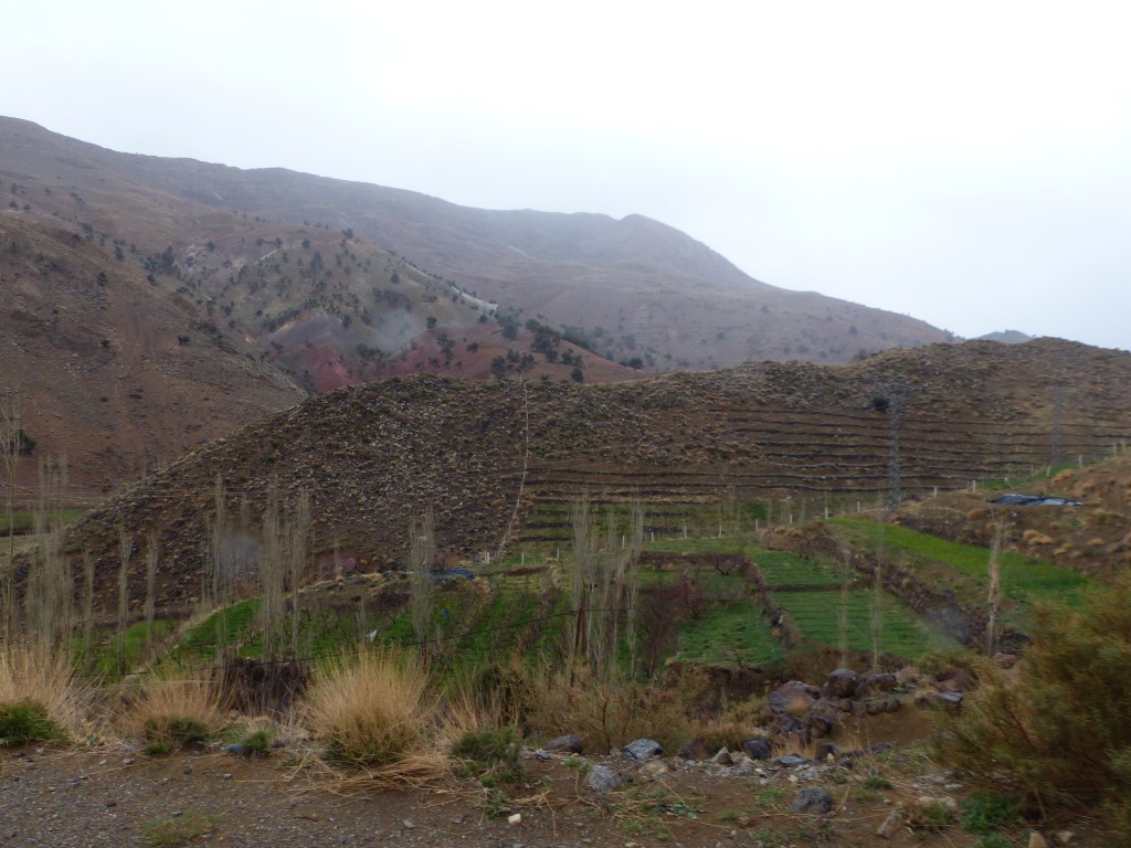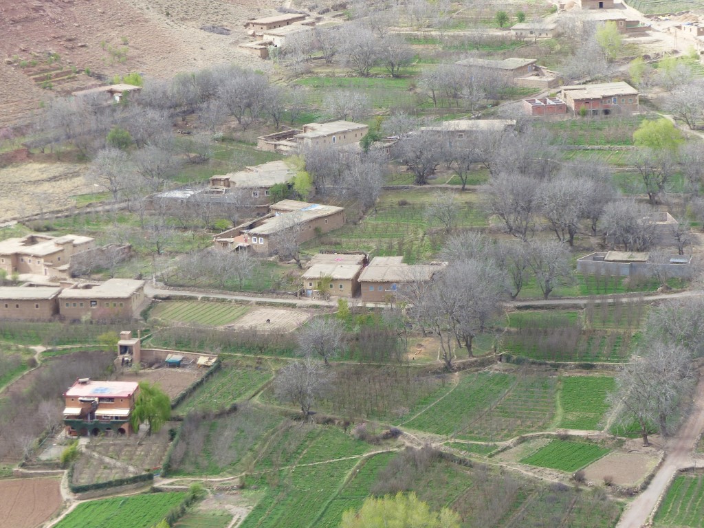 Il y a de l'eau dans cette vallée et les Marocains préparent les champs. Ils bêchent au pied des arbres et ajoutent de la fumure. Sur Agouti, où nous avons dormi et où nous serons encore ce soir, les espaces sont des vergers de noyers, d'abricotiers et de pommiers.