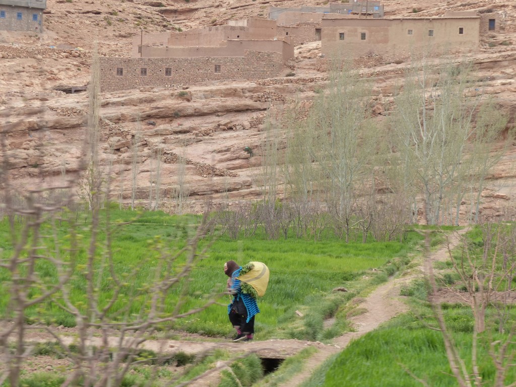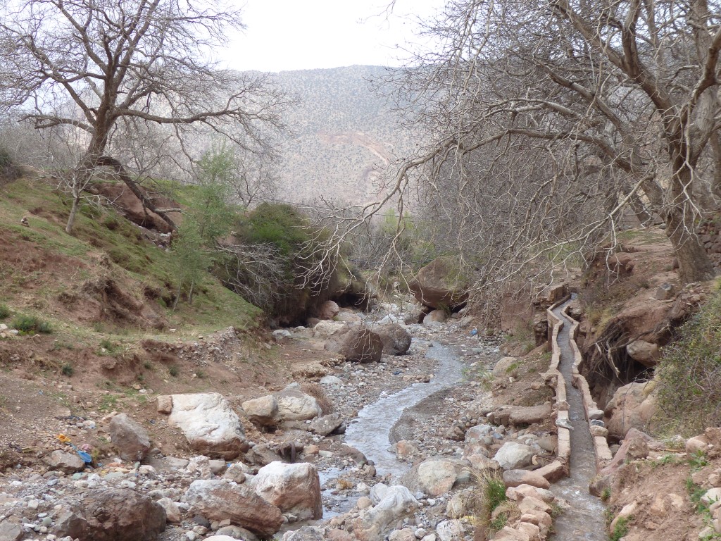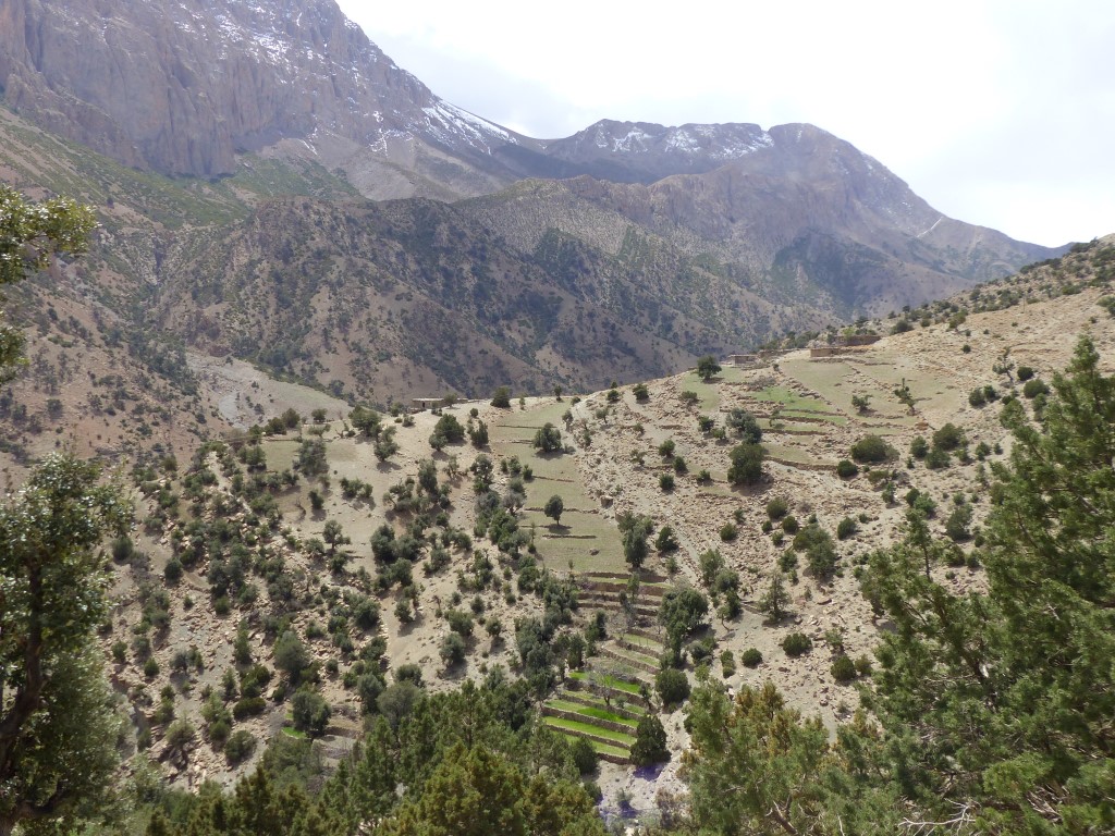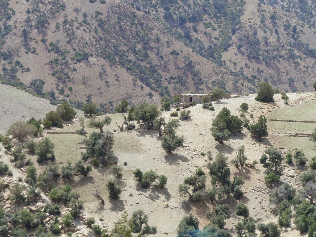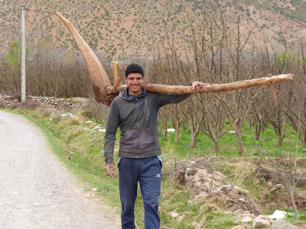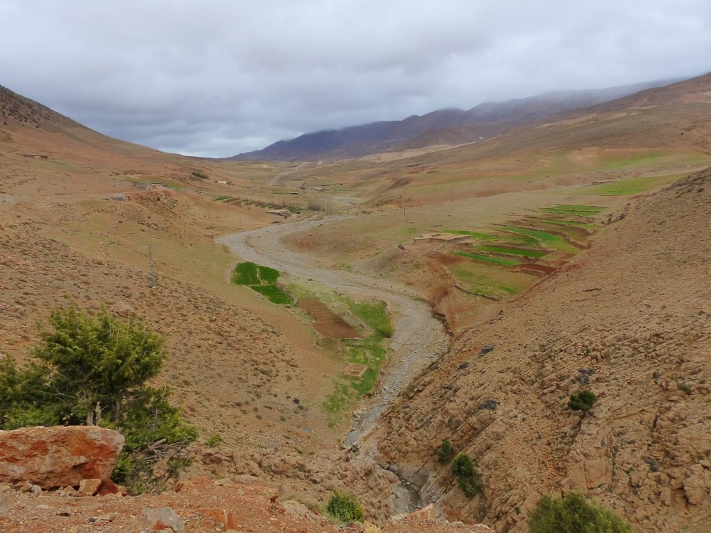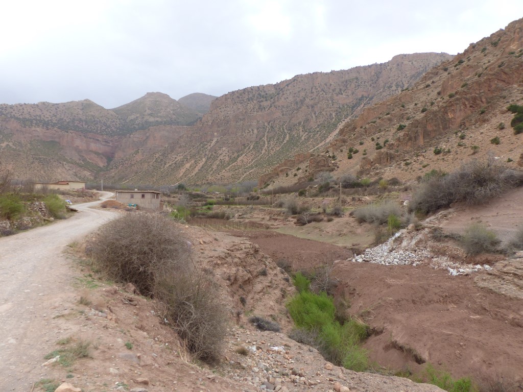 Il y a de l'eau dans cette vallée et les Marocains préparent les champs. Ils bêchent au pied des arbres et ajoutent de la fumure. Sur Agouti, où nous avons dormi et où nous serons encore ce soir, les espaces sont des vergers de noyers, d'abricotiers et de pommiers.