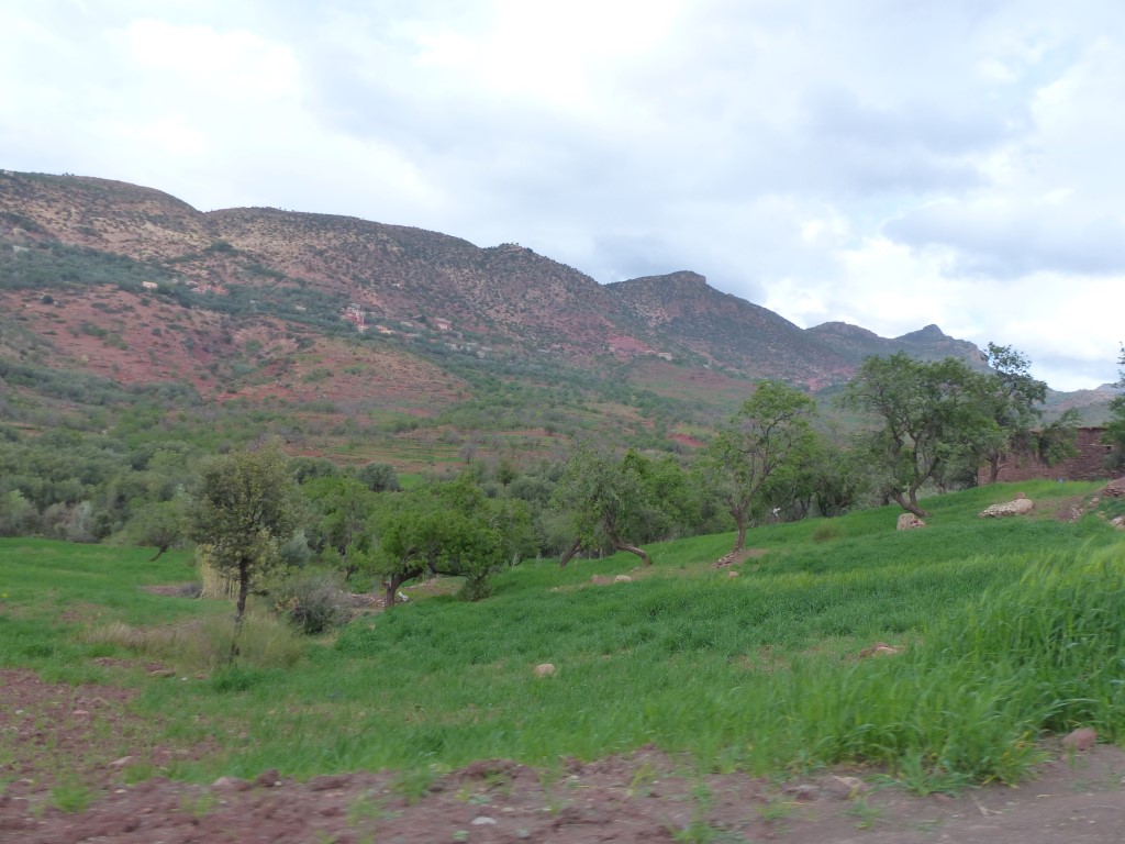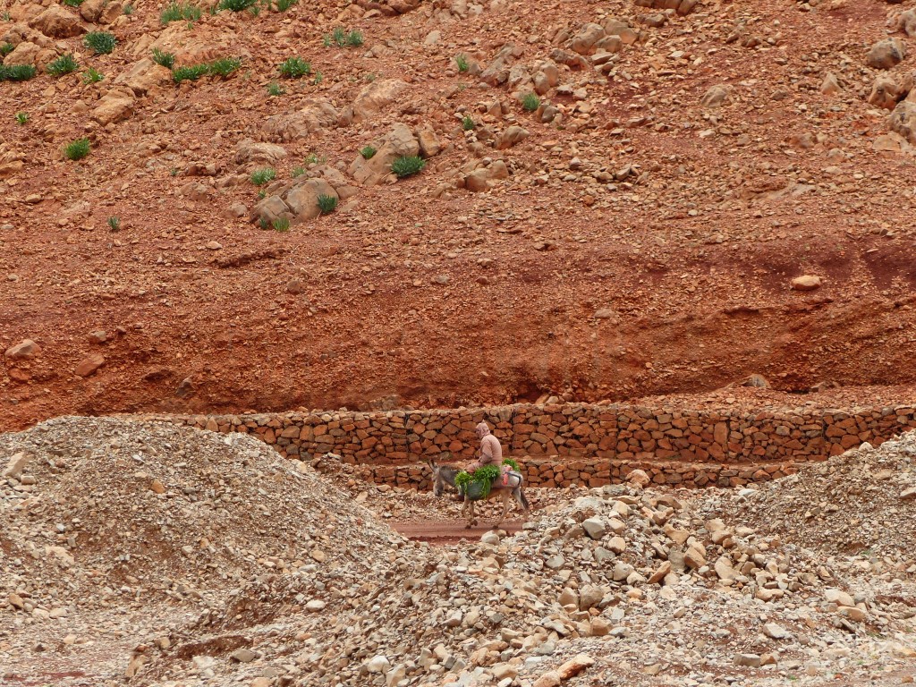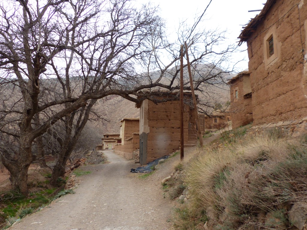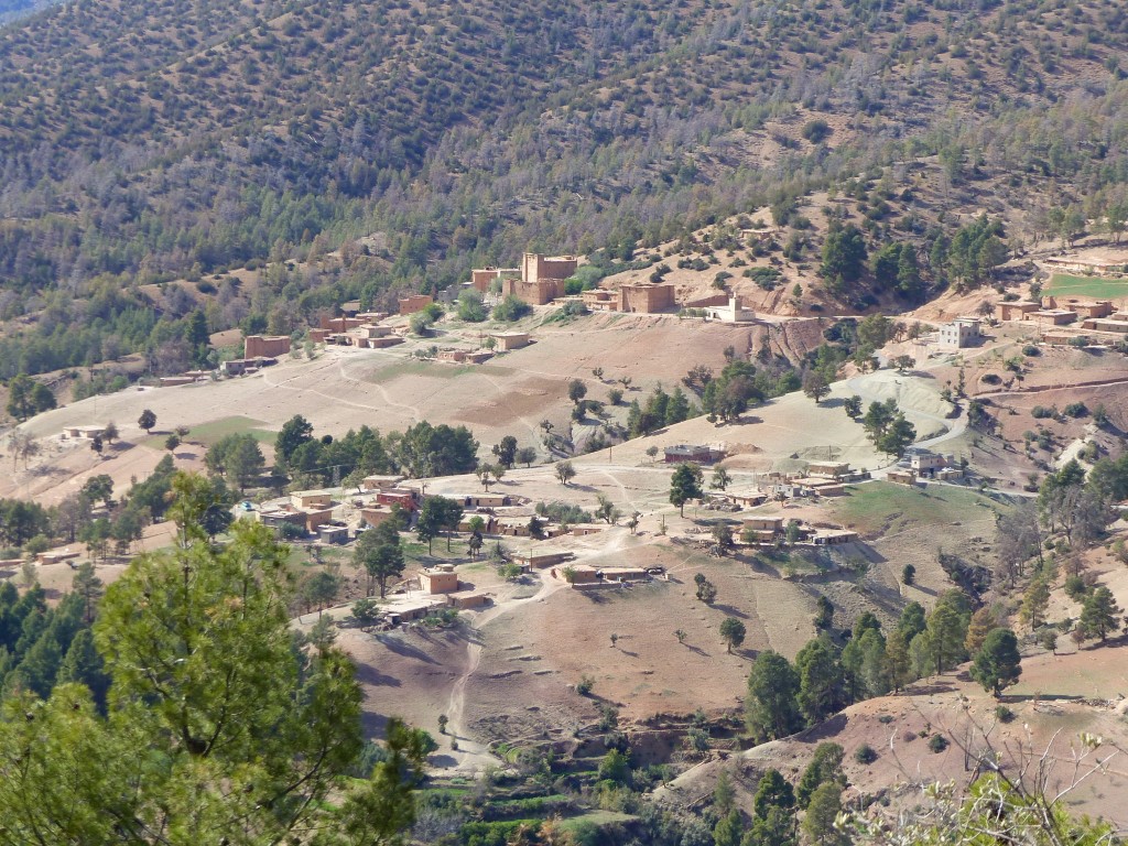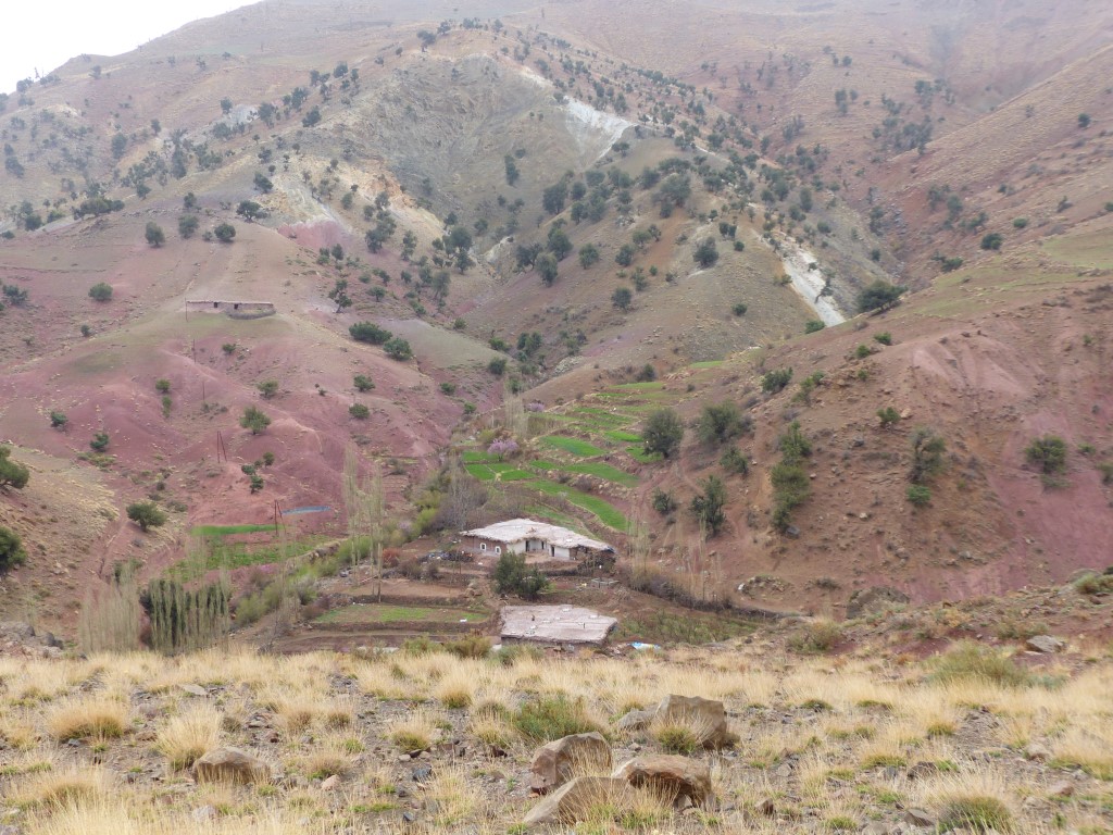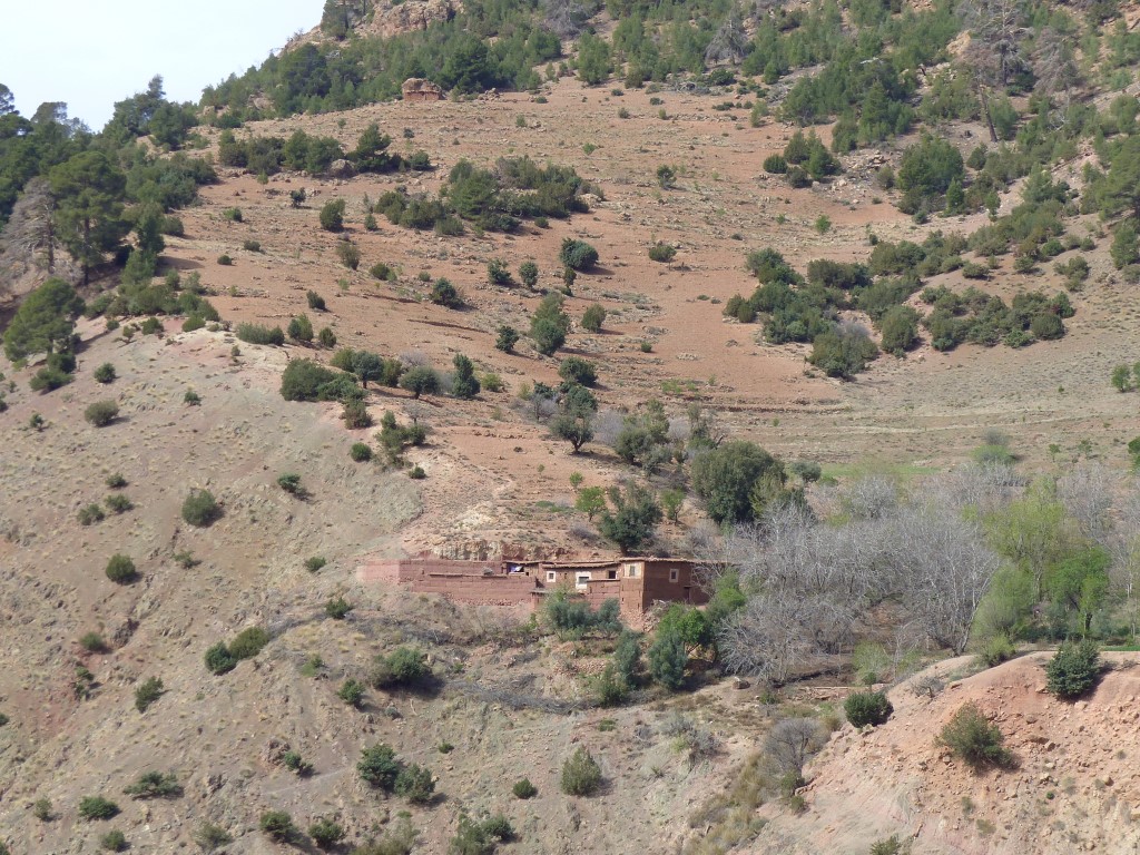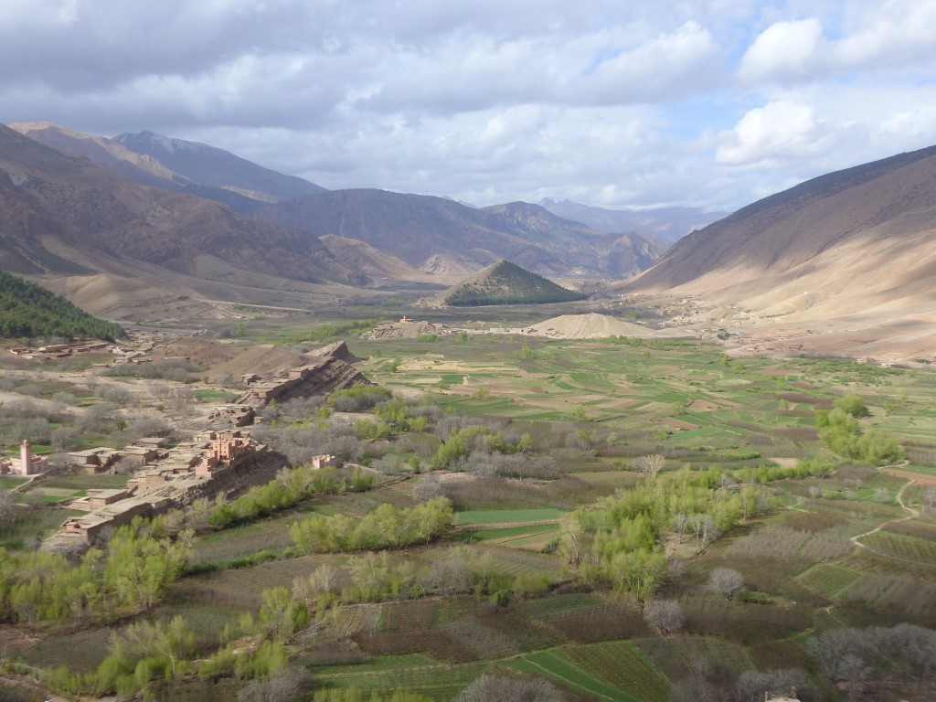 Il y a de l'eau dans cette vallée et les Marocains préparent les champs. Ils bêchent au pied des arbres et ajoutent de la fumure. Sur Agouti, où nous avons dormi et où nous serons encore ce soir, les espaces sont des vergers de noyers, d'abricotiers et de pommiers.