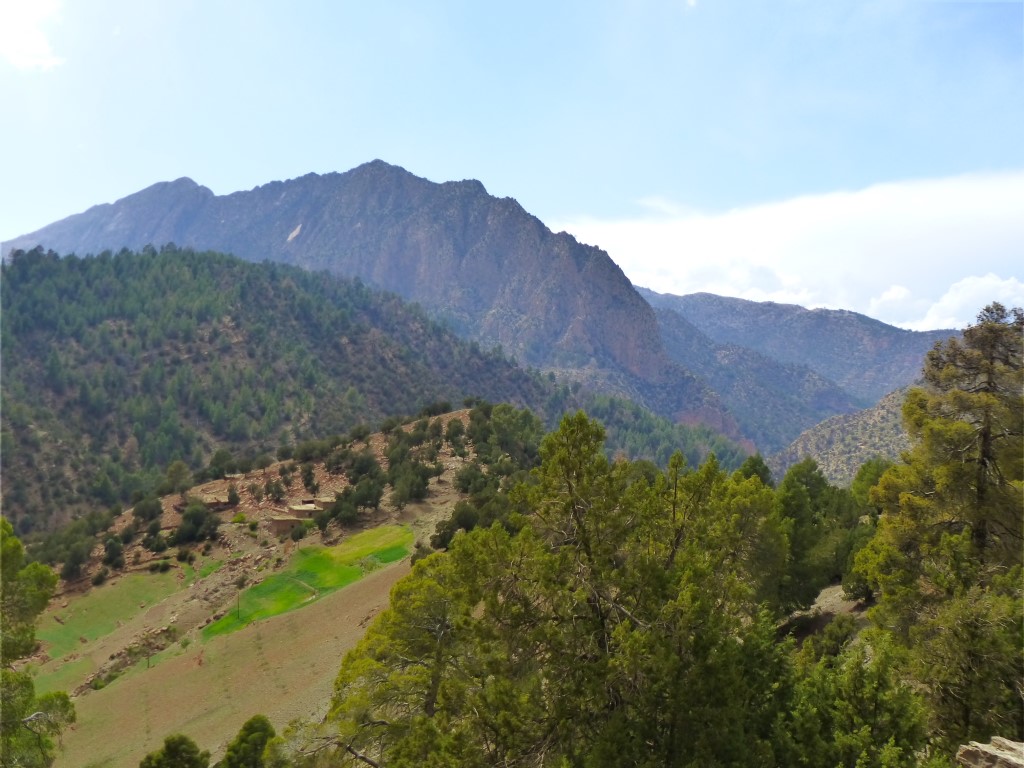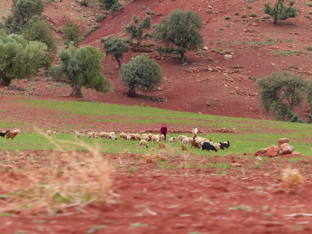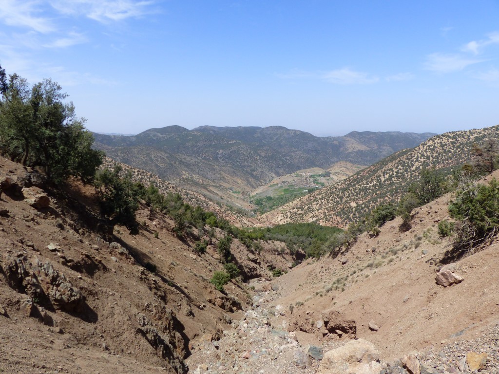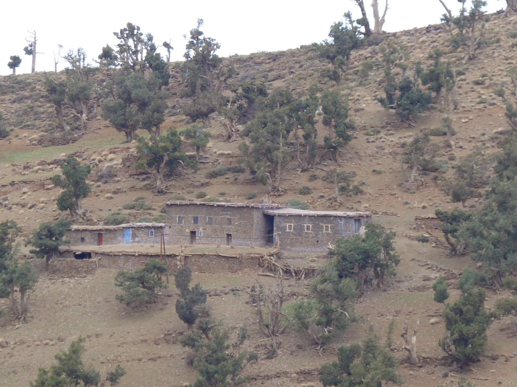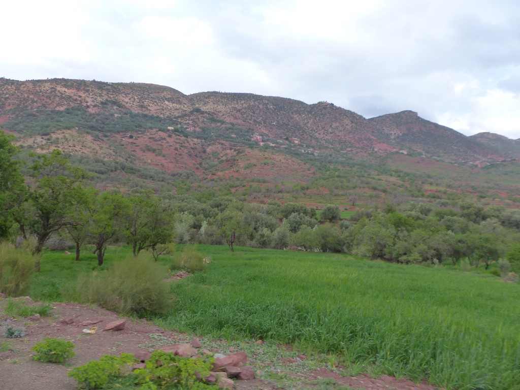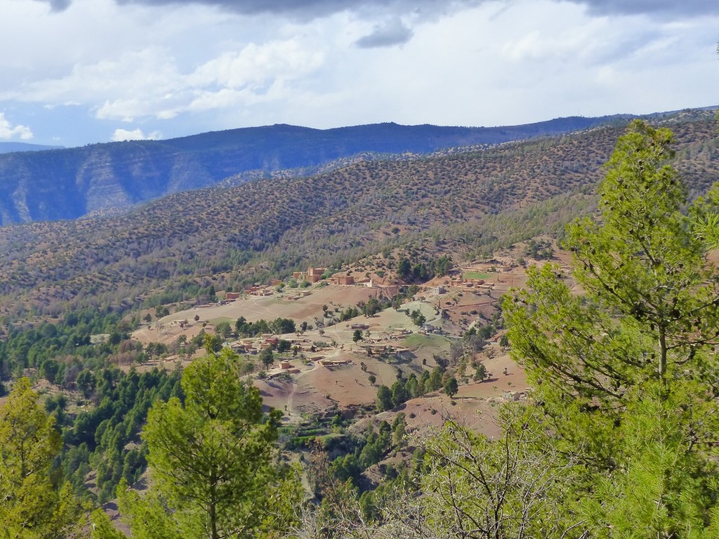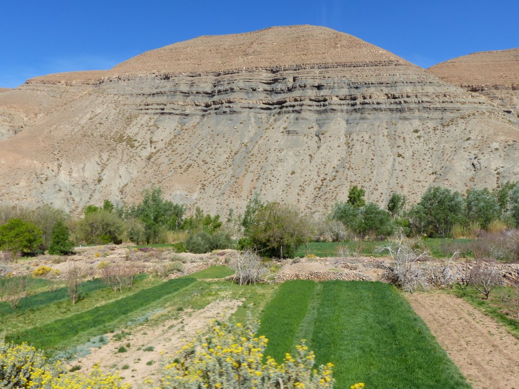 Il y a de l'eau dans cette vallée et les Marocains préparent les champs. Ils bêchent au pied des arbres et ajoutent de la fumure. Sur Agouti, où nous avons dormi et où nous serons encore ce soir, les espaces sont des vergers de noyers, d'abricotiers et de pommiers.