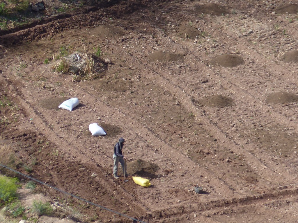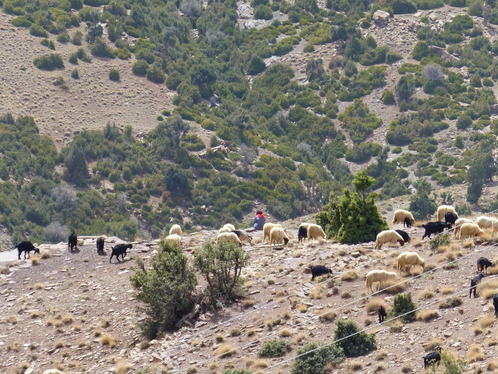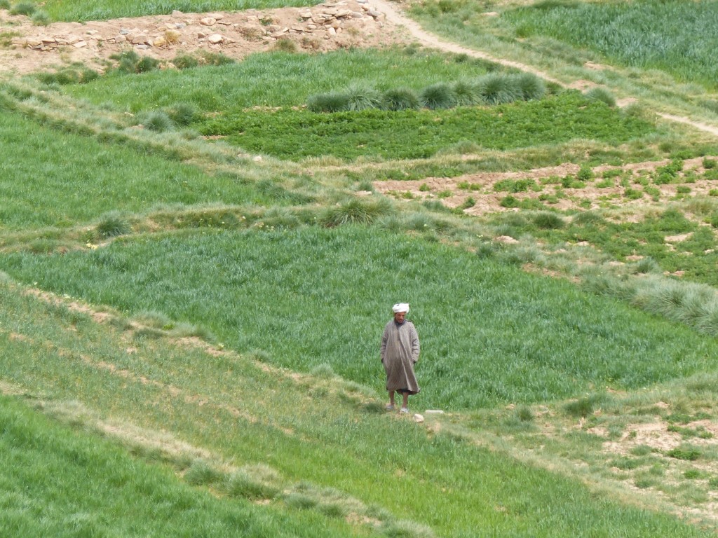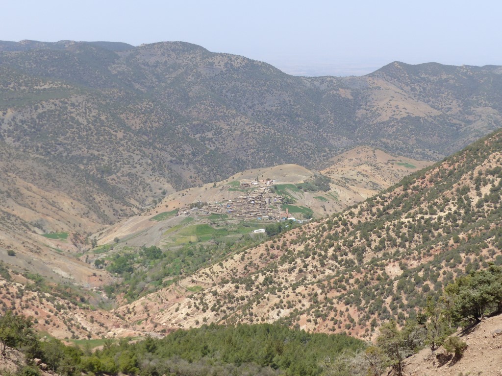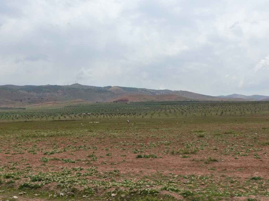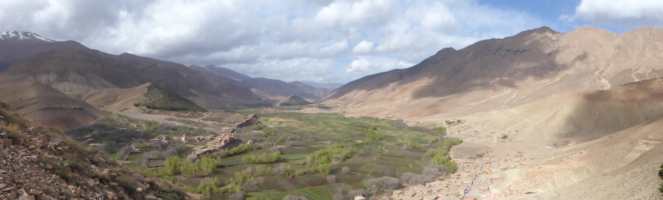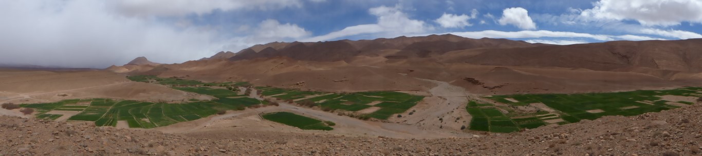 Il y a de l'eau dans cette vallée et les Marocains préparent les champs. Ils bêchent au pied des arbres et ajoutent de la fumure. Sur Agouti, où nous avons dormi et où nous serons encore ce soir, les espaces sont des vergers de noyers, d'abricotiers et de pommiers.