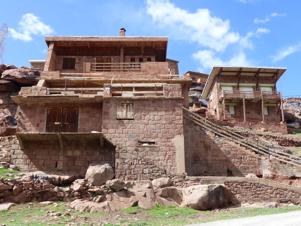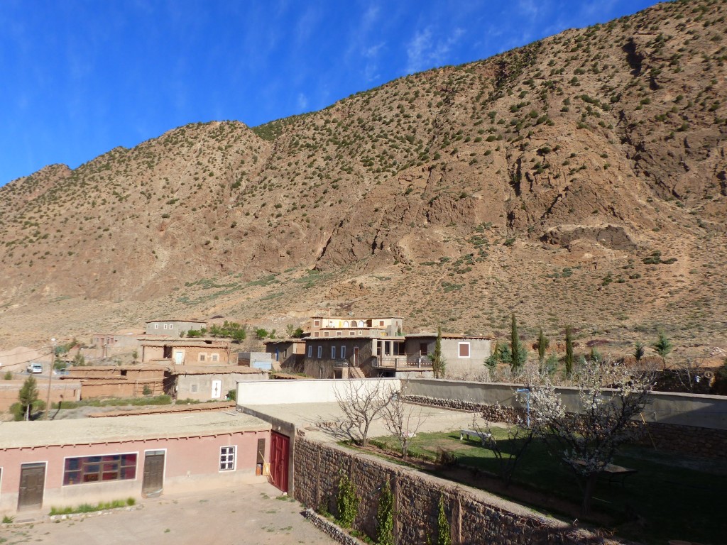 Nous logeons et dinons au gite "la montagne au pluriel" à 500m de notre hébergement de la veille. Cette fois nous avons commandé le repas du soir qui sera constitué d'une soupe de légumes (pomme de terre-courgette-carotte) à la viande (mouton) et d'une tajine légumes-mouton (bizarrement!). Nous avons le droit à une pâtisserie au miel et à la cacahuète, d'une part de gâteau, de dates et d'une pomme de la vallée.