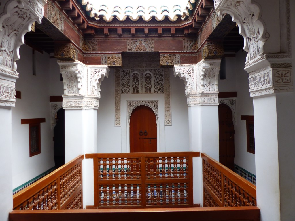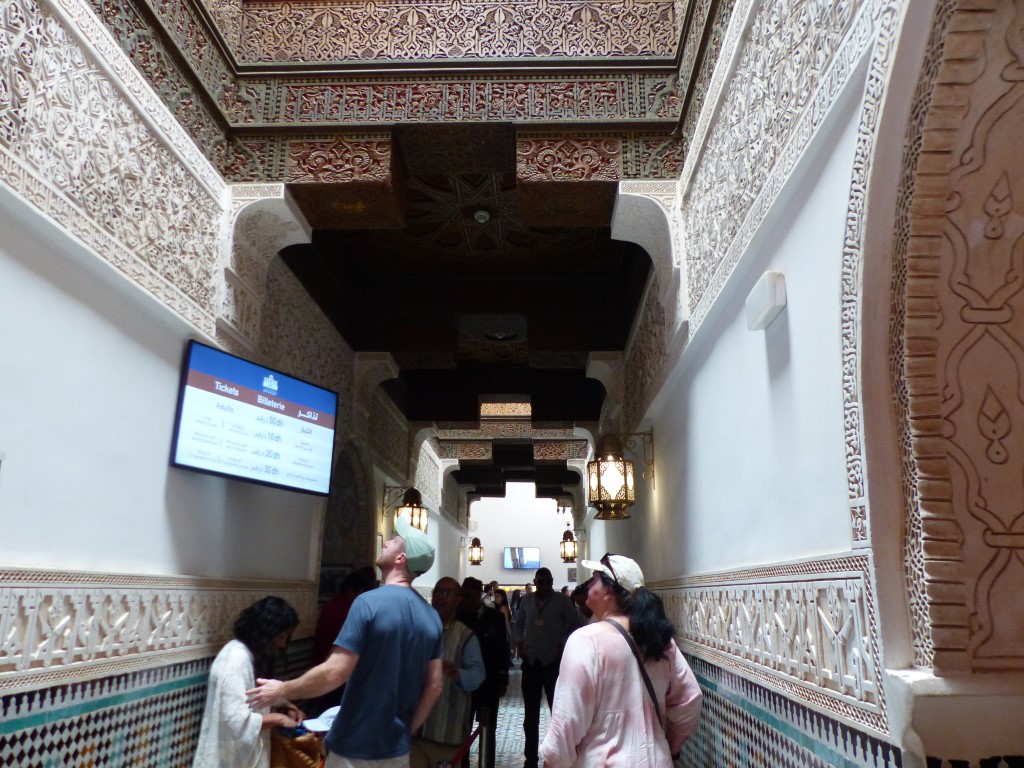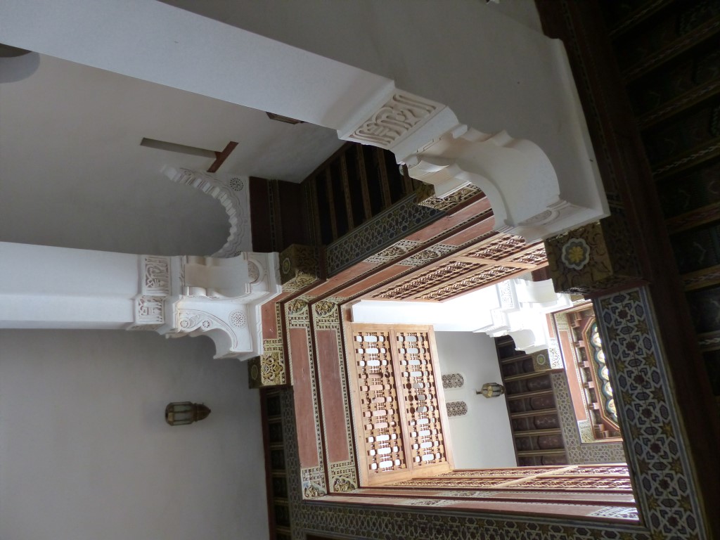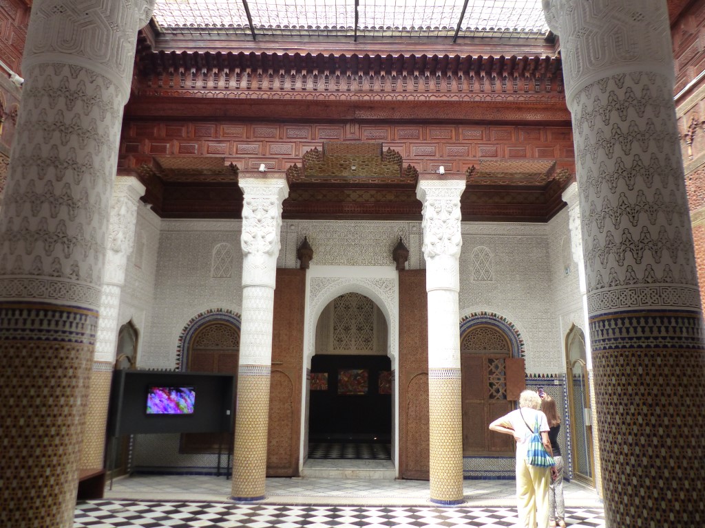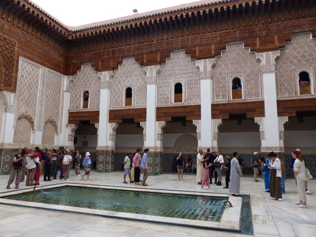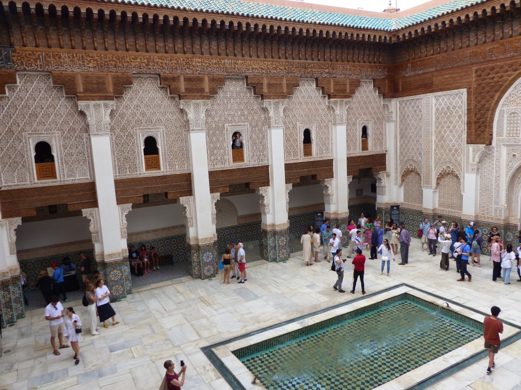 Nous allons visiter la Medersa Ben Youssef. C’est une école scientifique dans « divers domaines, religieux notamment ». Elle date du 16ème siècle et comporte 136 chambres de petite taille, pour 350 étudiants environ.
