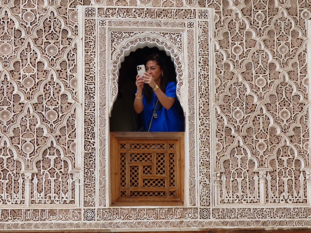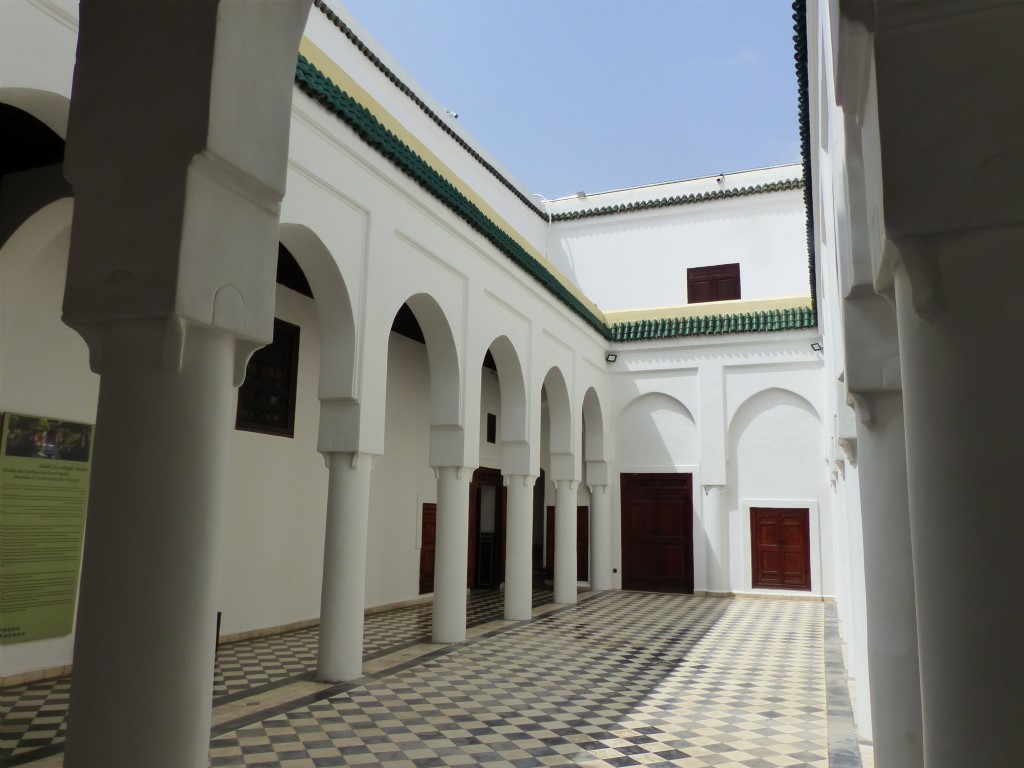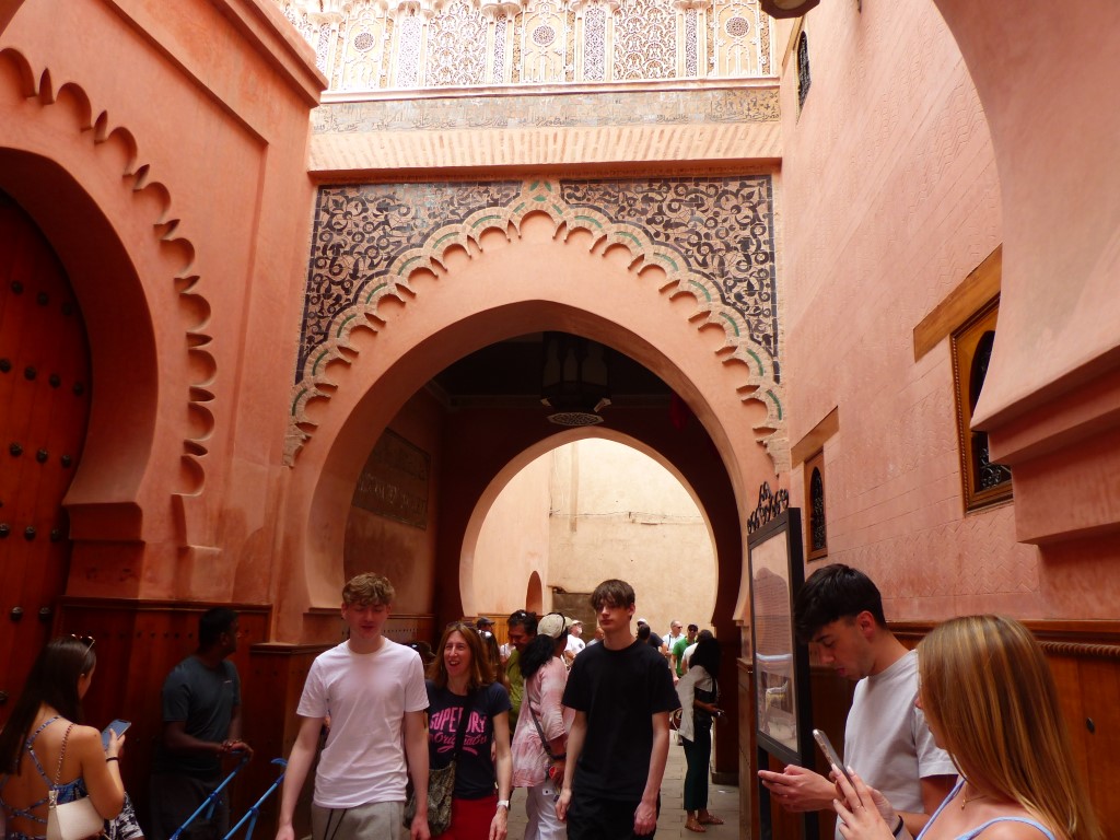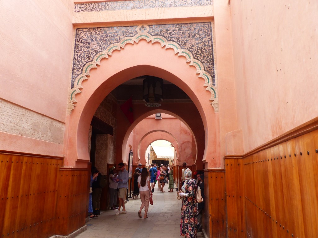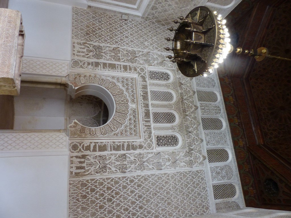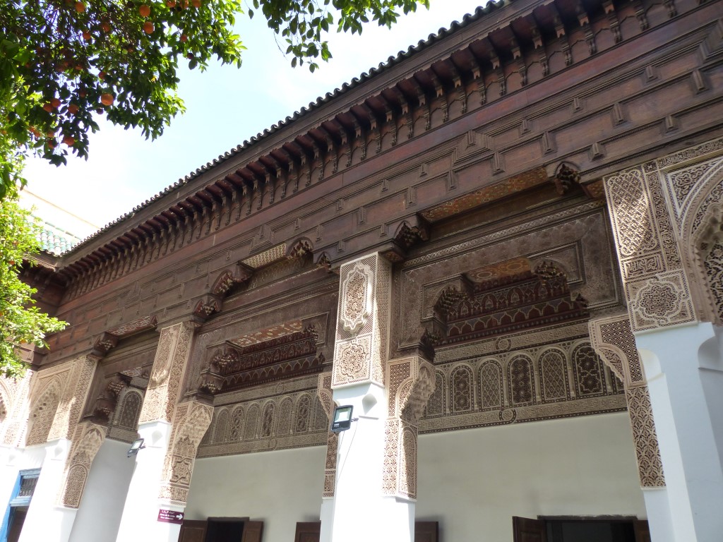 Nous allons visiter la Medersa Ben Youssef. C’est une école scientifique dans « divers domaines, religieux notamment ». Elle date du 16ème siècle et comporte 136 chambres de petite taille, pour 350 étudiants environ.
