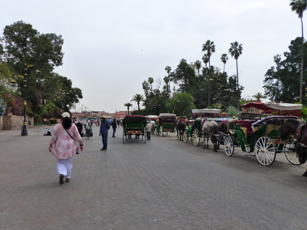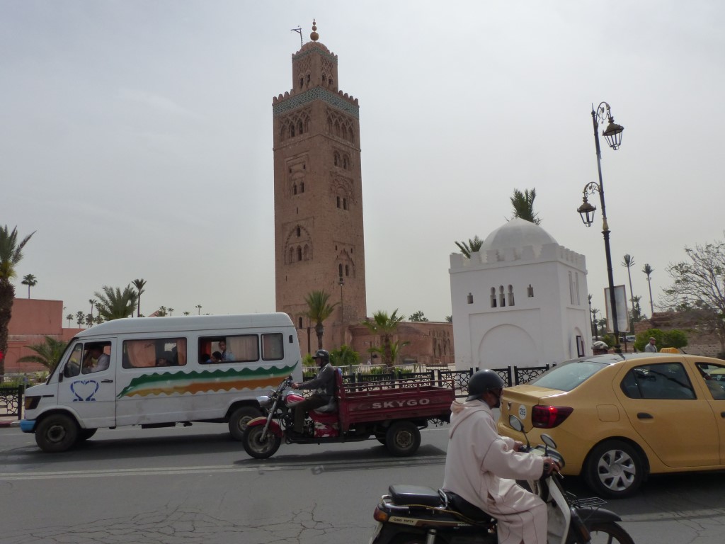 Nous nous rendons au centre de Marrakech, à la mosquée « la Koutoubia », à la place Jemaa-el-Fna et au souk qu’il les environnent.