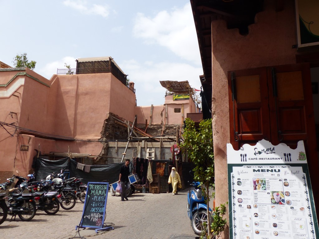 Un taxi-navette nous emmène à notre hôtel en périphérie de Marrakech. Un restaurant pas bien loin nous restaure avant notre fin de journée.