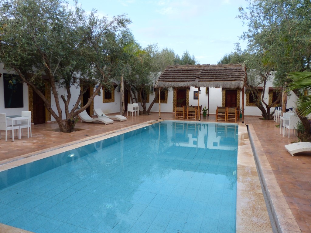 Le dîner d’hier soir et le petit déjeuner de ce matin, nous confirment que nous étions bien les seuls clients de l’hôtel. Nous avons l’espace pour nous et nous en profitons à savourer des crêpes marocaines au bord de la piscine avec les chats de la maison en ce petit matin ensoleillé.