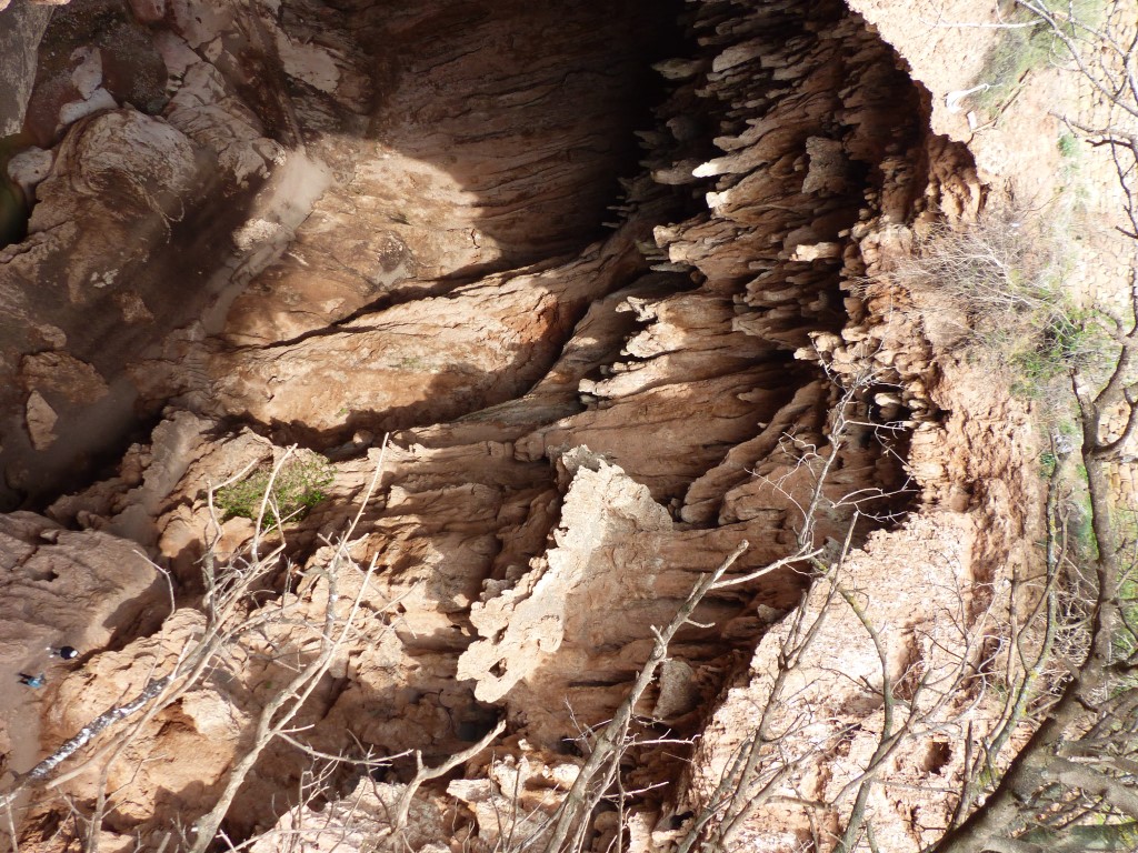 Nous retrouvons un temps plus engageant en revenant vers 2600. La montagne semble former des gorges, mais il s'agit juste d'une falaise qui donne l'impression de nous trouver dans un décor de western américain.