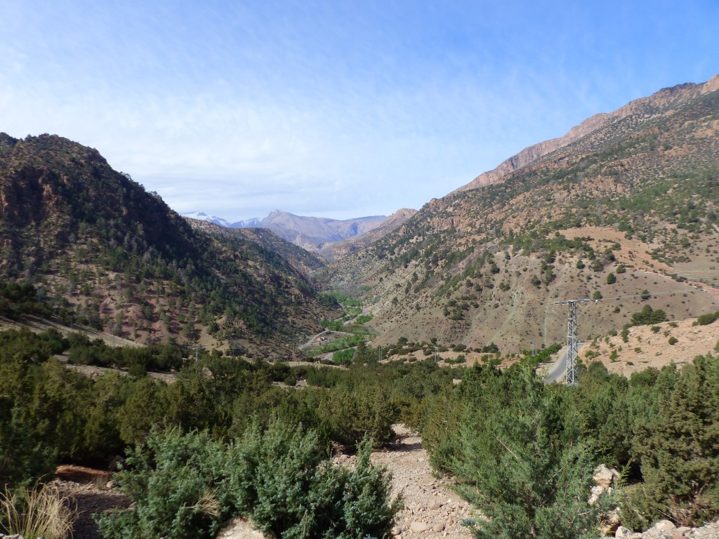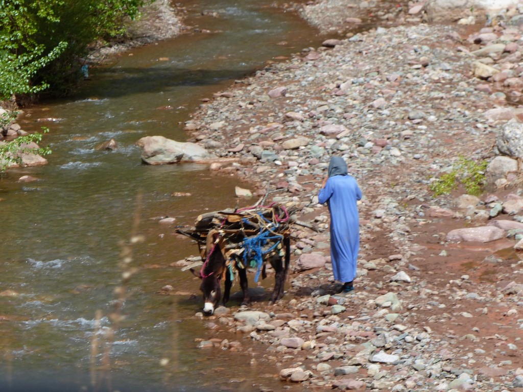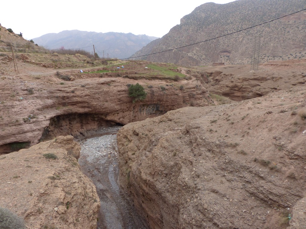 Le parking est payant, même s’il est entièrement vide, et il faut sourire aux vendeurs de colliers et autres gadgets sans doute tout droit venus de Chine. Nous mangeons un repas qui n’a rien de marocain, à l’auberge « chez Juju », à savoir, une tartiflette et une entrecôte ! Nous nous baladons sur un chemin, qui doit être une piste de ski, touchons une neige fraîche de ces derniers jours et redescendons jusqu’à Ourika, notre étape de ce soir.