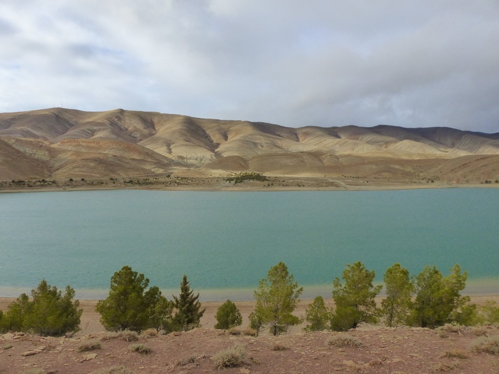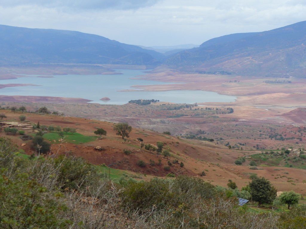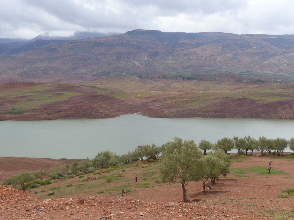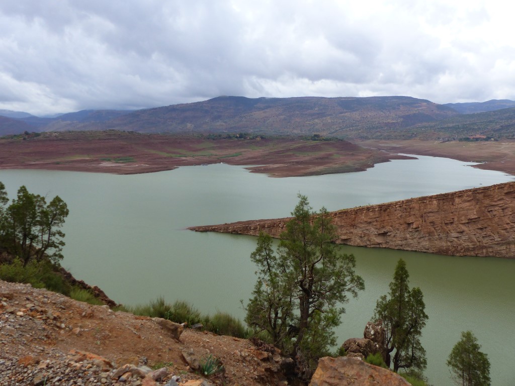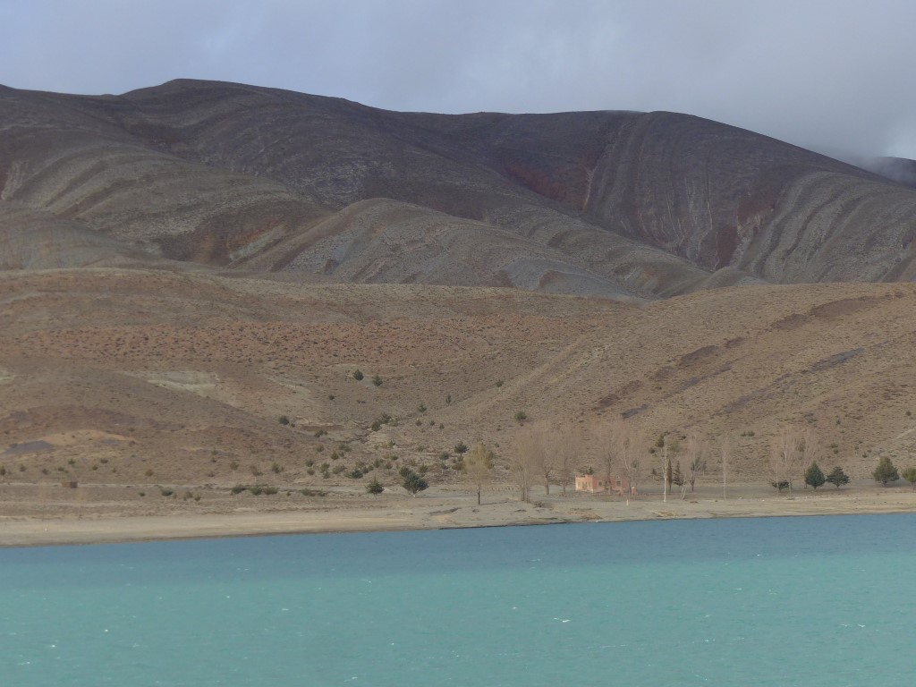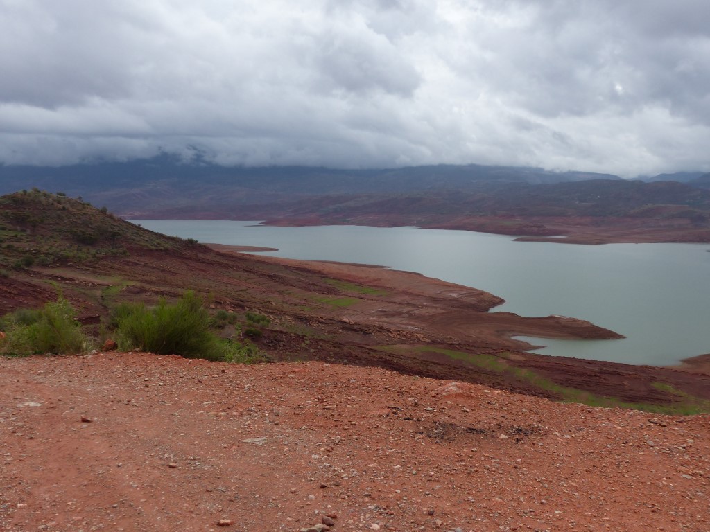 La pluie nous accompagne gentiment lorsque nous entamons notre trajet du jour. Nous revenons le long du lac de Bin el Ouidane. Pas de soleil, donc pas de photos avec des couleurs saisissantes. Ca reste beau tout de même.