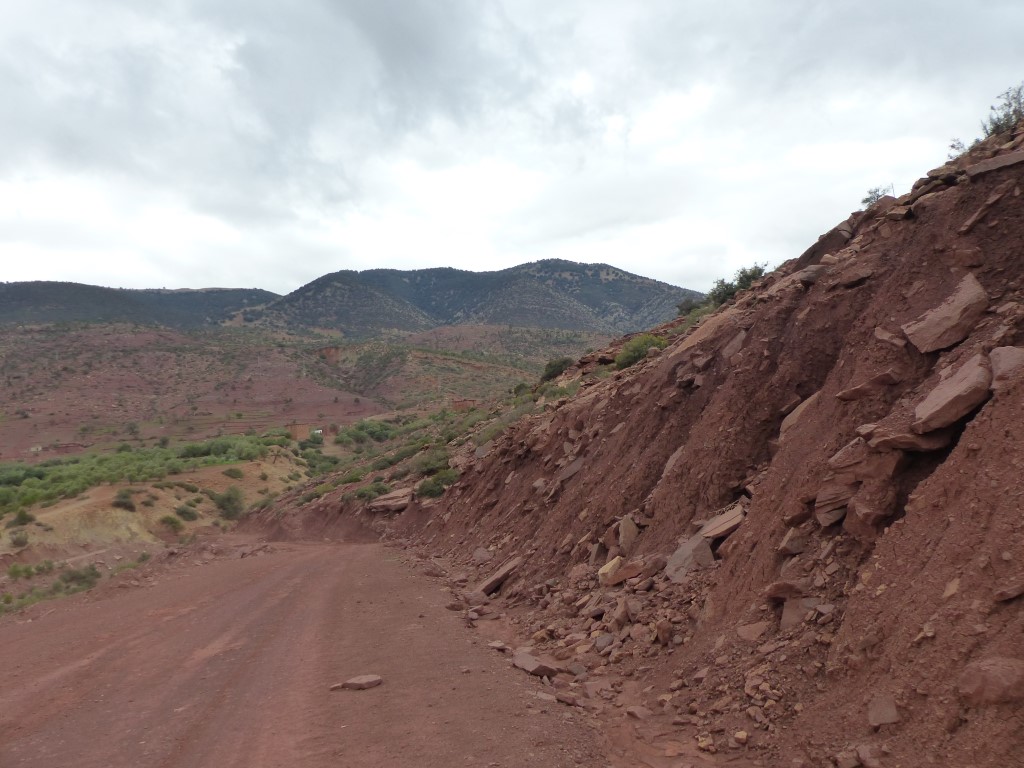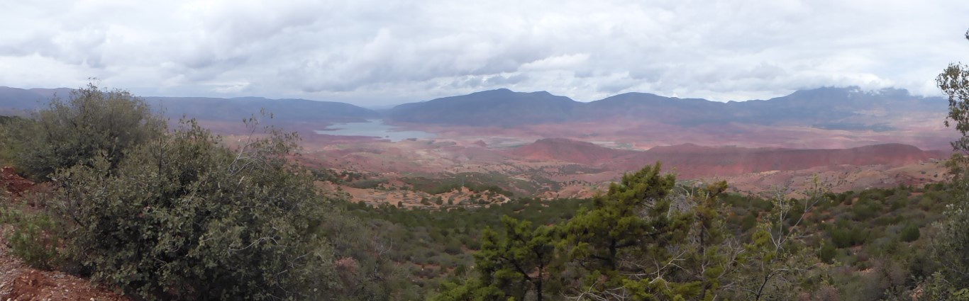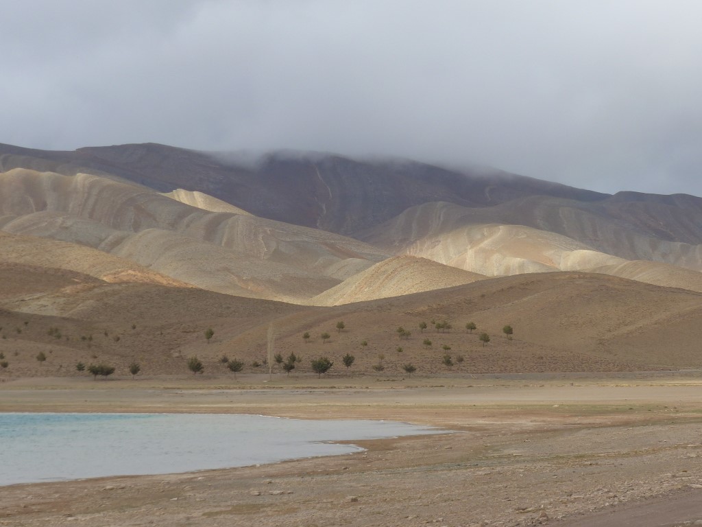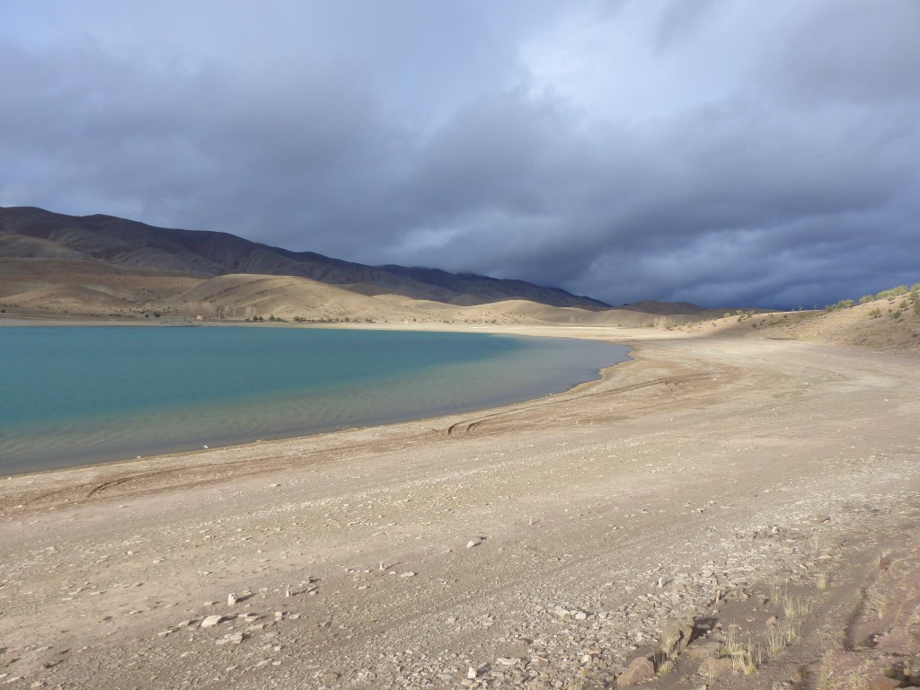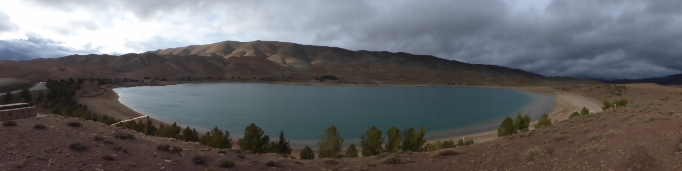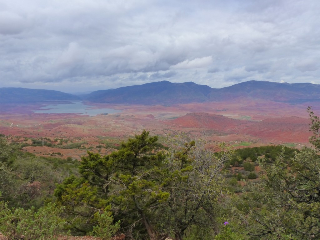 La pluie nous accompagne gentiment lorsque nous entamons notre trajet du jour. Nous revenons le long du lac de Bin el Ouidane. Pas de soleil, donc pas de photos avec des couleurs saisissantes. Ca reste beau tout de même.