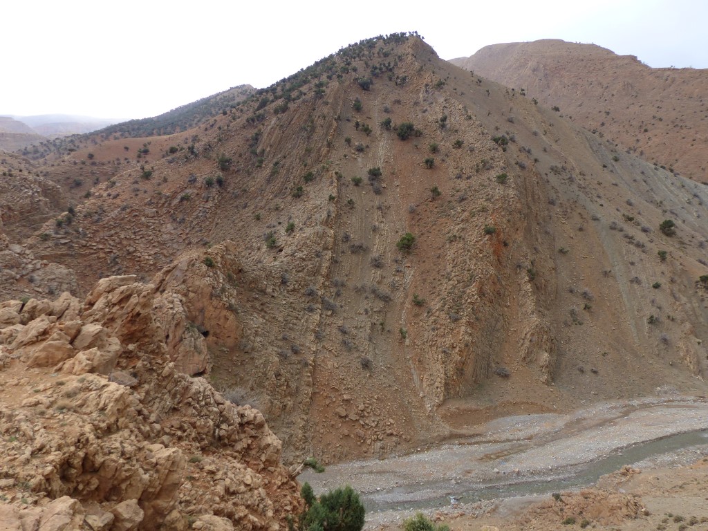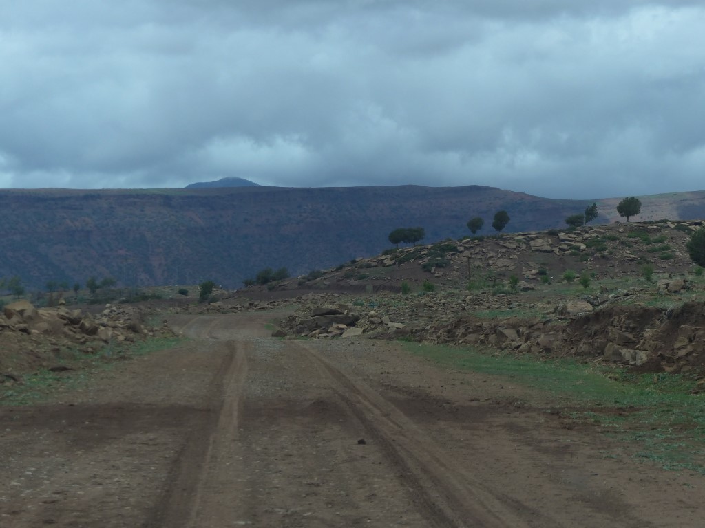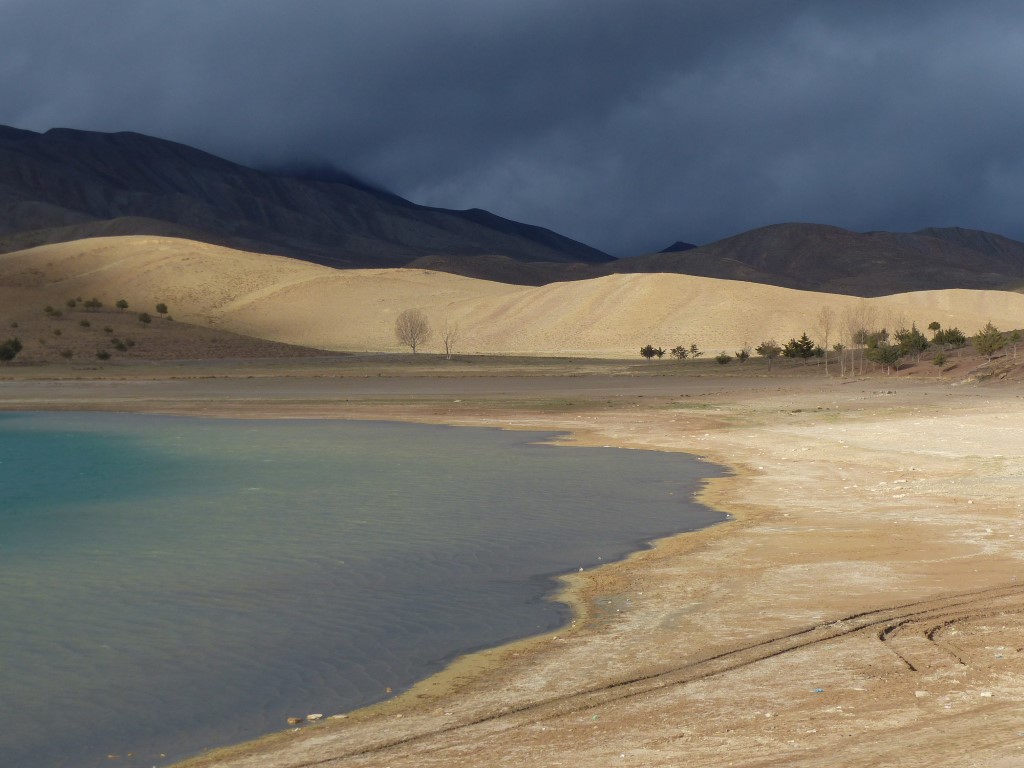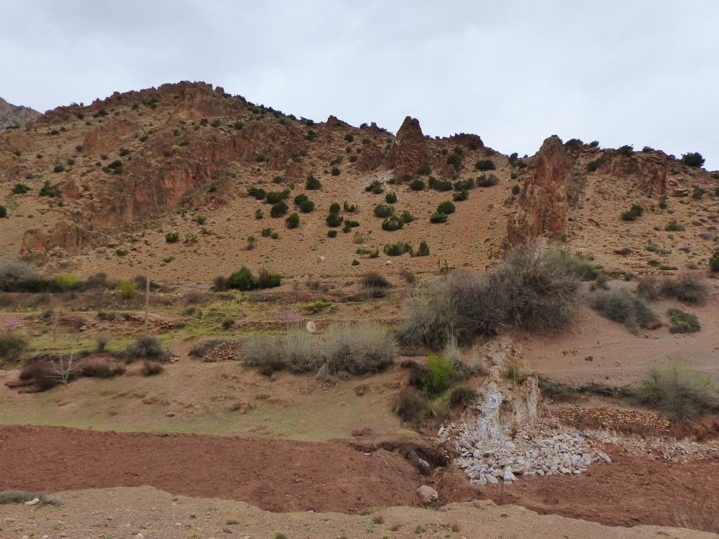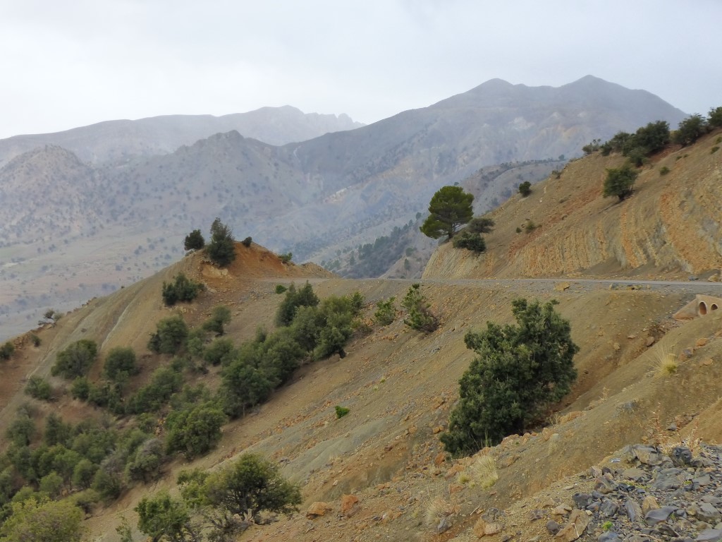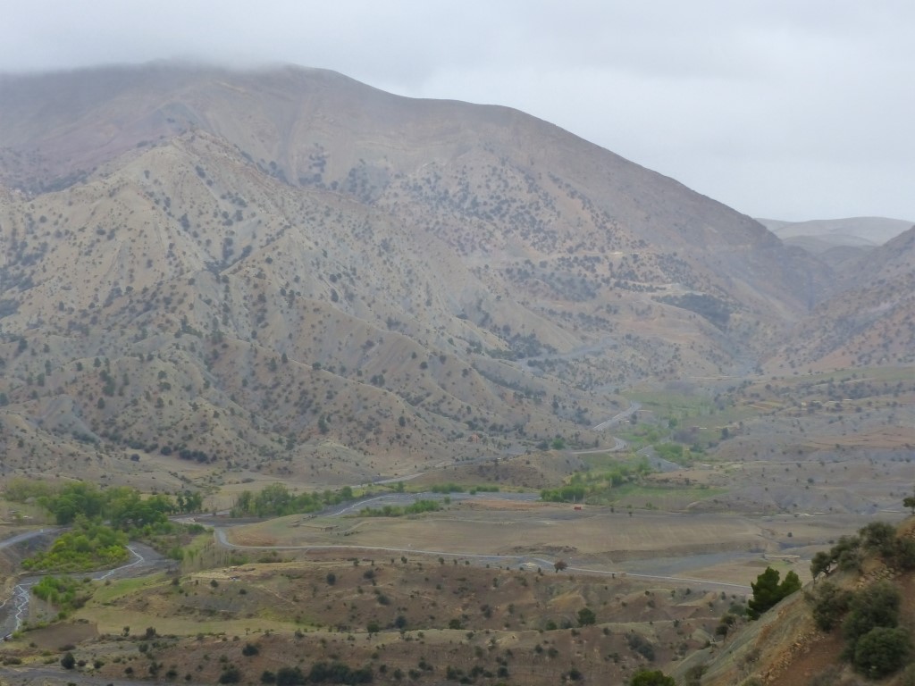 La pluie nous accompagne gentiment lorsque nous entamons notre trajet du jour. Nous revenons le long du lac de Bin el Ouidane. Pas de soleil, donc pas de photos avec des couleurs saisissantes. Ca reste beau tout de même.