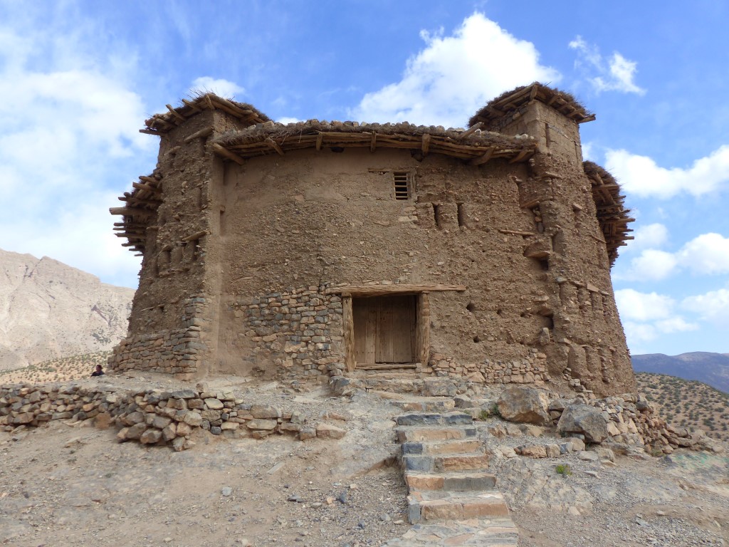 Les rayons de soleil du matin sont menacés par une grosse masse nuageuse. Nous ne traînons pas au petit déj et filons au plus vite sur le grenier à céréales érigé sur une butte un peu plus loin, avant Tabant. Un vent fort nous accompagne pour gravir le sommet et ainsi admirer toute à la fois le grenier et le paysage à 360°.