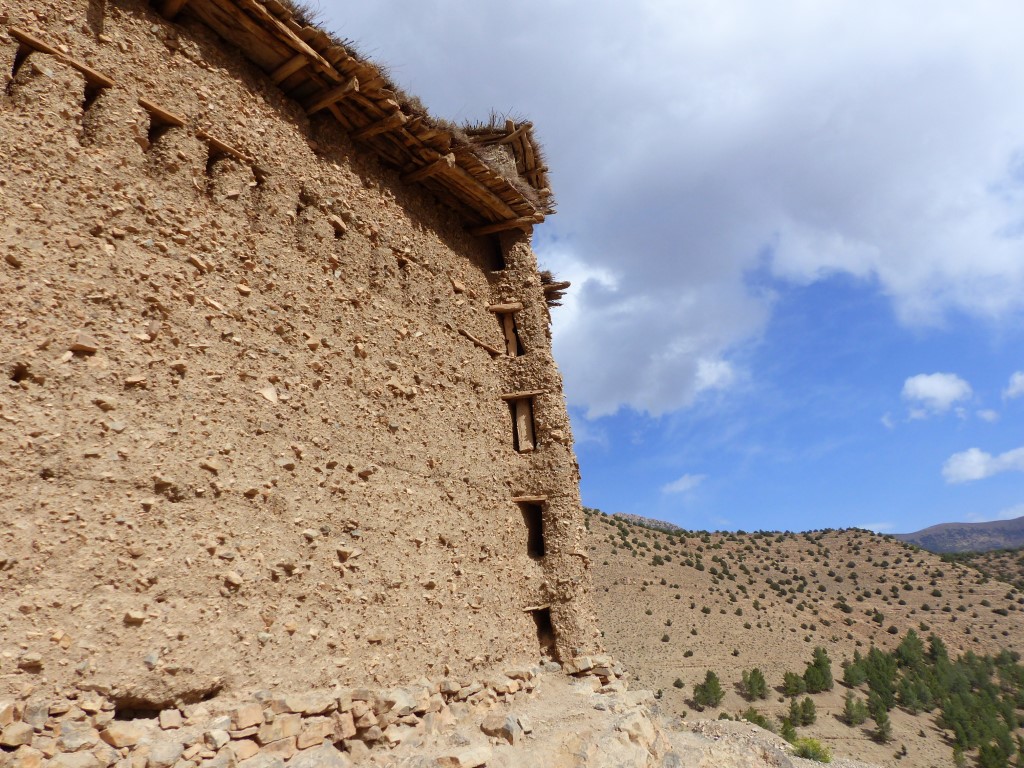 Les greniers sont de vastes constructions fortifiées, répandues dans le Sud du Maroc, dans lesquelle les populations emmagasinaient lerus récoltes et tous les objets qui leur sont précieux : actes, argent, vêtements, tapis, armes et munitions.