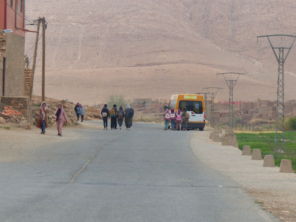 Nous trouvons difficilement un hébergement (le routard invite à passer au large et Google indique peu d’offres). Nous trouvons chez l’habitant. Malheureusement, en cette période de ramadan, il n’est pas possible d’être en demie-pension. Gloups, le village ne dispose pas de restaurant, ou alors déconseillé par le routard. Ce sera un repas tiré de nos réserves. La chambre est propre mais la maison sombre. Manifestement les volets sont fermés pour se protéger du froid. La gérante nous apporte une couverture supplémentaire.