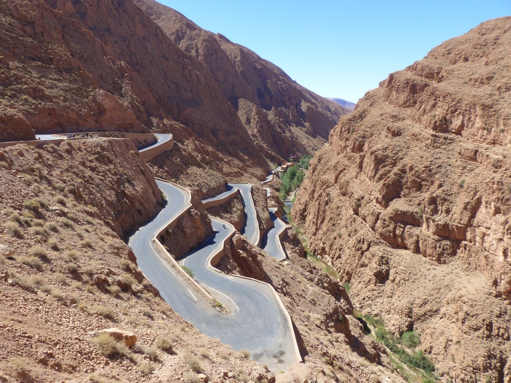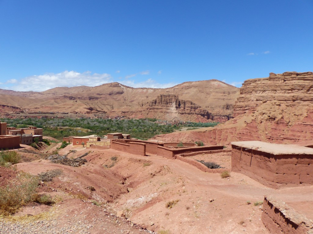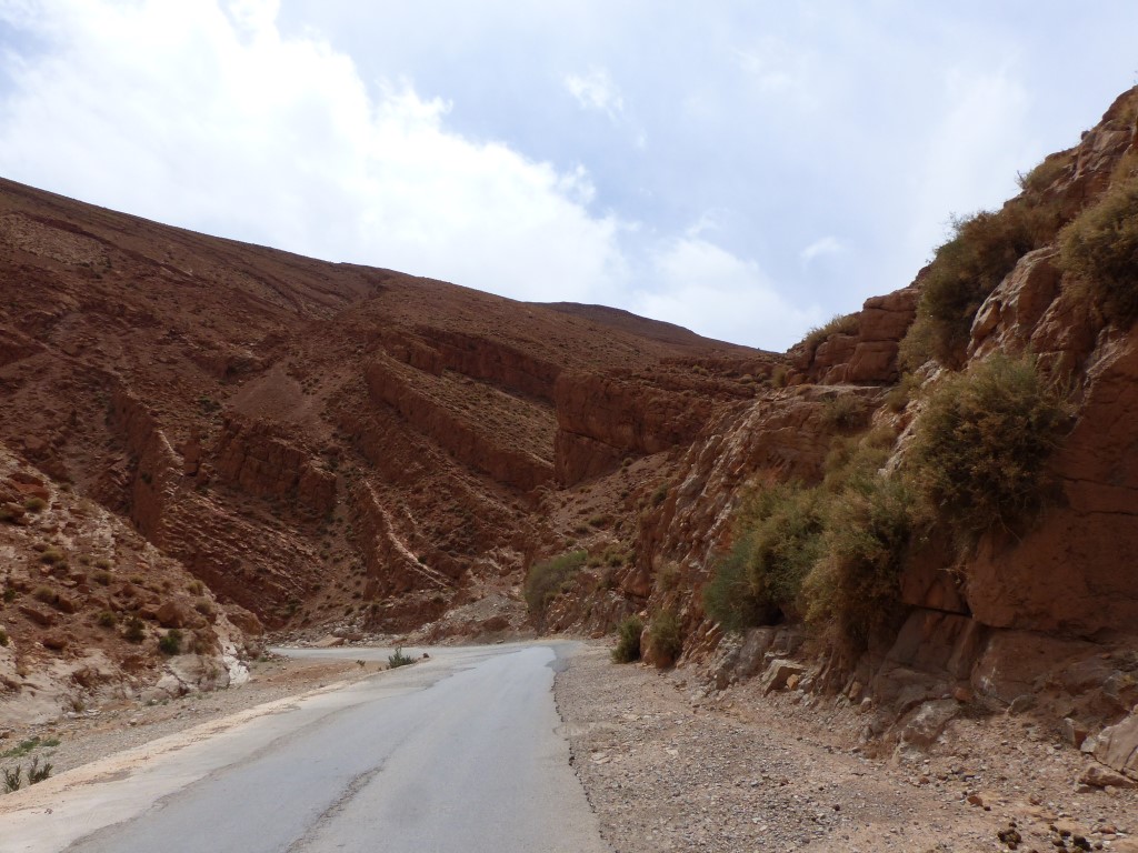 C’est la route de la vallée des roses. Mais pas de rose, juste des roches aux couleurs rouge-ocre. Les paysages sont là encore très beaux.