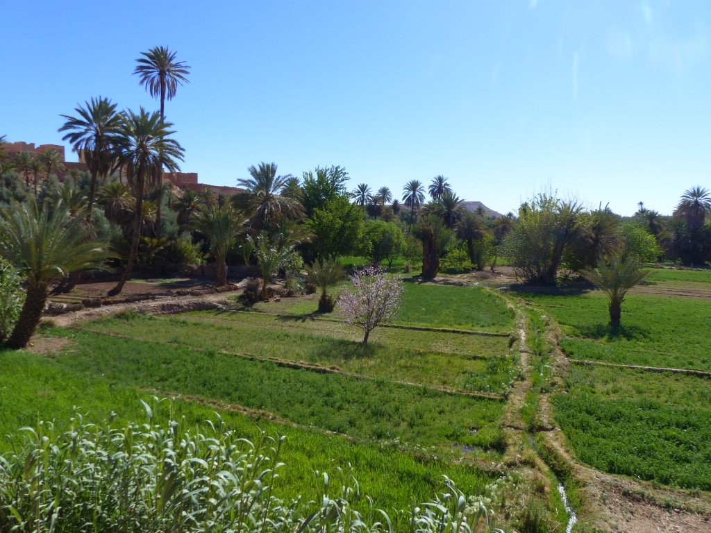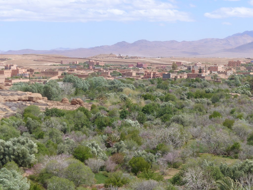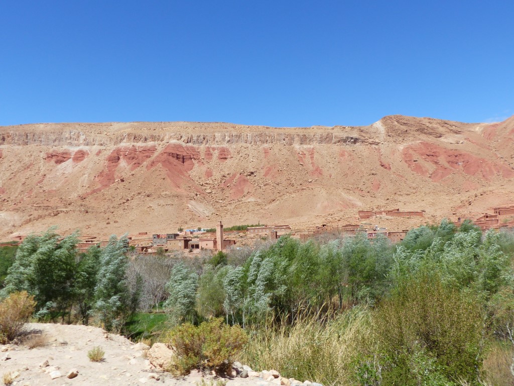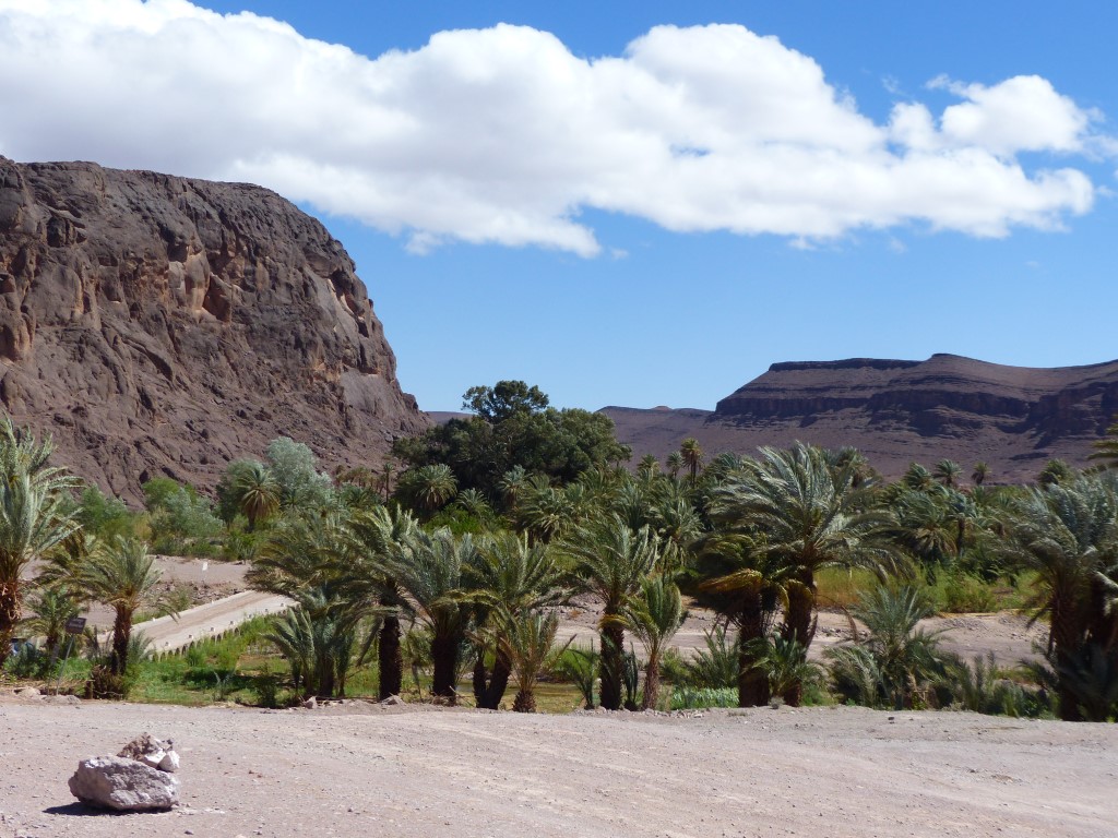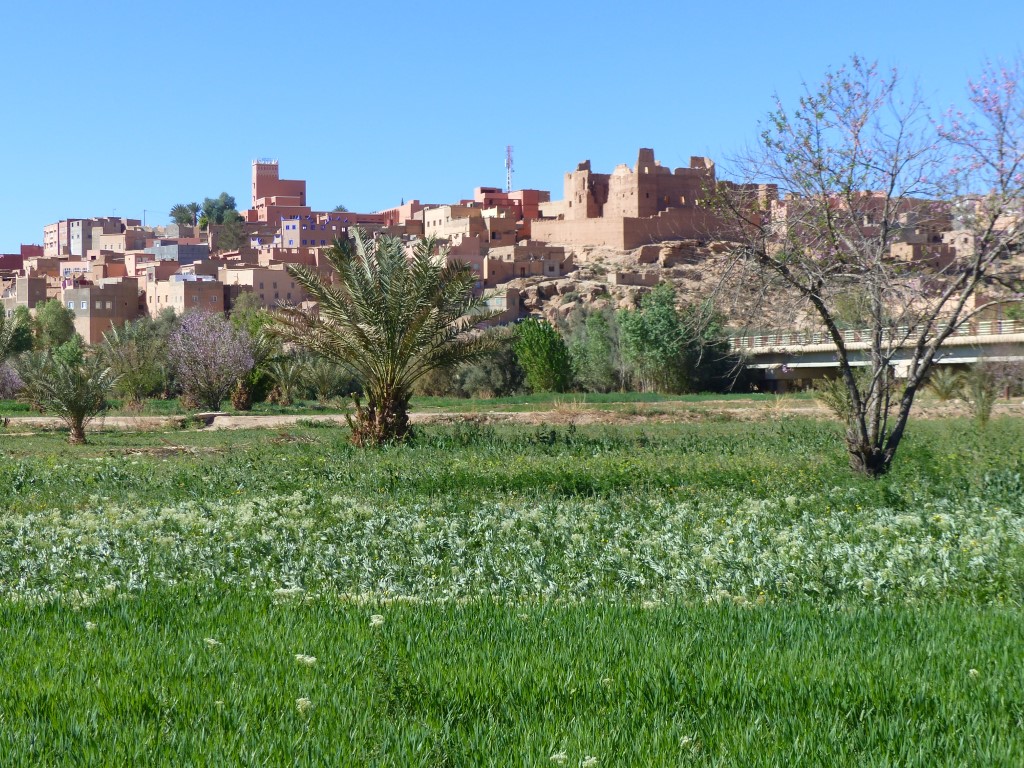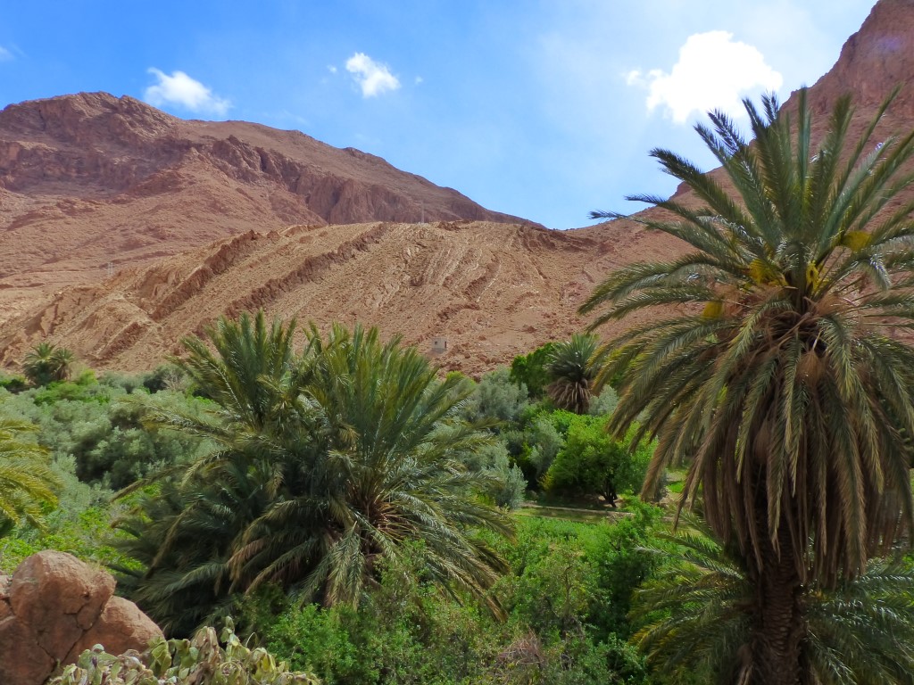 De l'autre côté des gorges, nous atteignons la palmeraie de Tinghir où nous trouvons un hôtel pour la soirée.