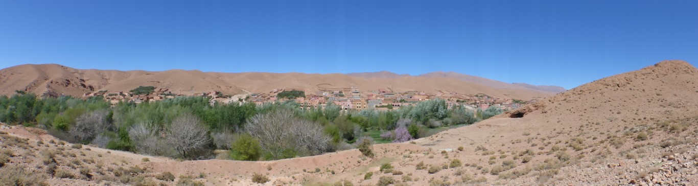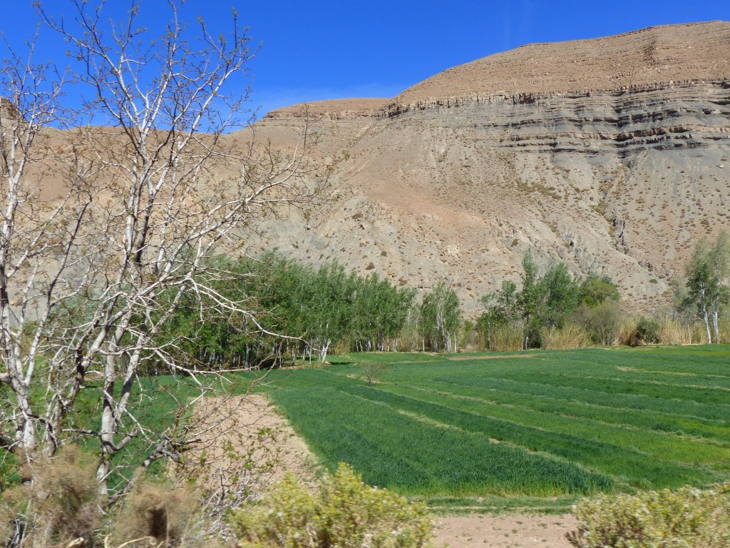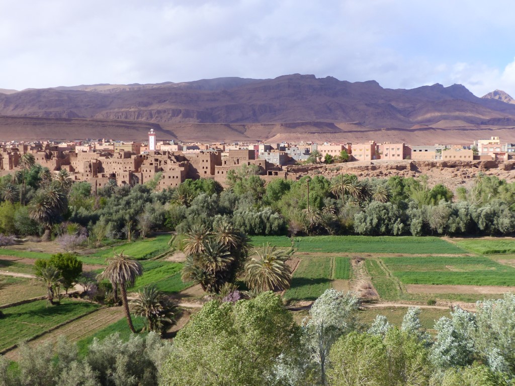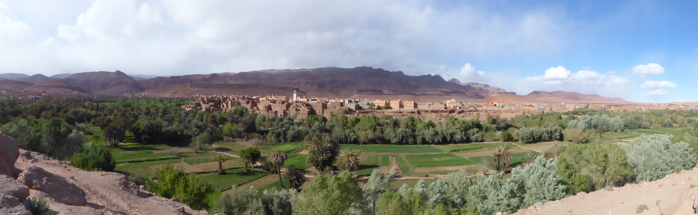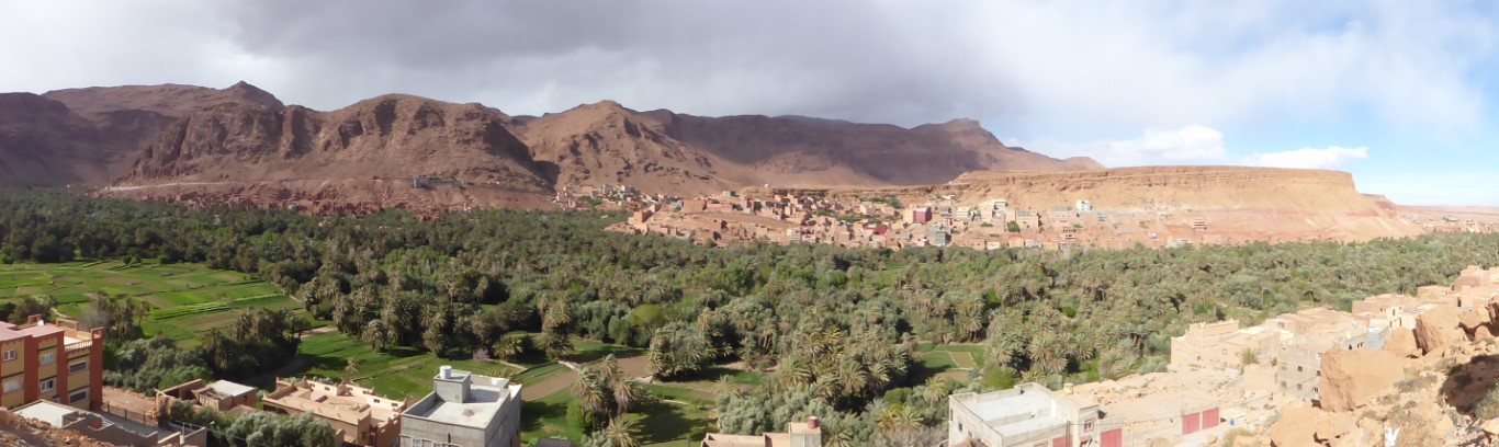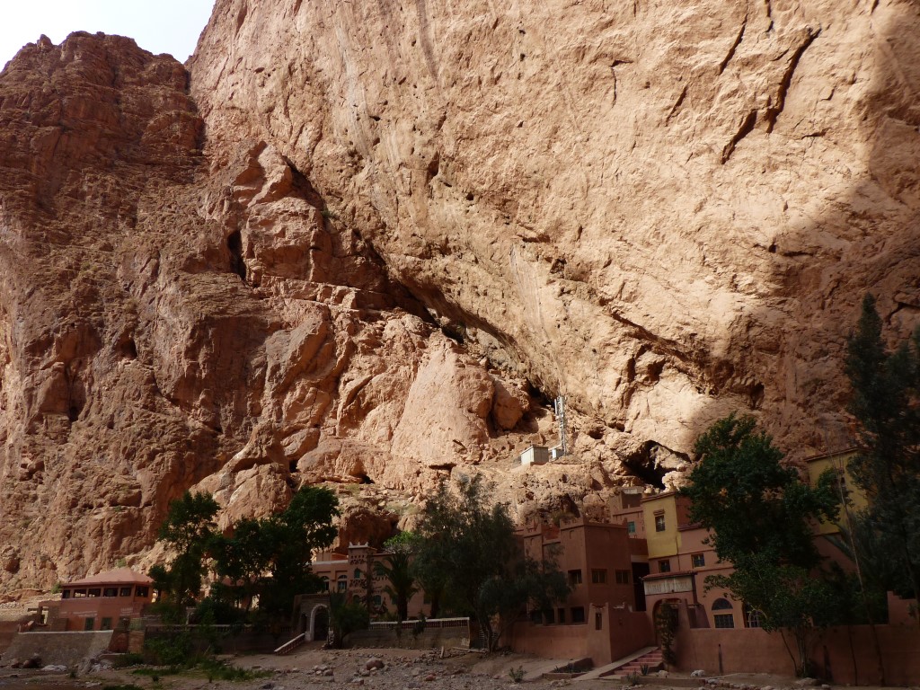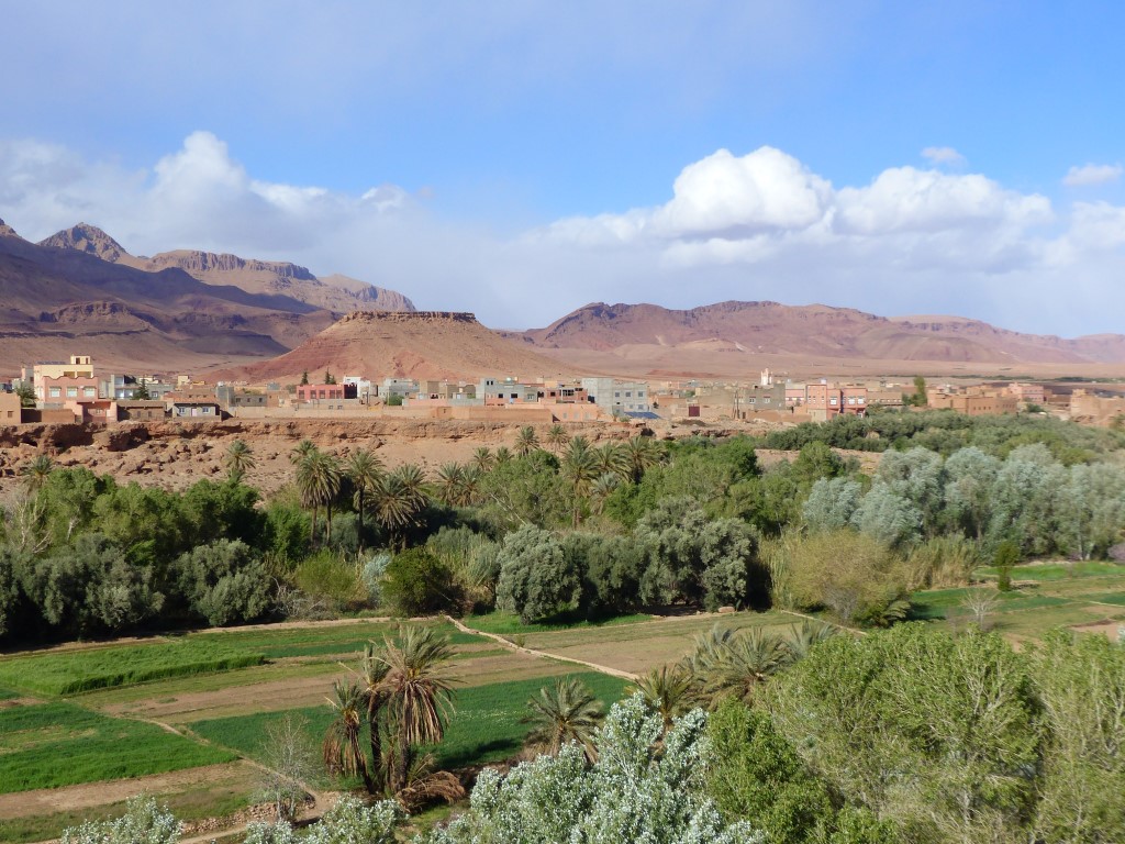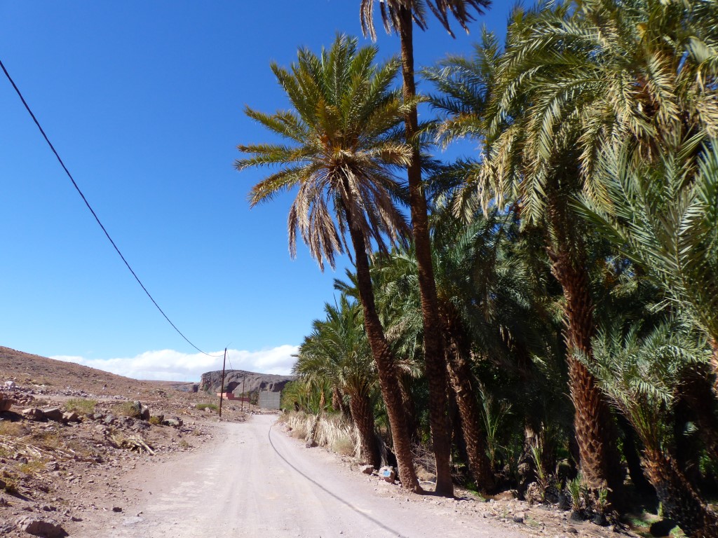 De l'autre côté des gorges, nous atteignons la palmeraie de Tinghir où nous trouvons un hôtel pour la soirée.
