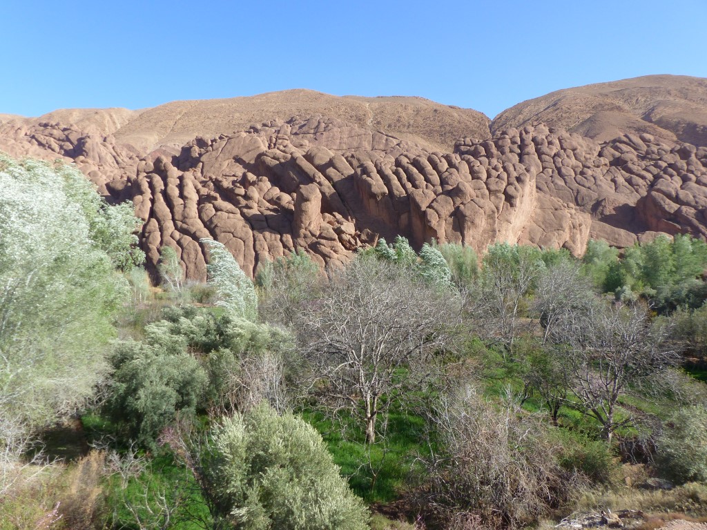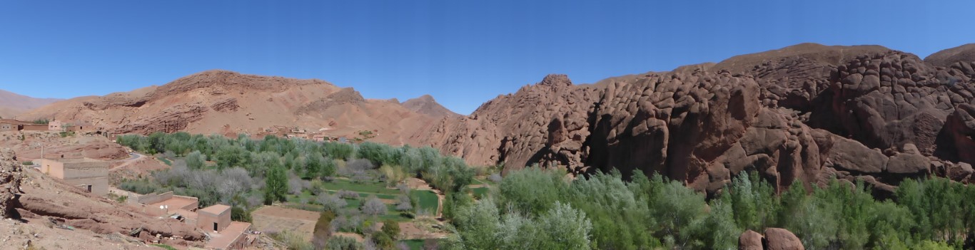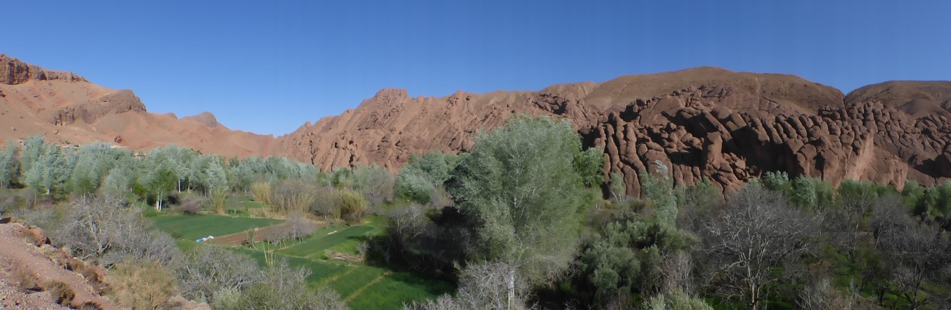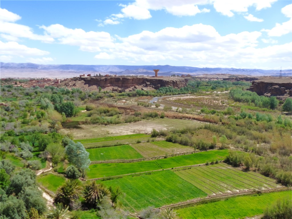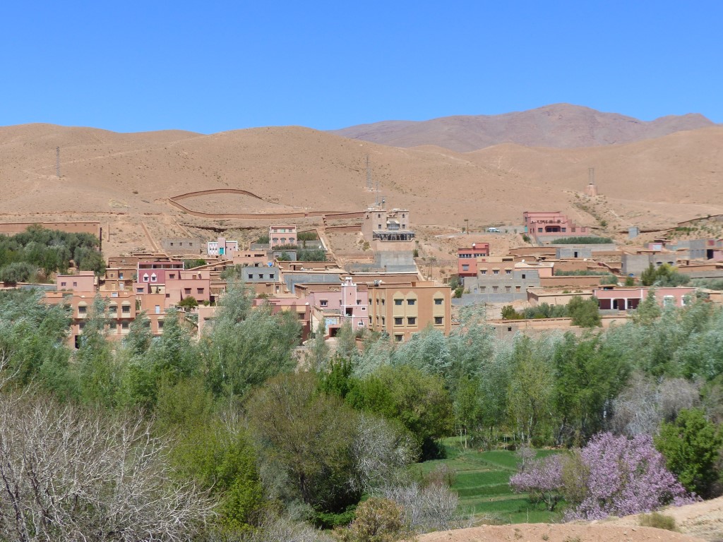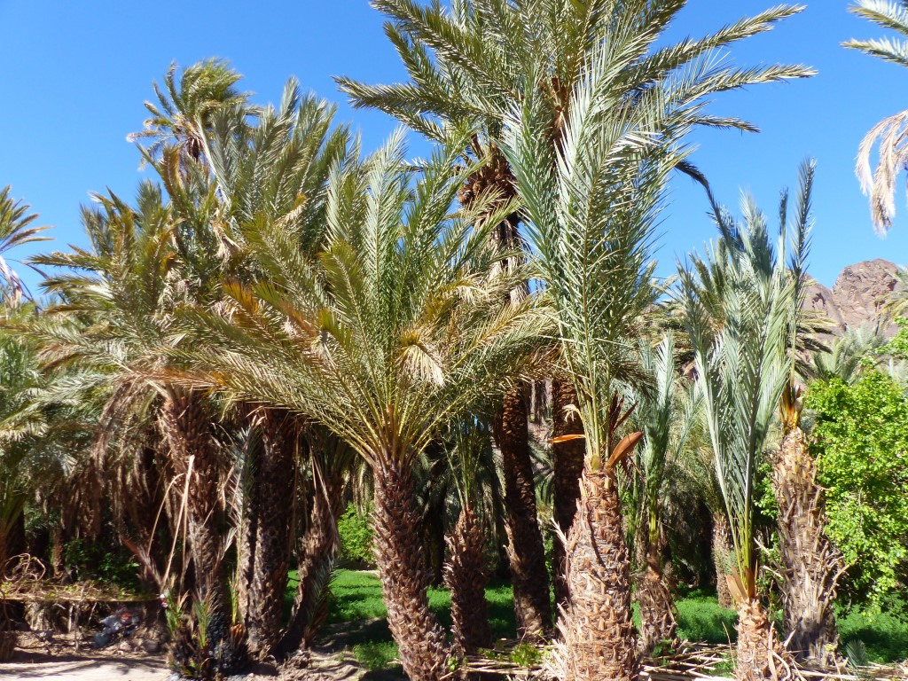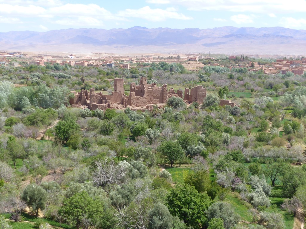 De l'autre côté des gorges, nous atteignons la palmeraie de Tinghir où nous trouvons un hôtel pour la soirée.