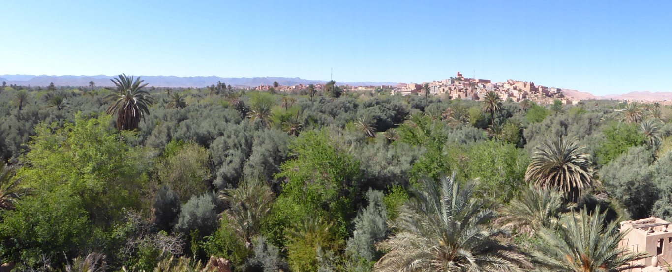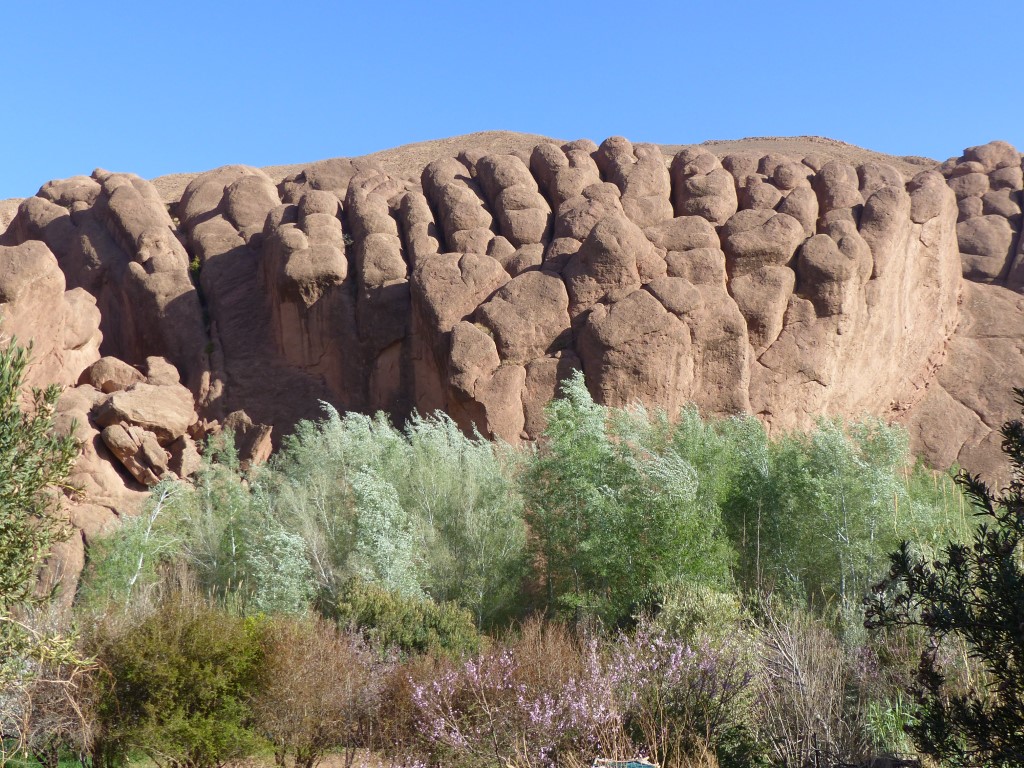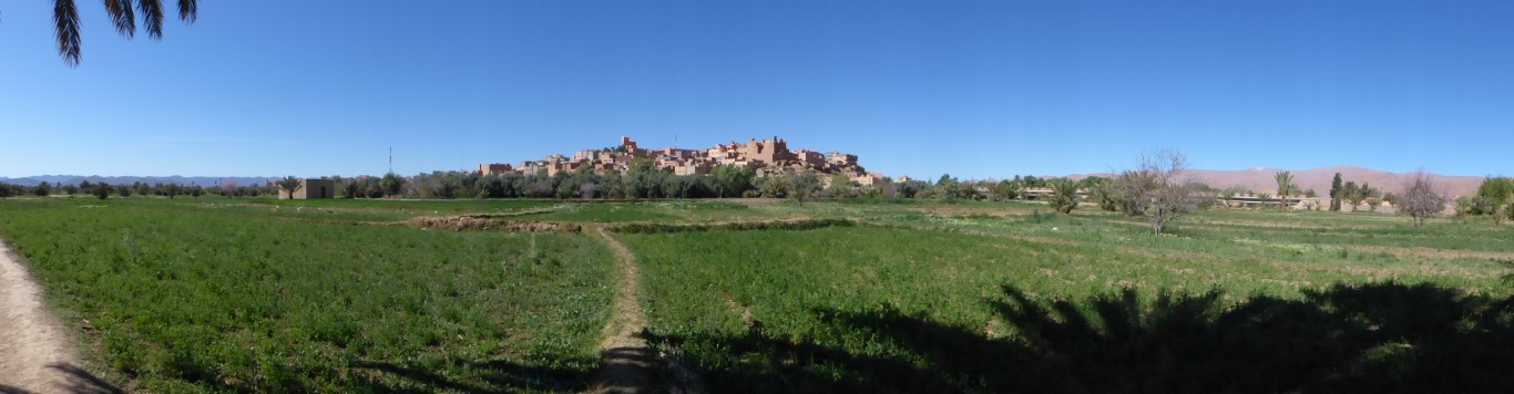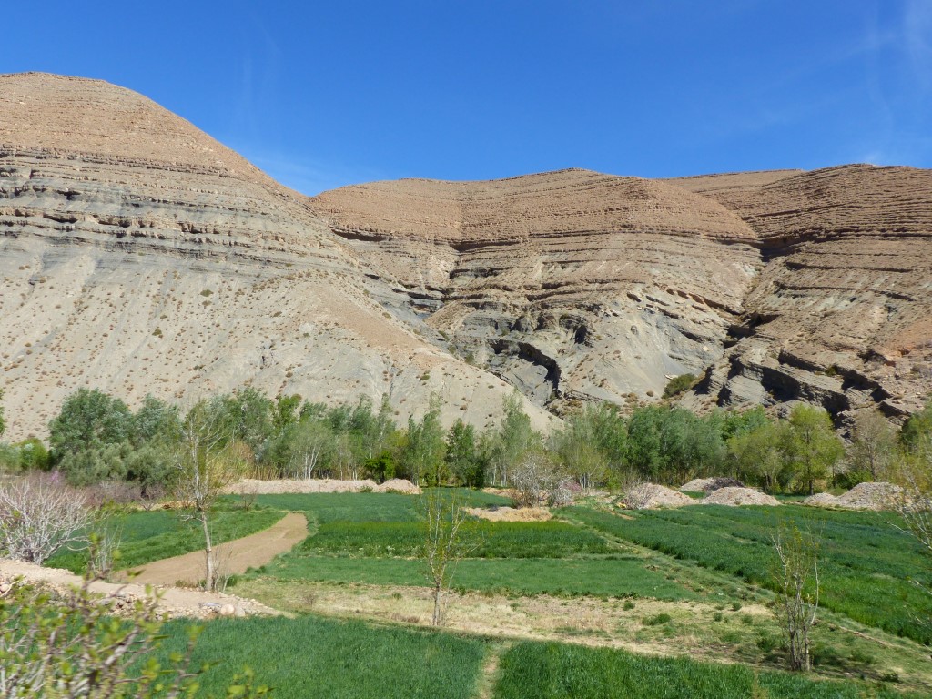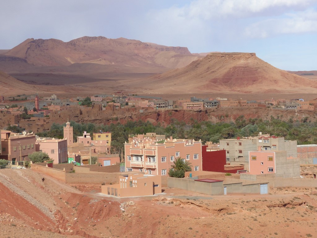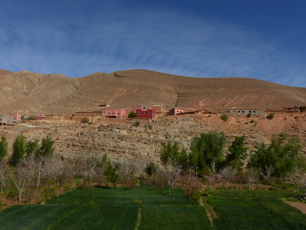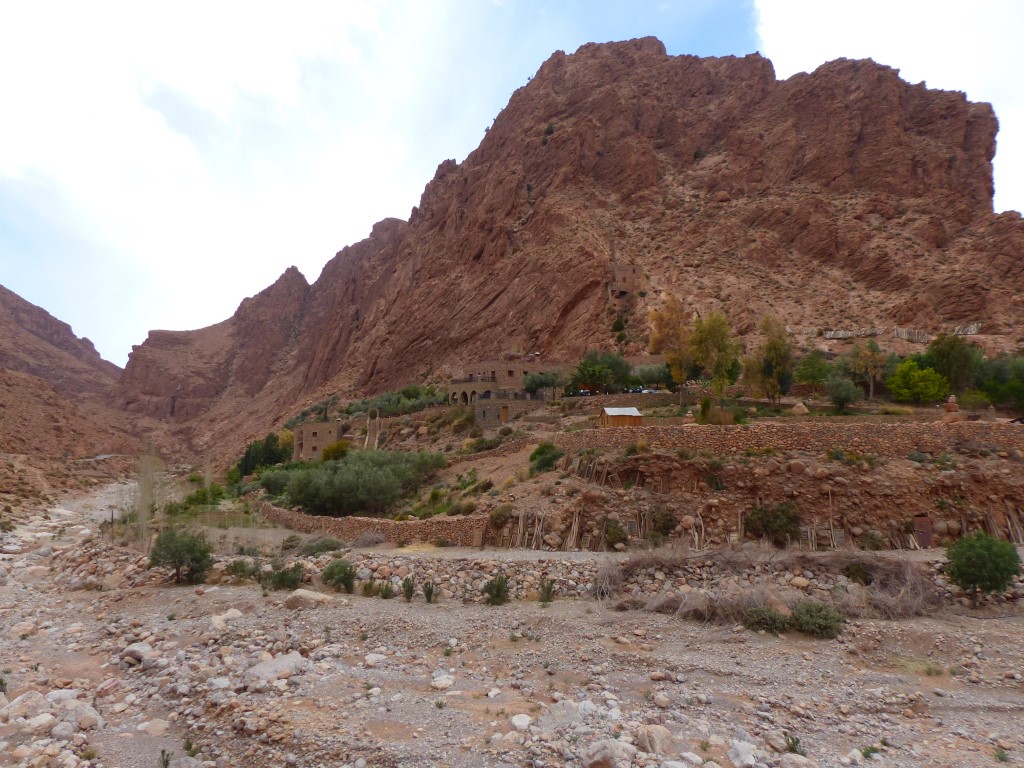 De l'autre côté des gorges, nous atteignons la palmeraie de Tinghir où nous trouvons un hôtel pour la soirée.