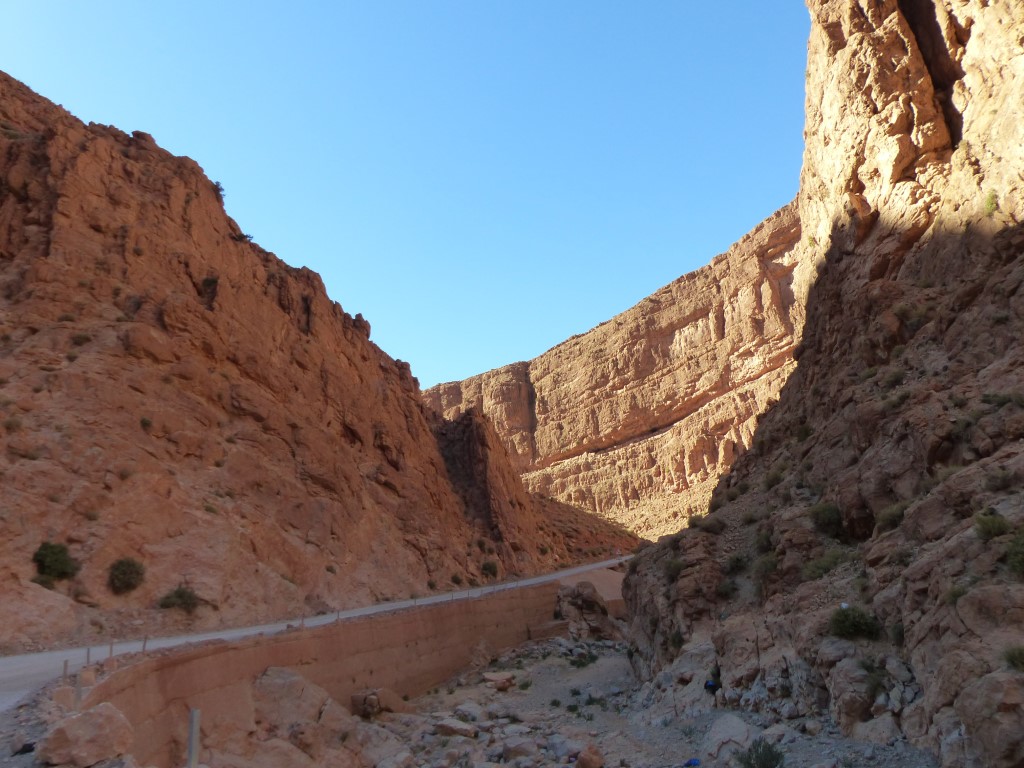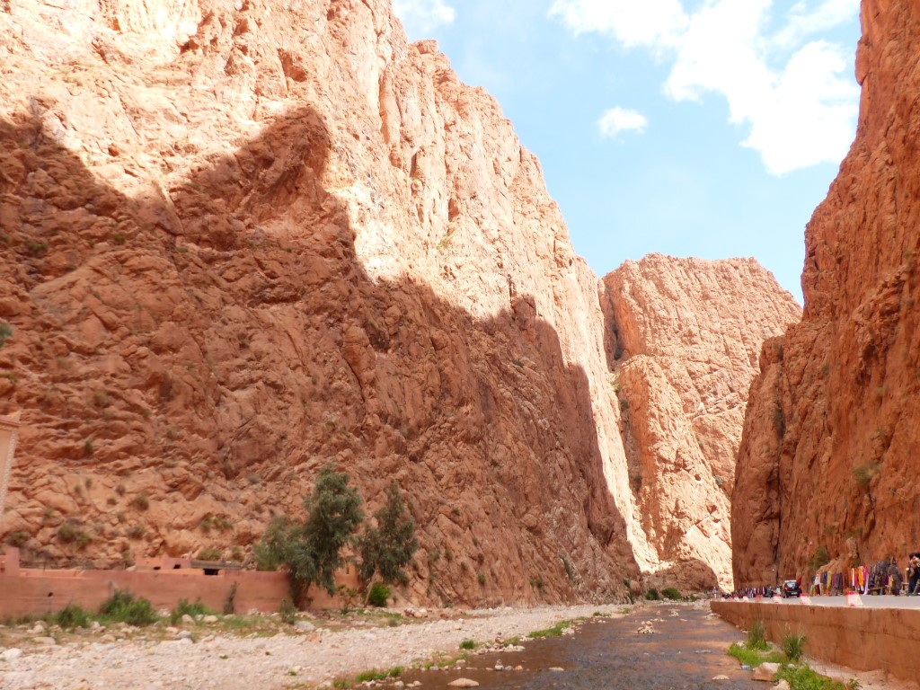 Nous descendons ensuite vers de véritables gorges, celles de Todra, où les touristes se massent. Nous rencontrons nos premiers camping-cars; espagnols pour l'essentiel, et des bus de tourisme.