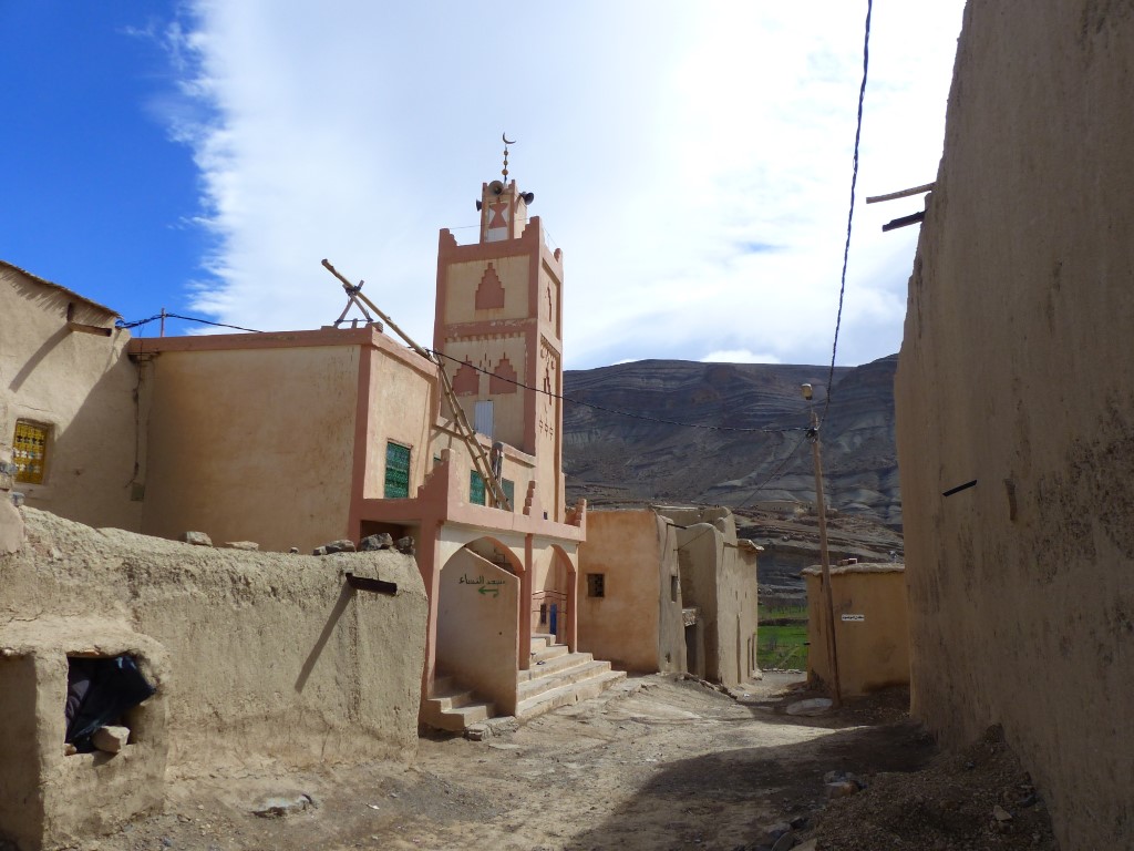 Aujourd'hui, notre programme est placé sous l'égide des visites : visite de l'ancienne mosquée Kileane aux abords de la palmeraie de Tinghir, puis visite du musée des sources, et enfin du musée de l'oasis. C'est deux derniers lieux sont situés vers Tinedjad , à 40km à l'Est de Tinghir (un aller retour).