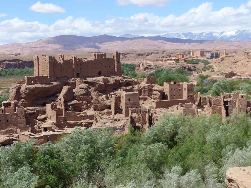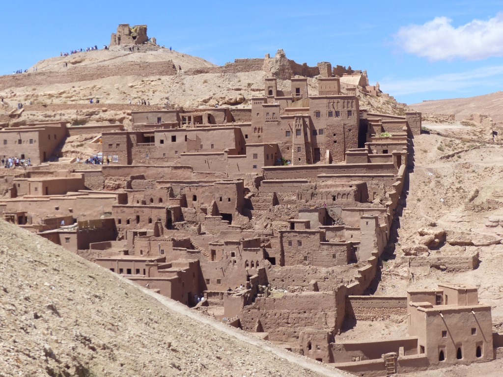 Ait Ben Haddou est un village fortifié (ksar – pluriel ksour), en partie en ruine. La particularité du village est qu’il possède 4 portes d’entrée. Deux sont payantes (10 dirhams), deux sont gratuites…