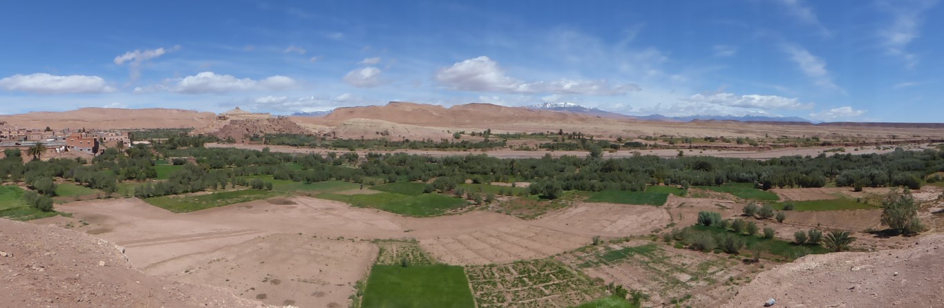Nous prenons la route pour le ksar Ait Ben Haddou en nous extirpant de la palmeraie de Skoura ; le gîte était situé au cœur de la palmeraie, impossible de s’y rendre sans un guidage Google Maps.